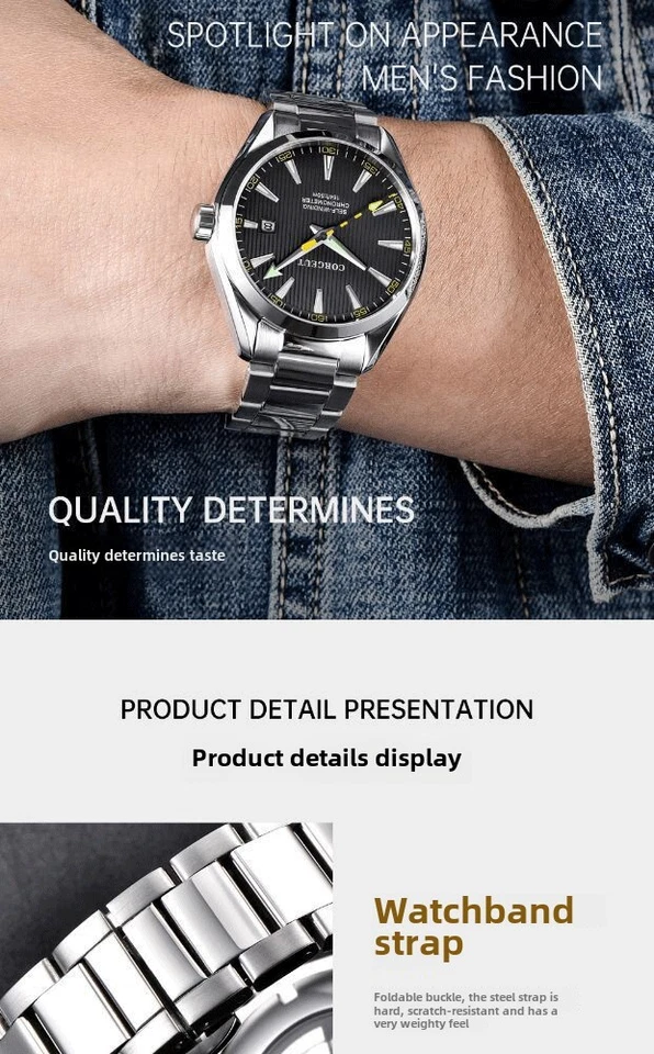 CORGEUT popular, automatic, mechanical casual, sapphire, waterproof, men's watch