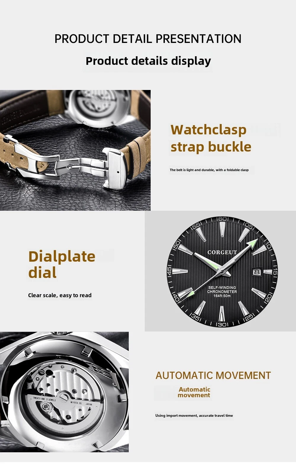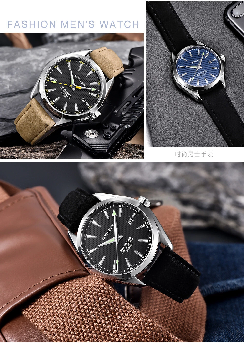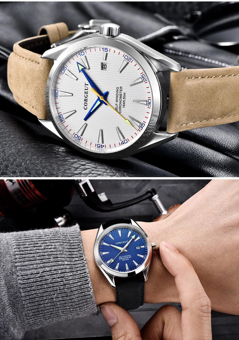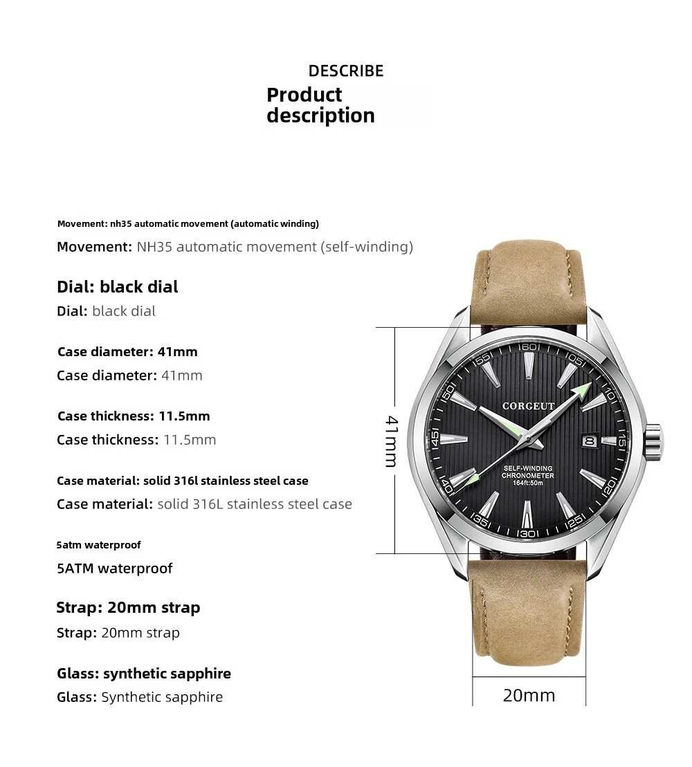 CORGEUT Men's 41MM Automatic, Waterproof, Mechanical Watch, Luminous, Business
