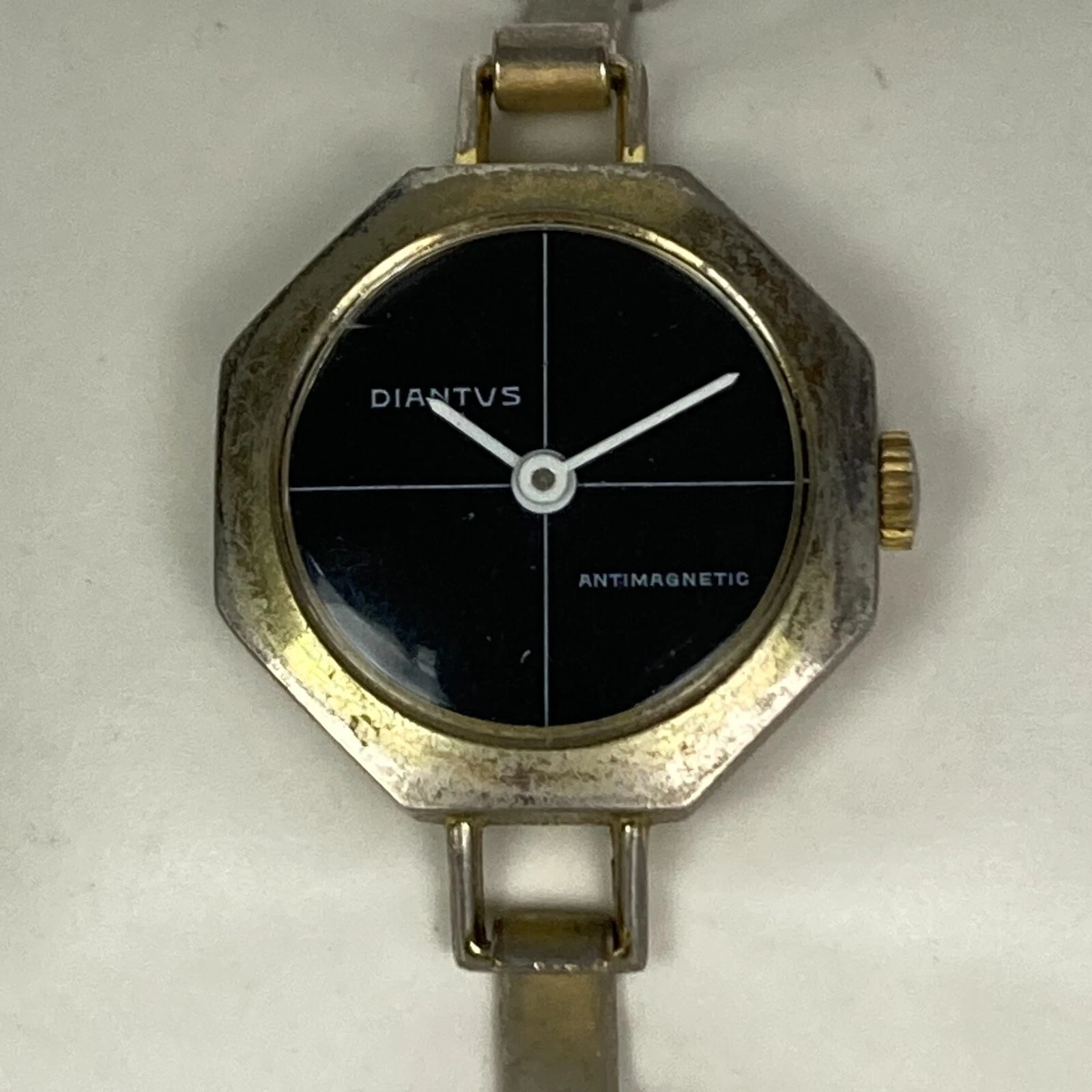 Vintage Diantus Swiss Watch Women 27mm Octagon FOR PARTS REPAIR Manual Wind Up