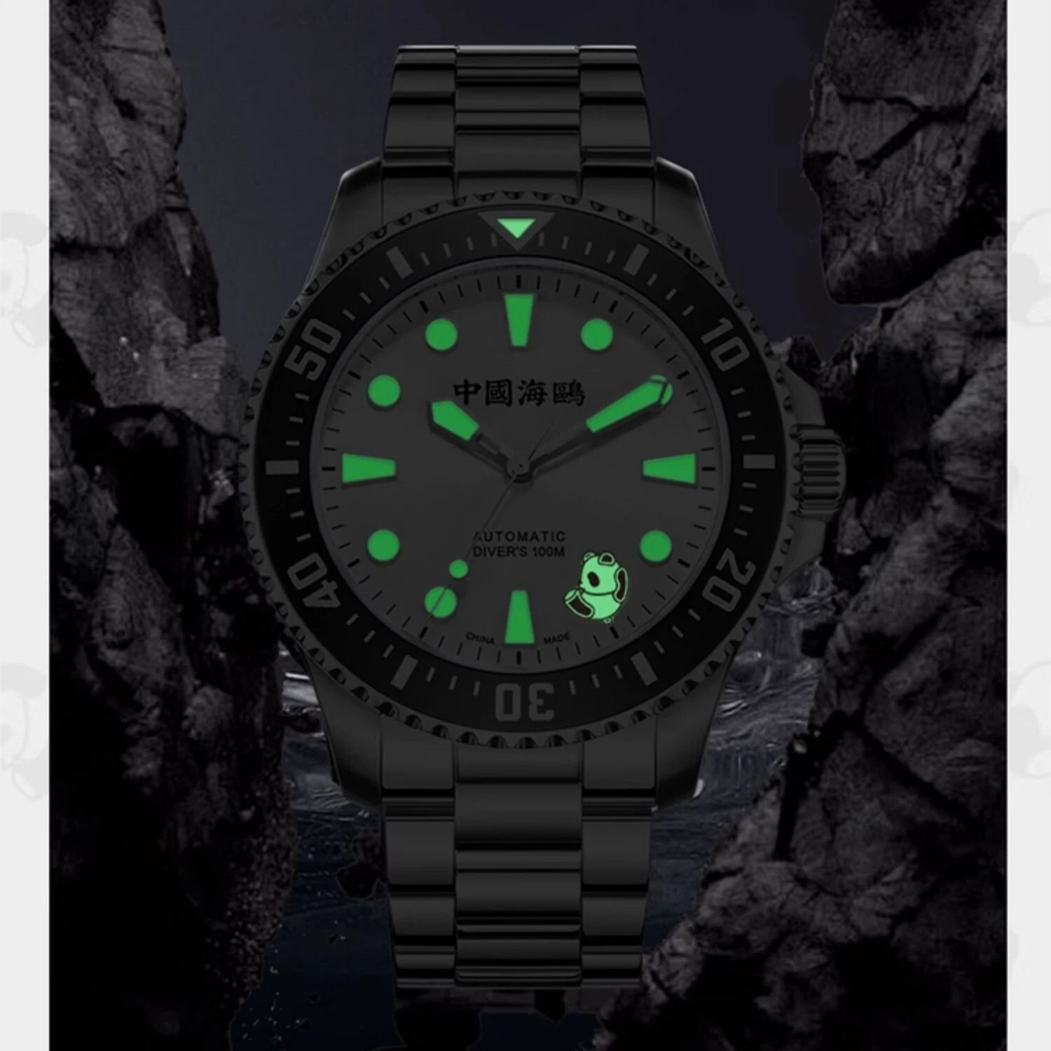 Seagull watch panda ocean star men automatic divers 100M rotating bezel sapphire