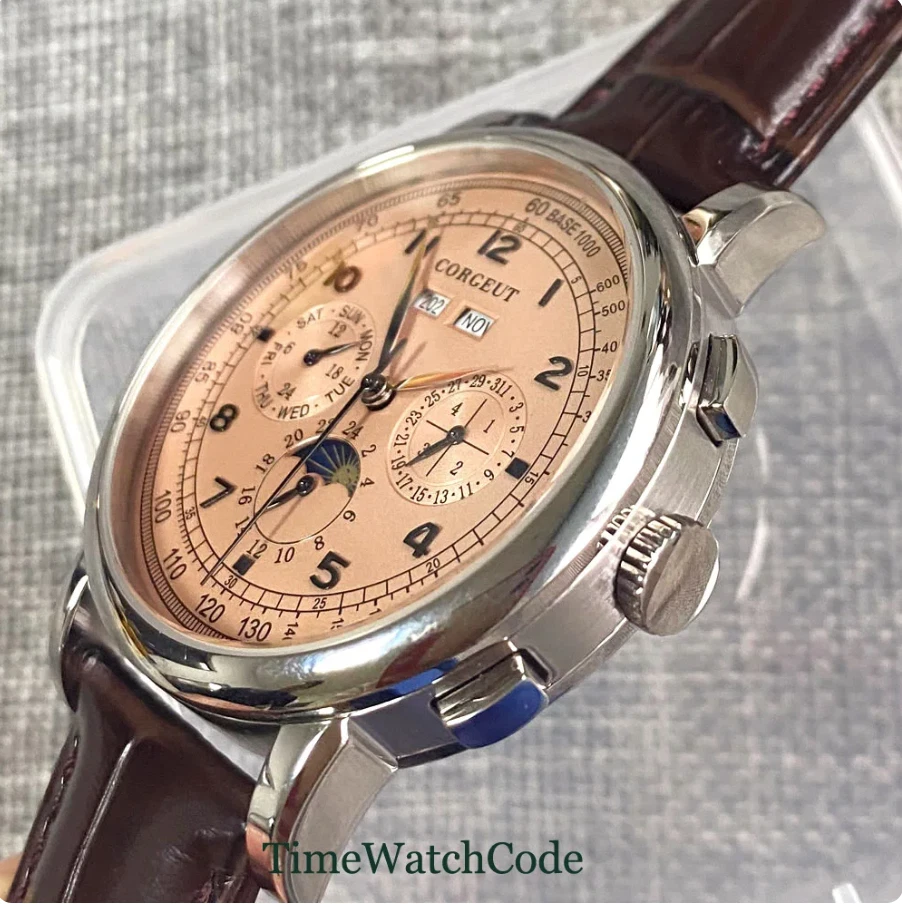 Corgeut 42mm Automatic Men's Watch Chronograph Leather Strap Watches For Men New