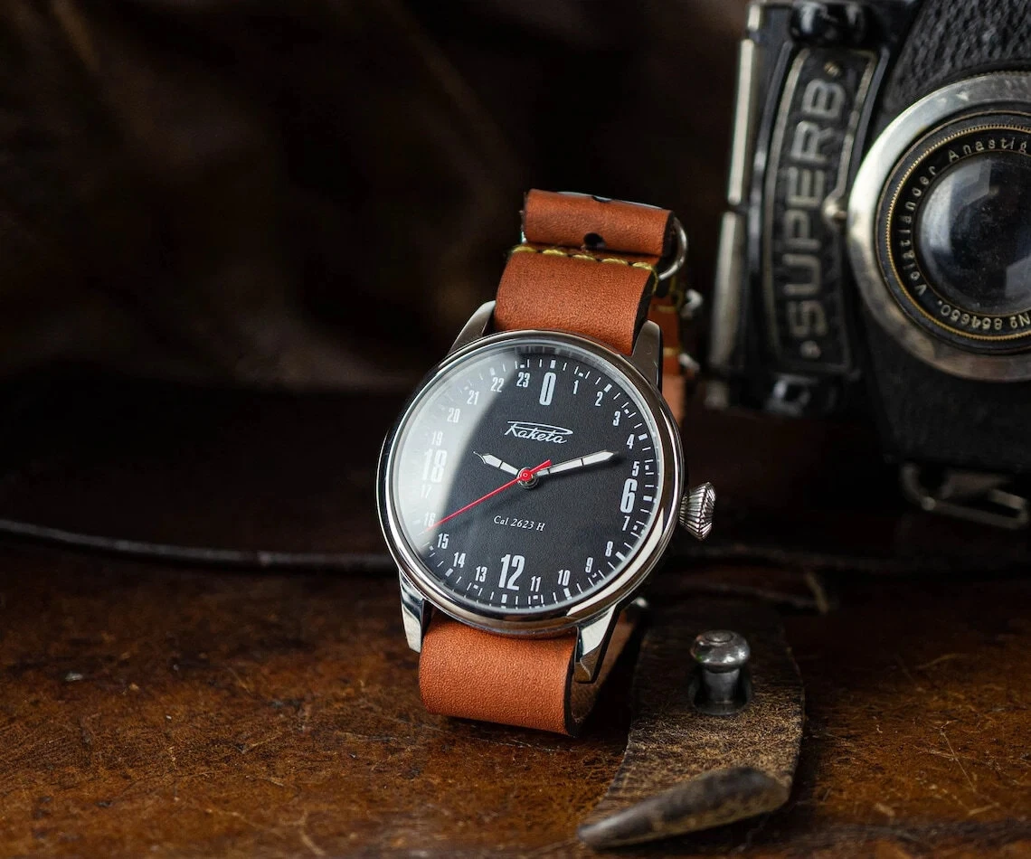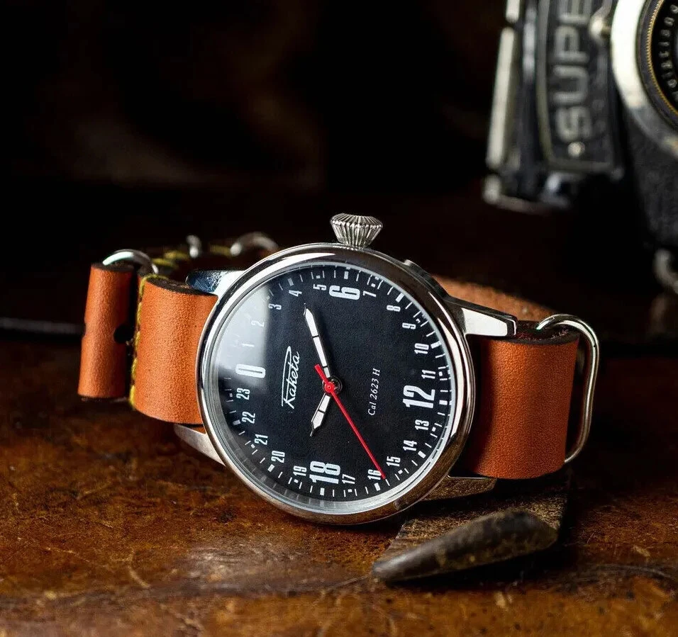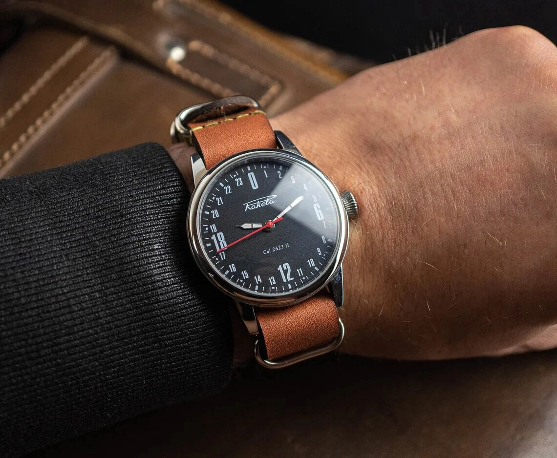 Raketa 24 Hours, Vintage men's watch ROCKET mechanical Soviet black watch