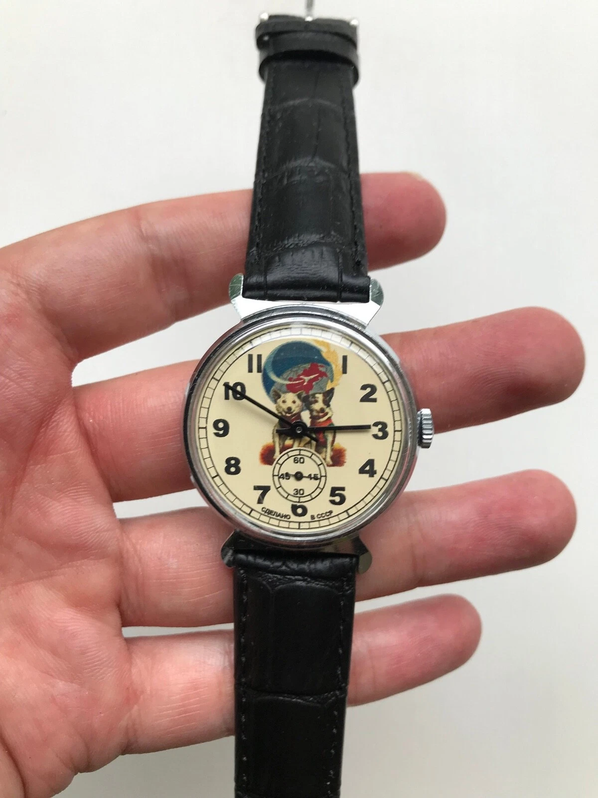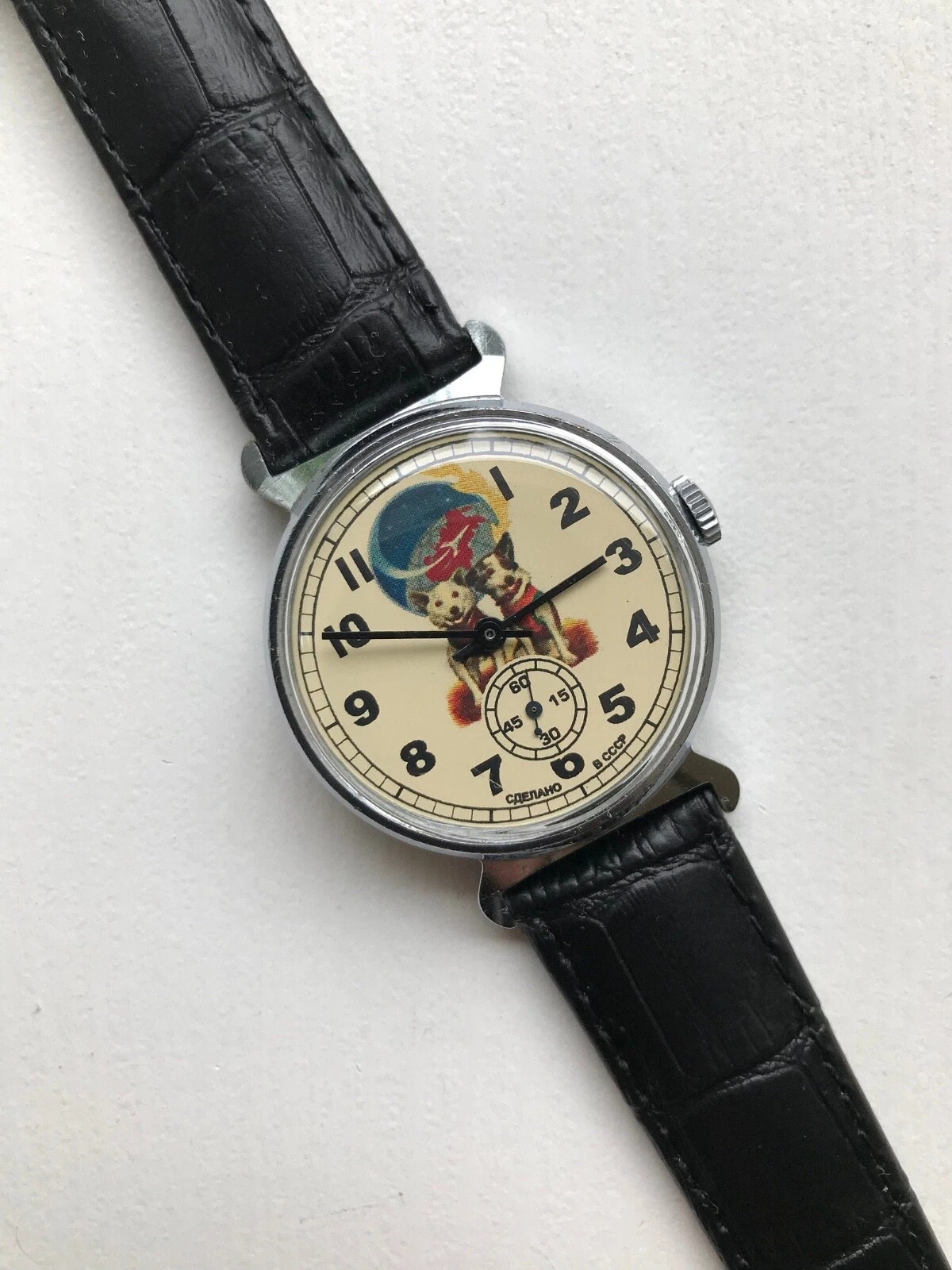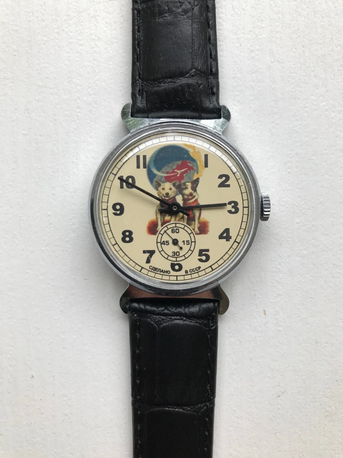 Vintage mechanical soviet unisex wristwatch Pobeda - Belka Strelka 1970s