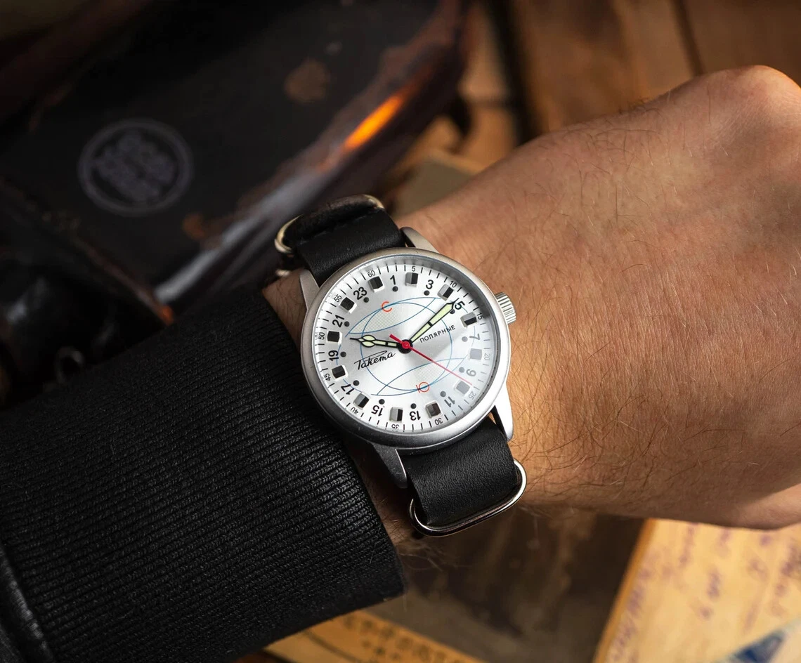 Raketa 24 Hours, Vintage men's watch "ROCKET" mechanical Soviet wristwatch