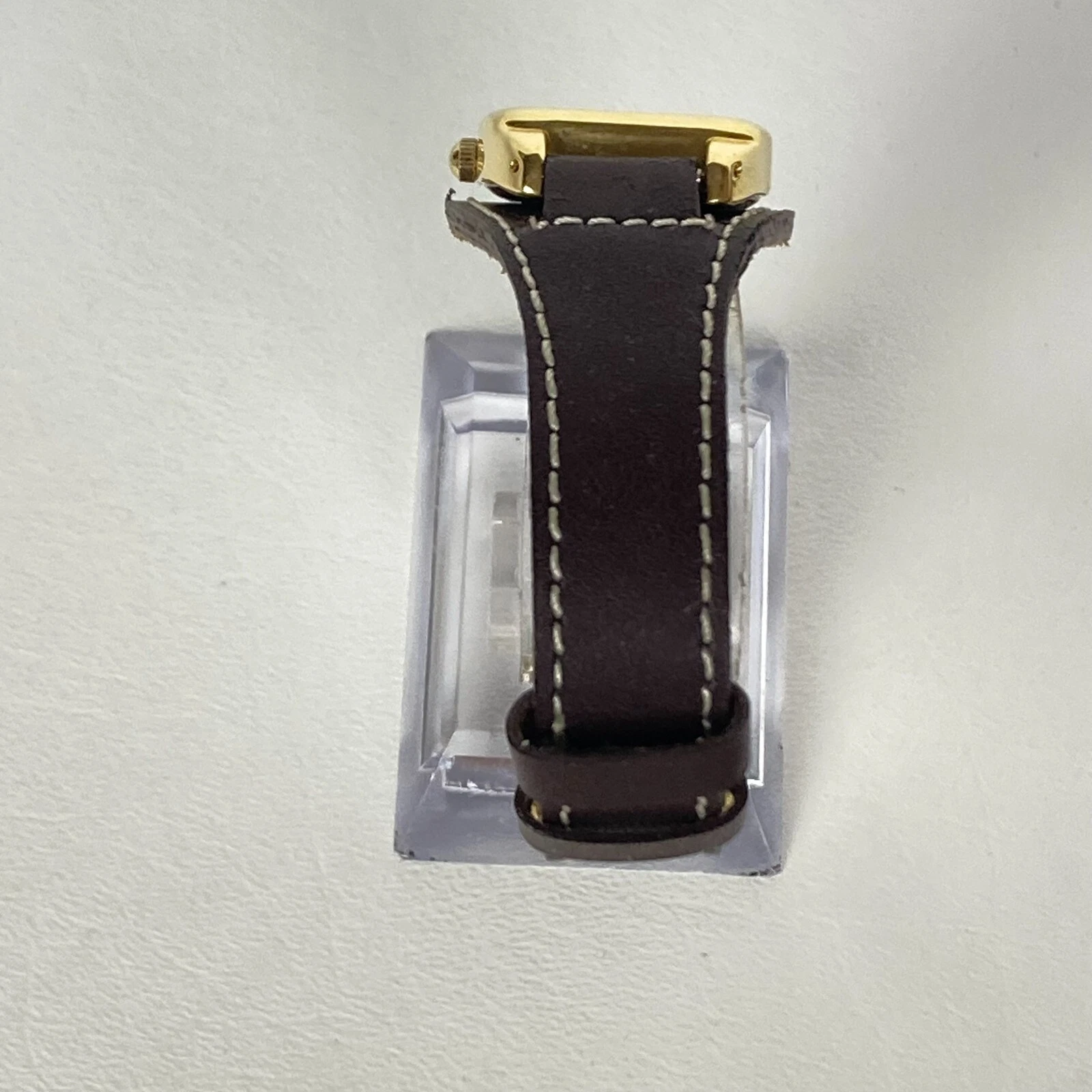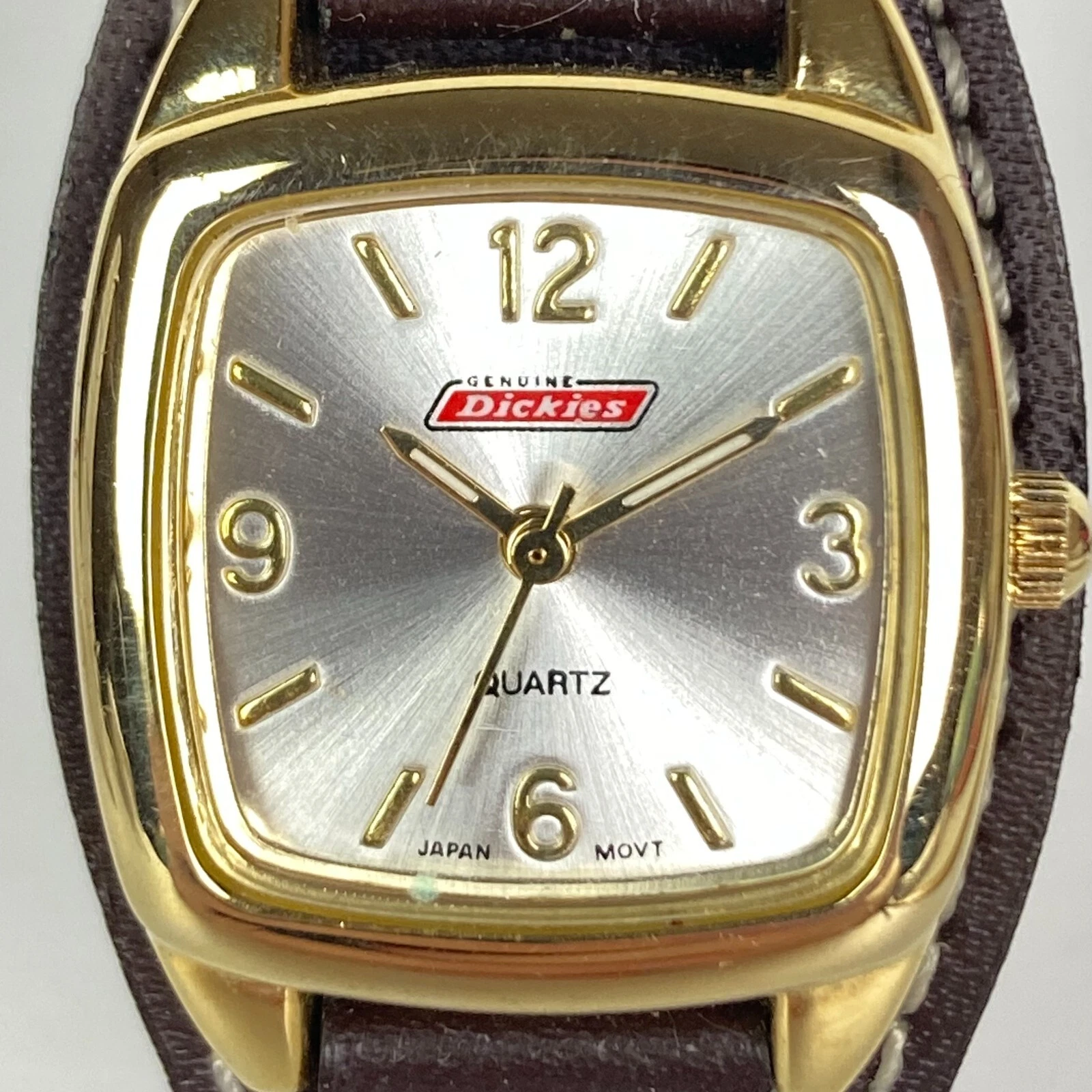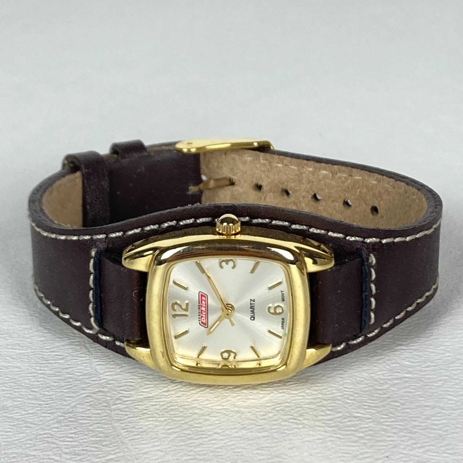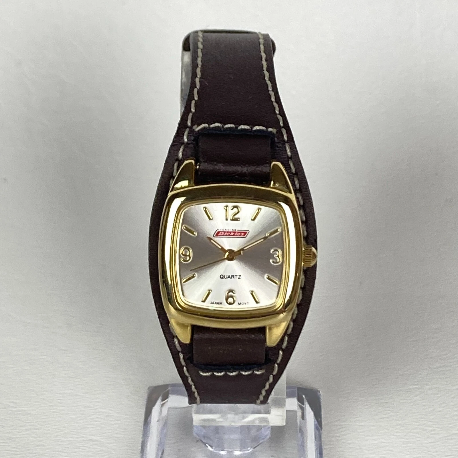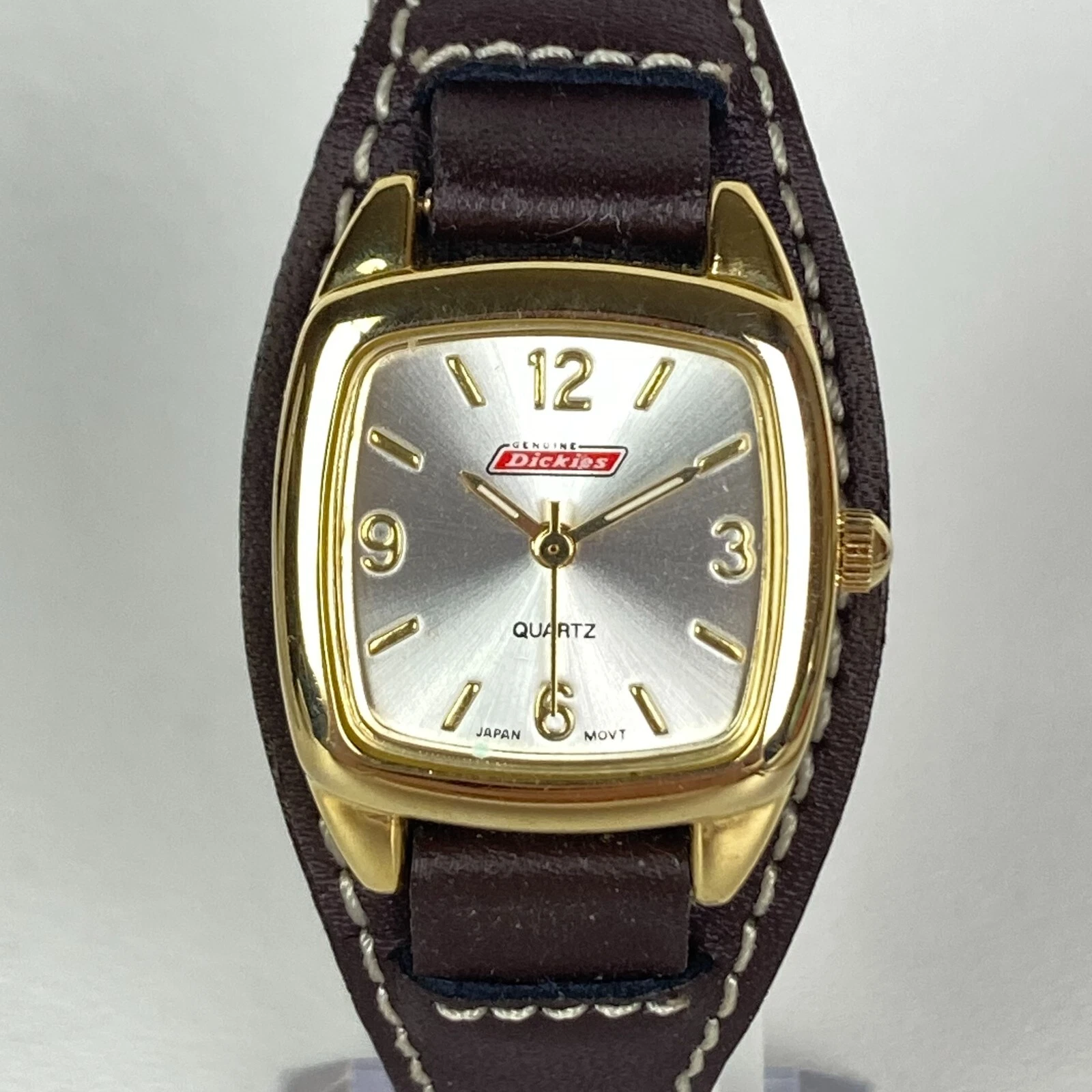 Dickie's Watch Women 24mm Gold Tone Brown Leather Cuff Square New Battery 8"