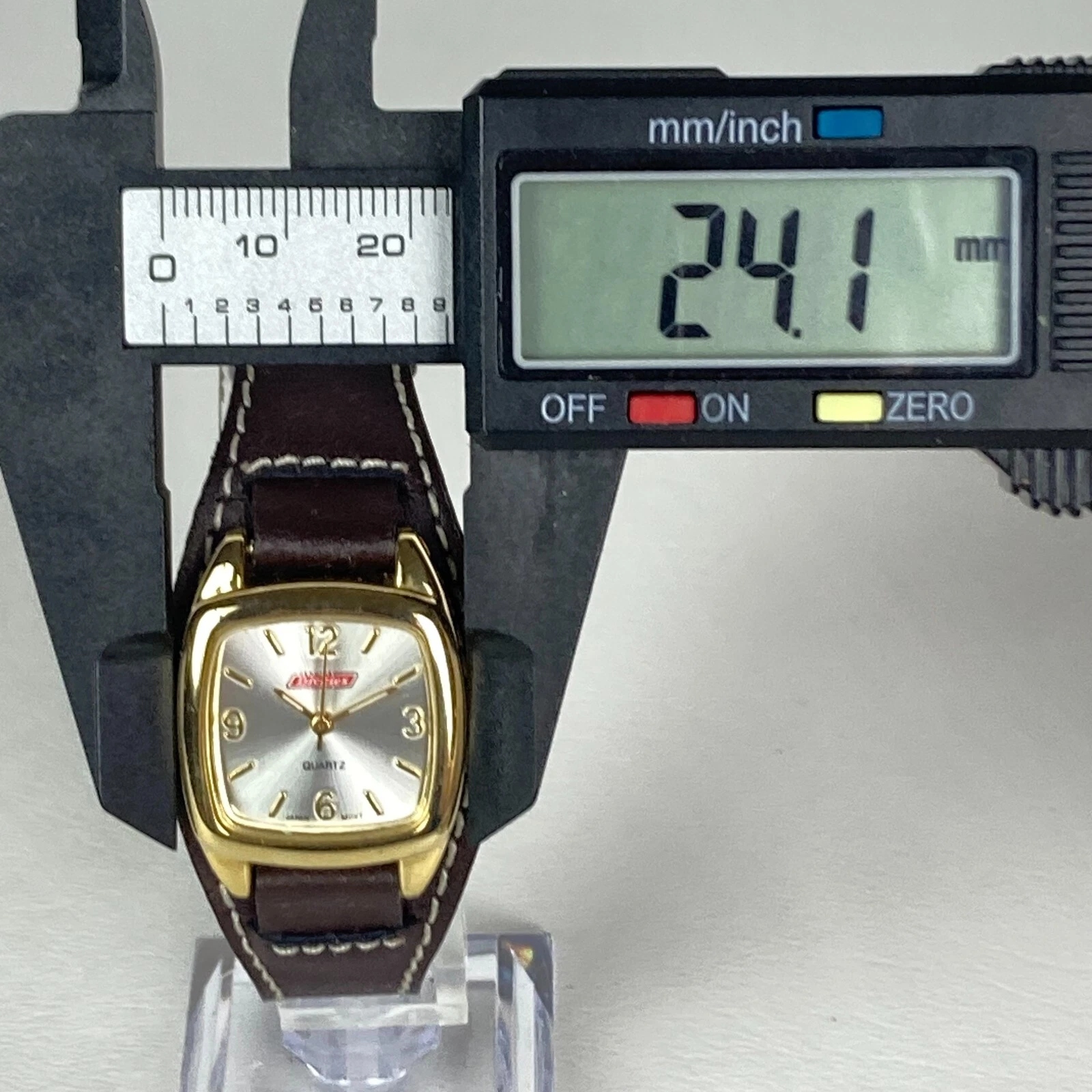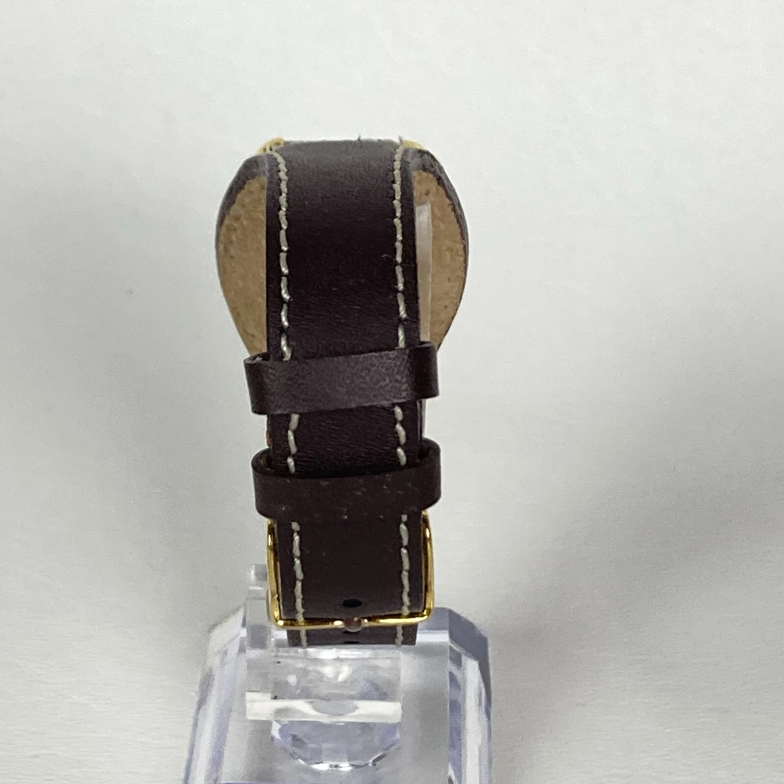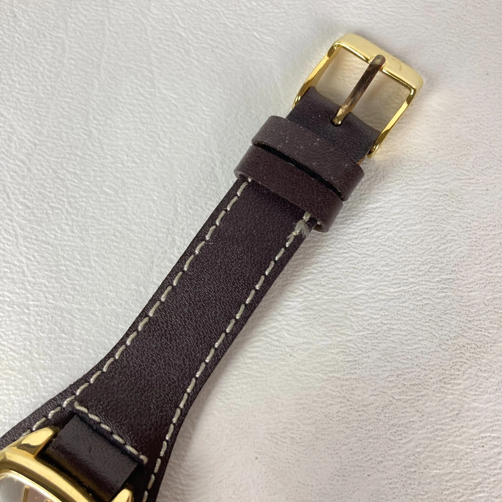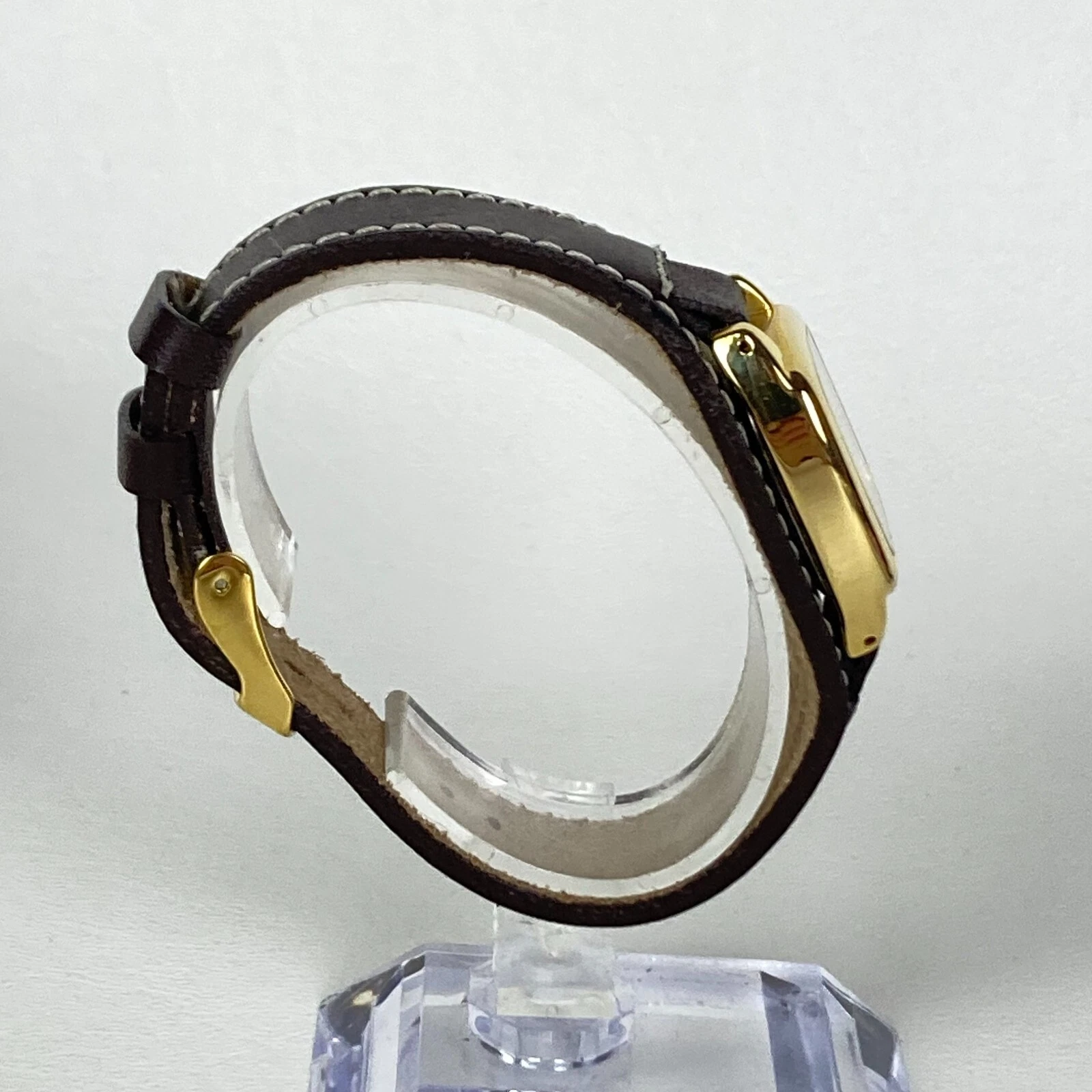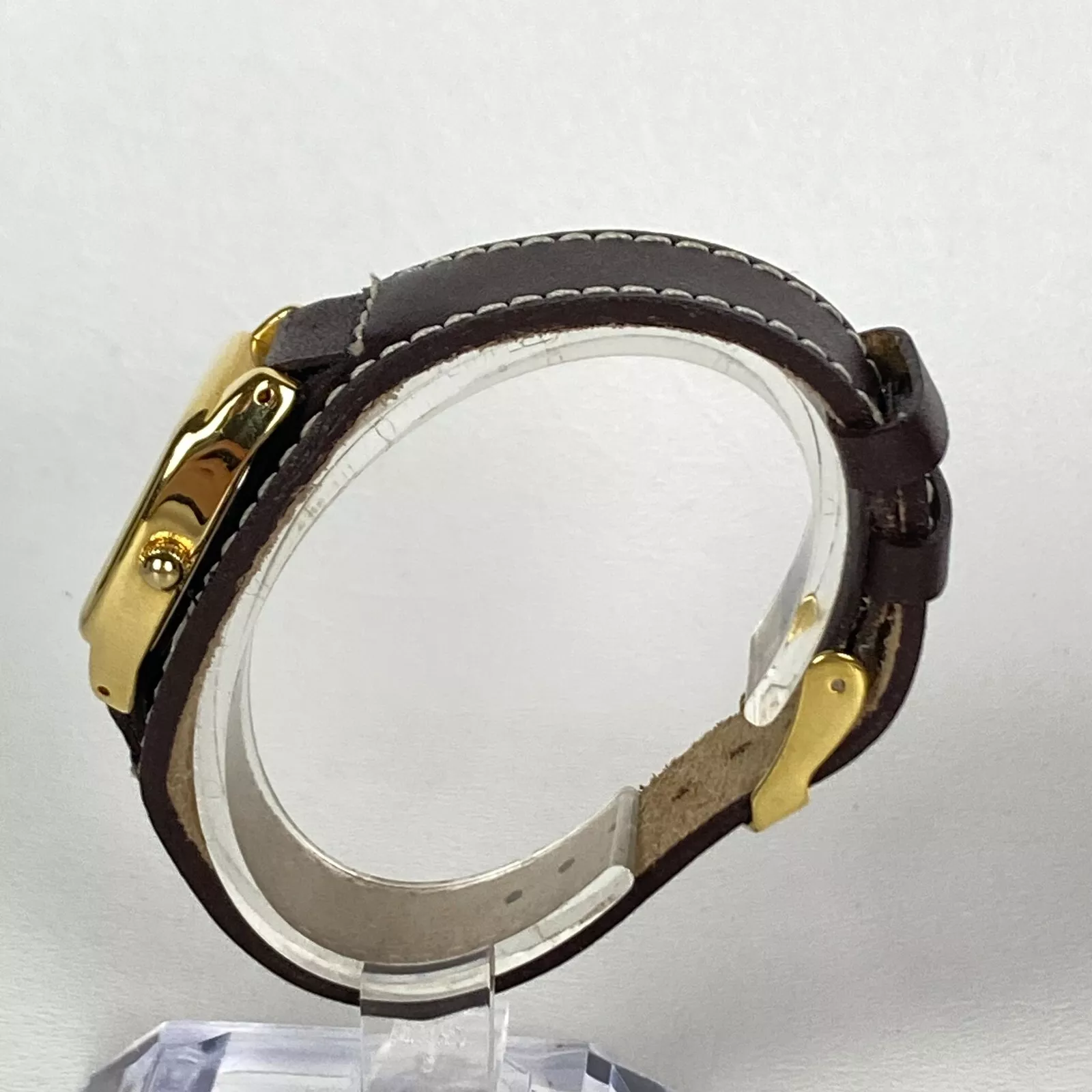 Dickie's Watch Women 24mm Gold Tone Brown Leather Cuff Square New Battery 8"