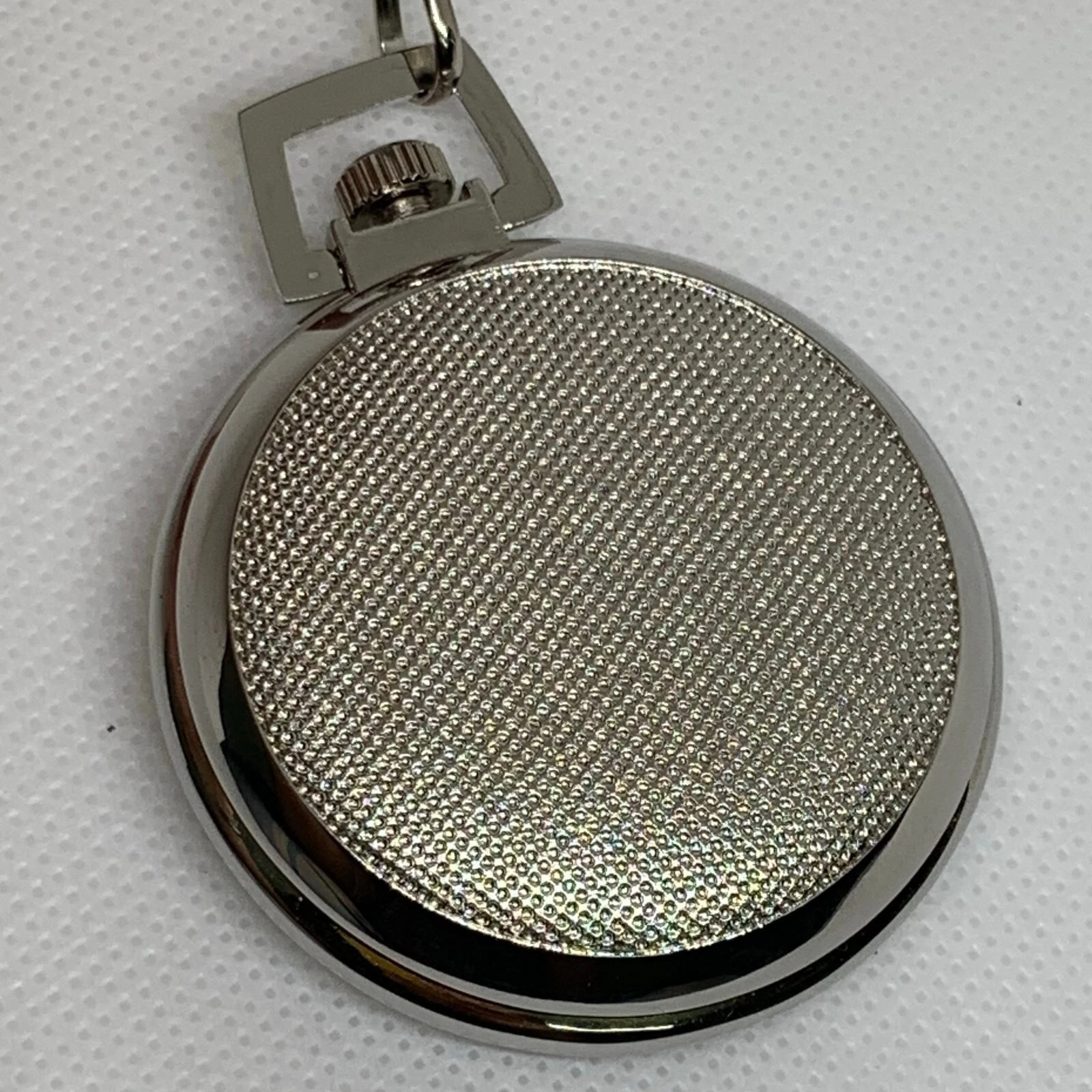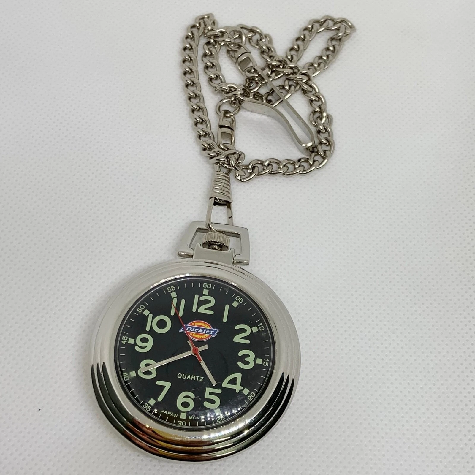 Vtg Dickies open face pocket watch silver black dial  tone with chain running