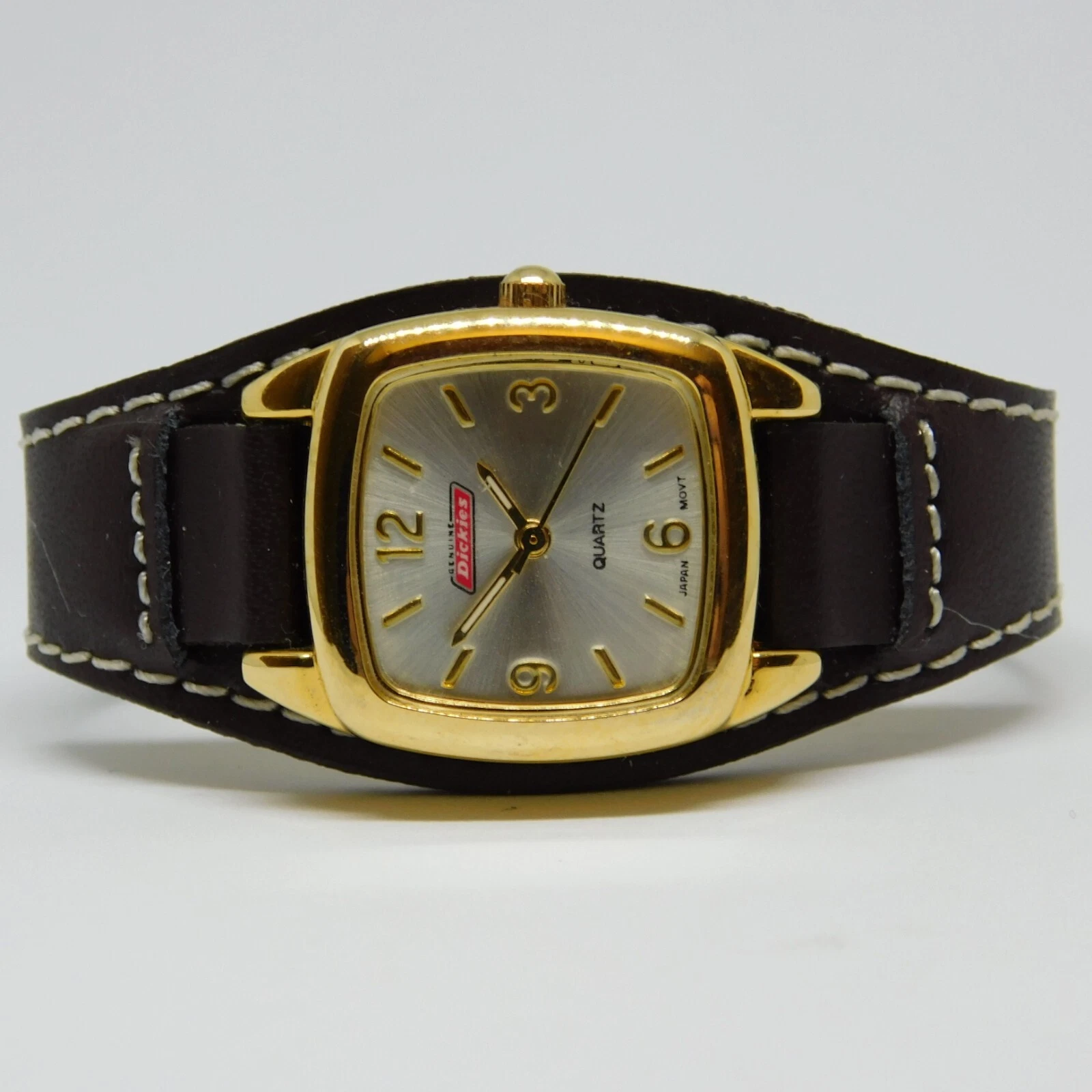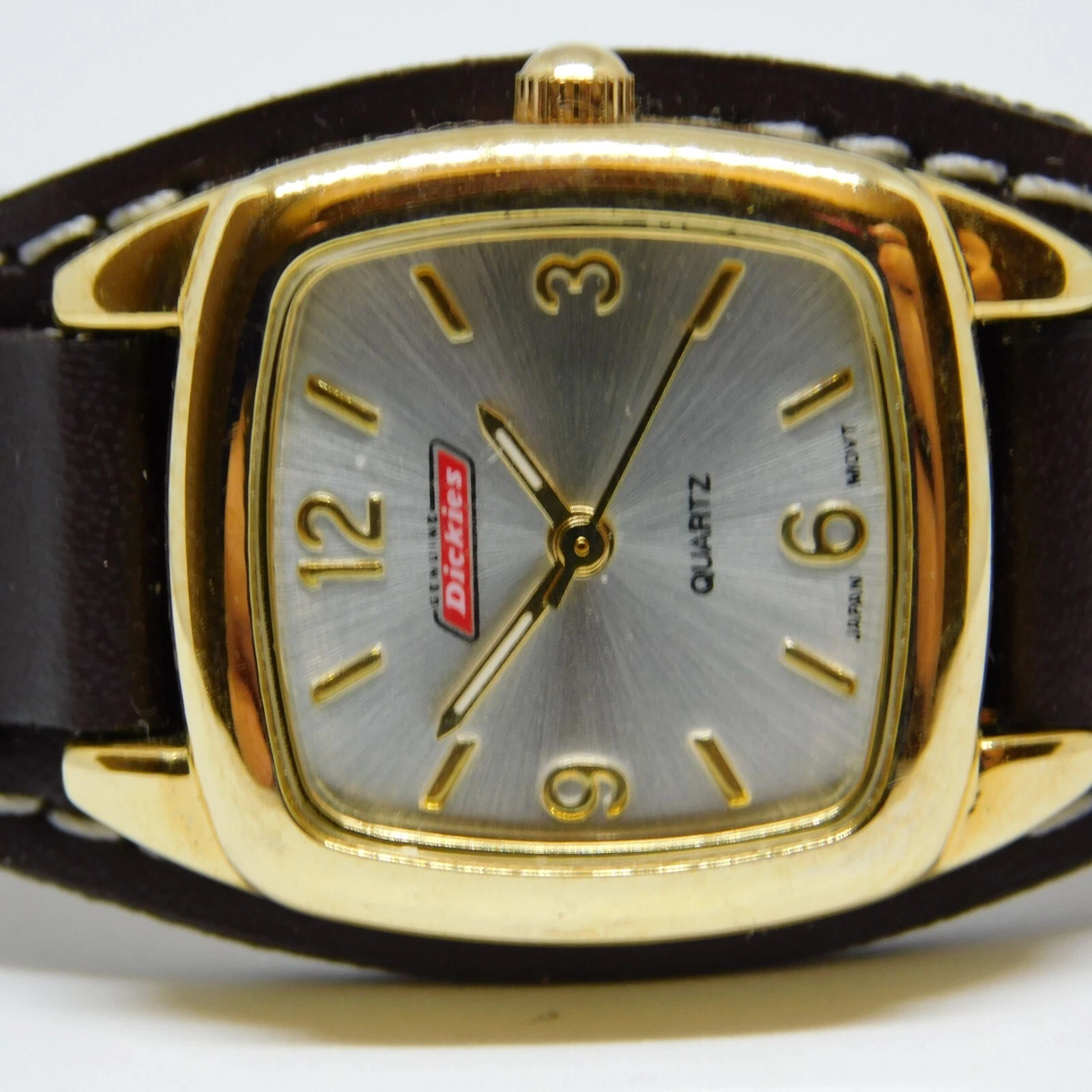 Dickies Gold Tone Case Genuine Leather Quartz Analog Women's Watch New Battery