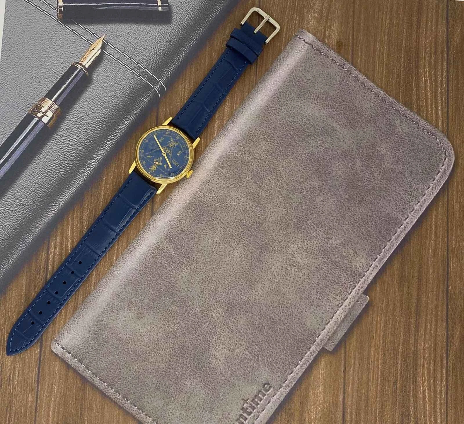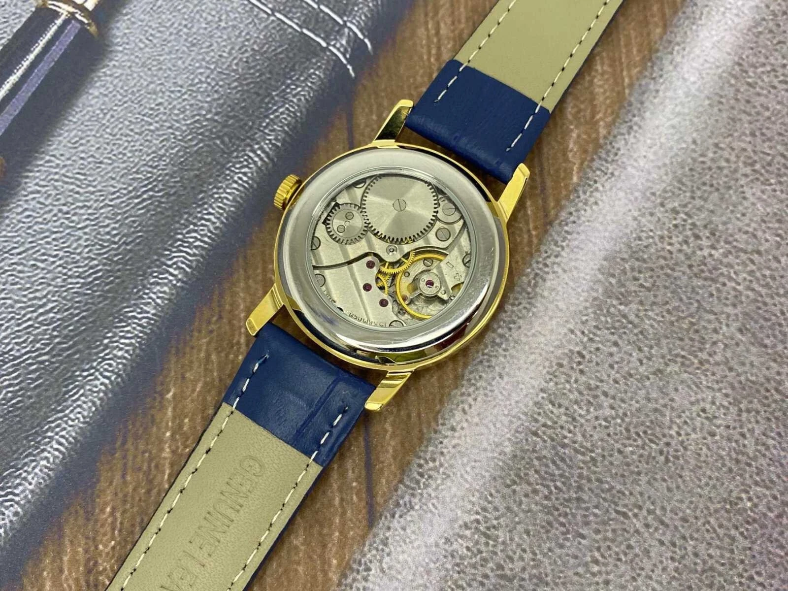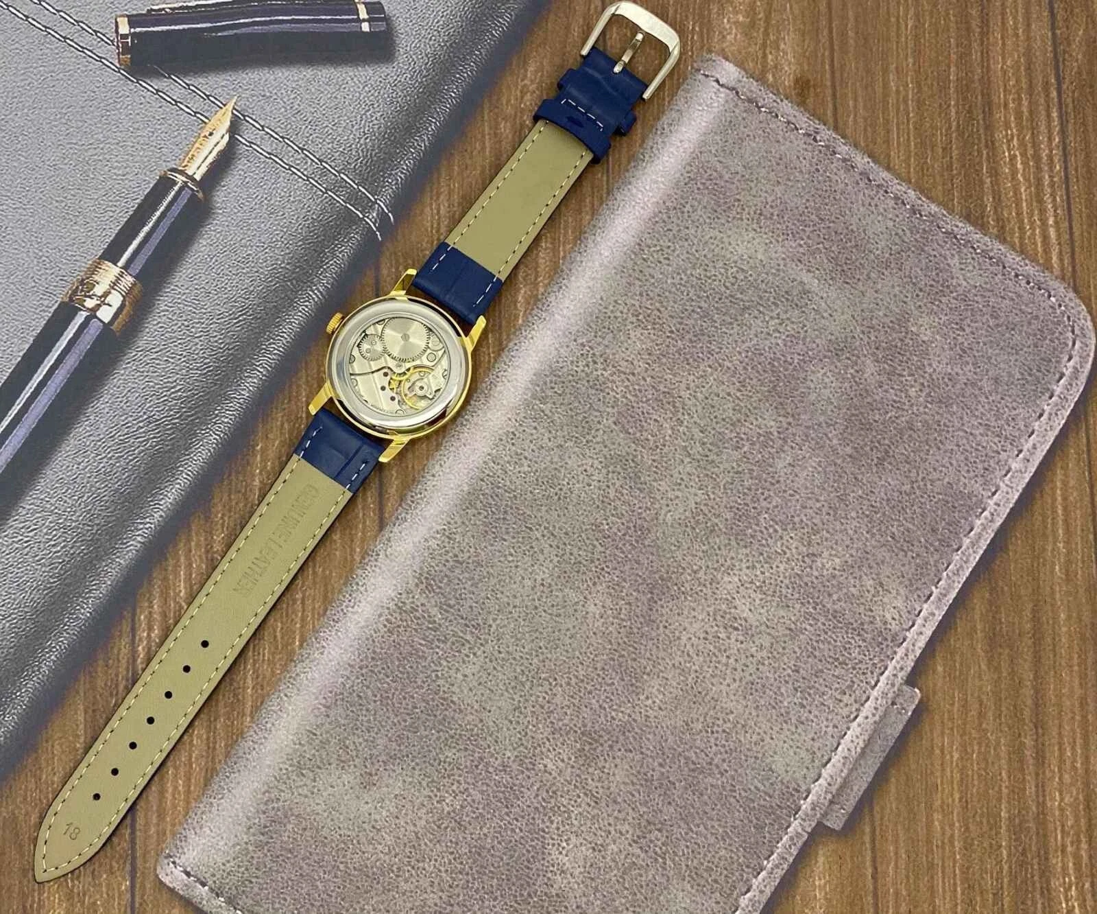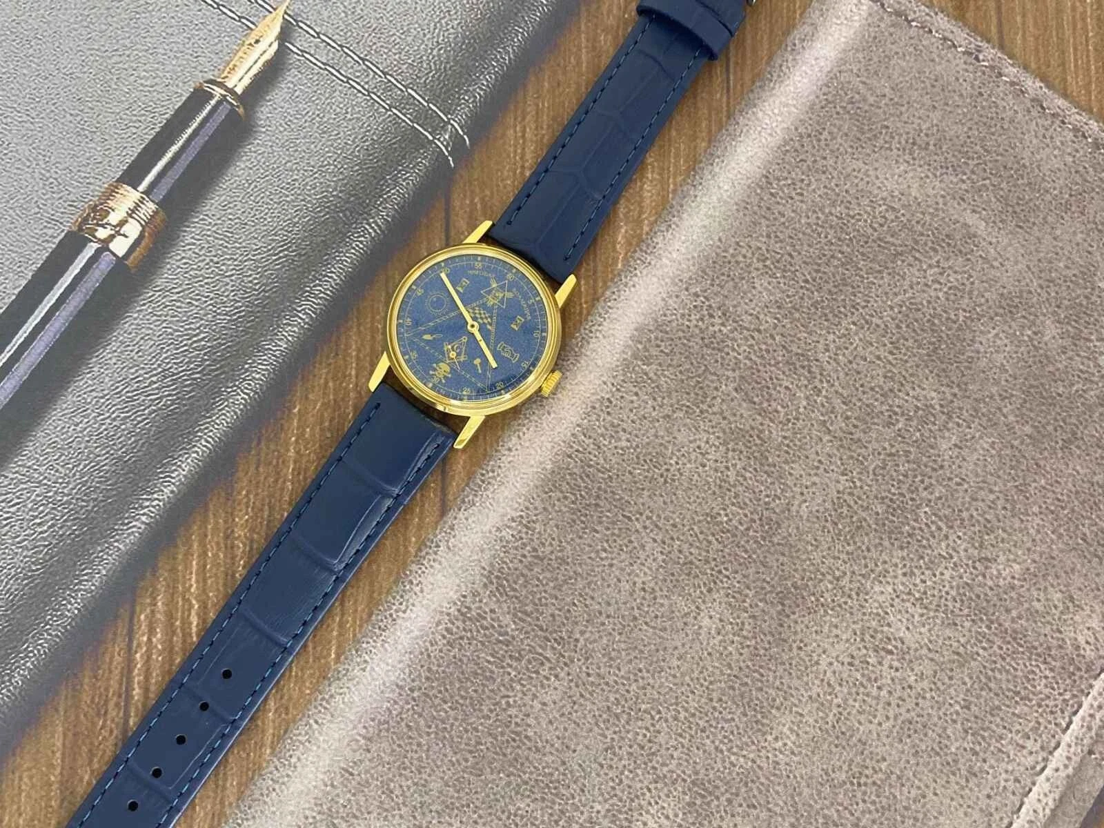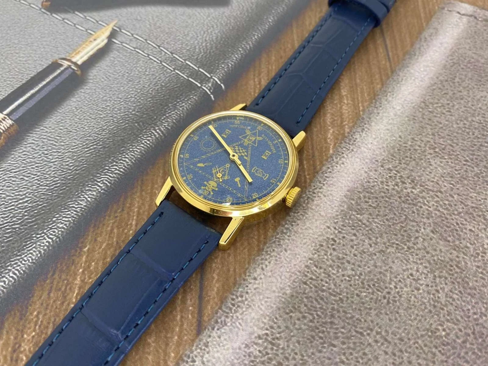 Pobeda Masonic Watch Wrist Blue Dial Strap Leather Men's Soviet Russian 34 mm