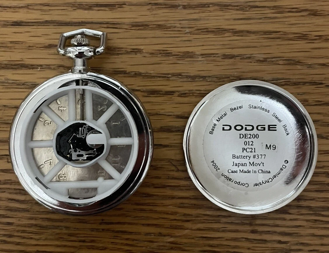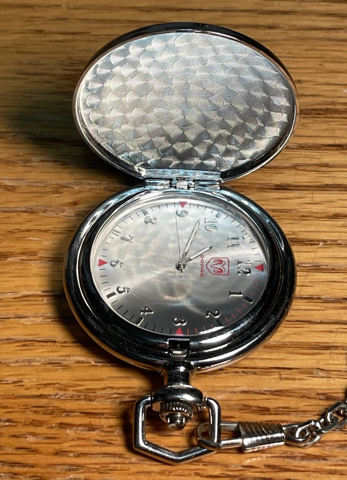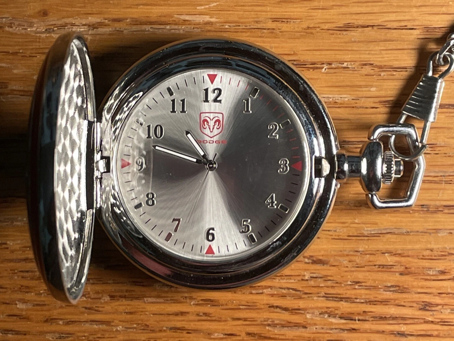 DODGE RAM QUARTZ POCKET WATCH/ Silver Tone Case, New Battery