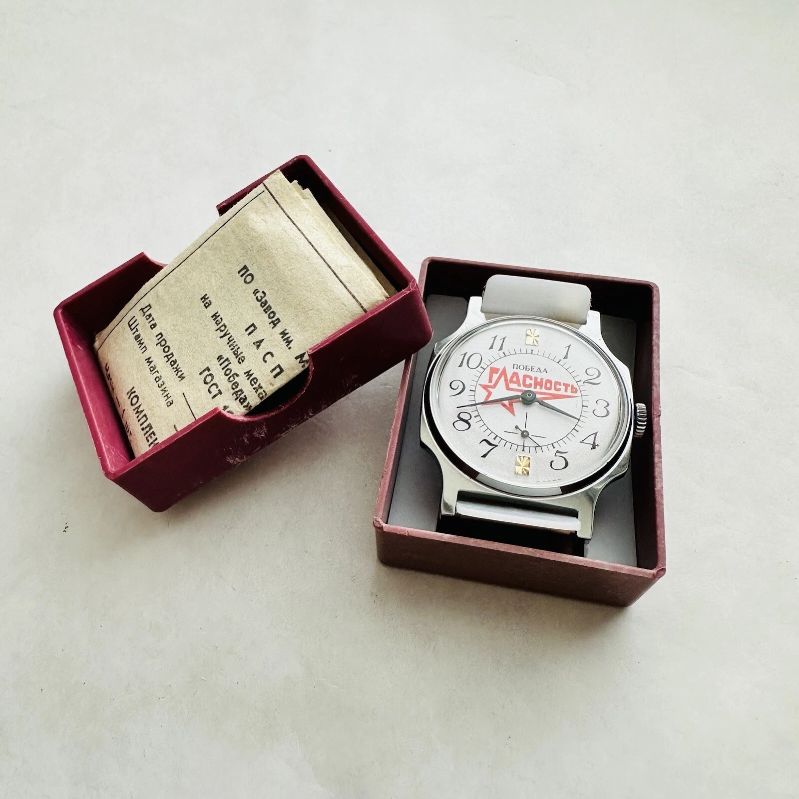 RARE NOS POBEDA GLASNOST 2602 ZIM 1991 SU USSR Watch Soviet Vtg Men's Old Box