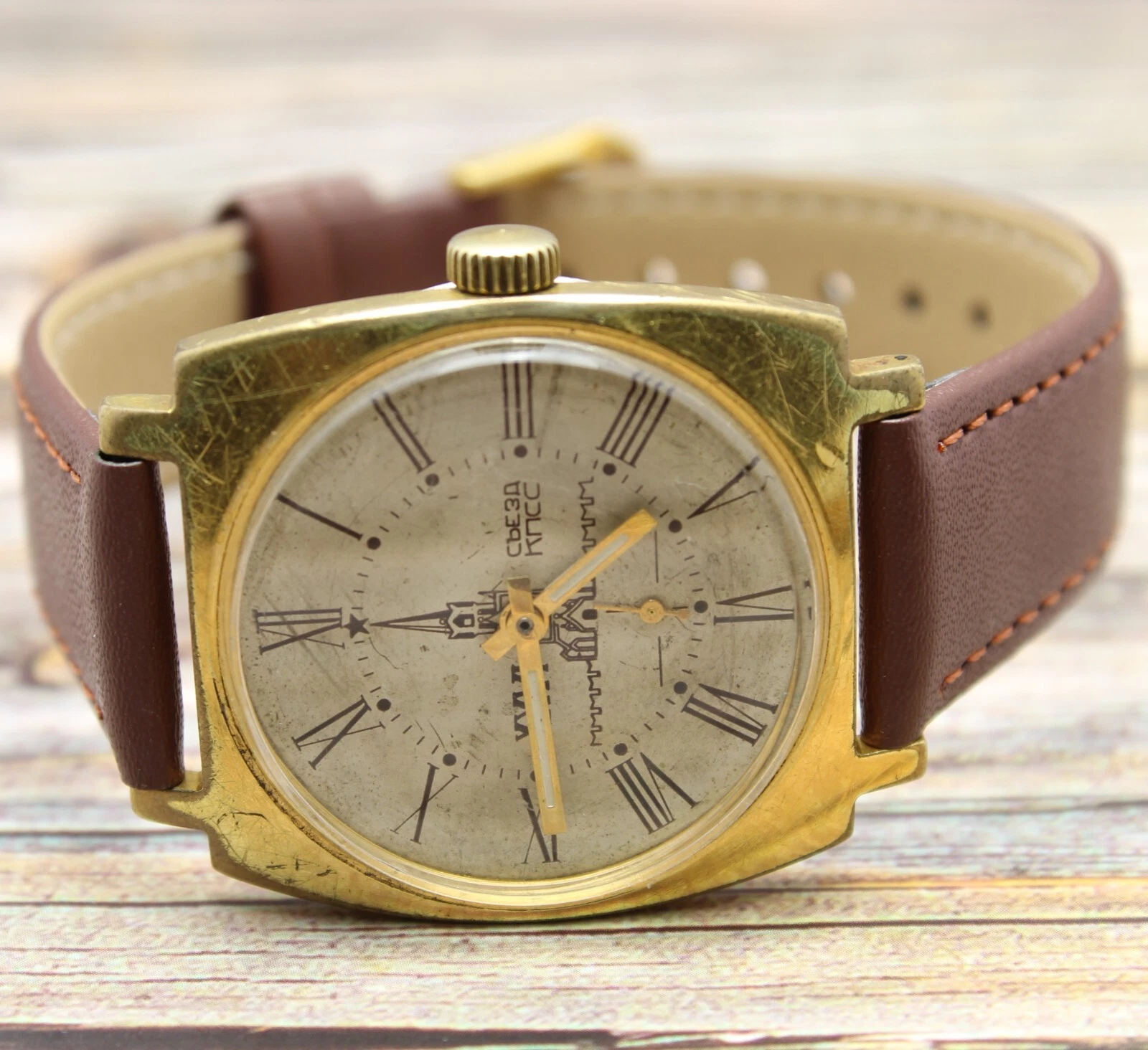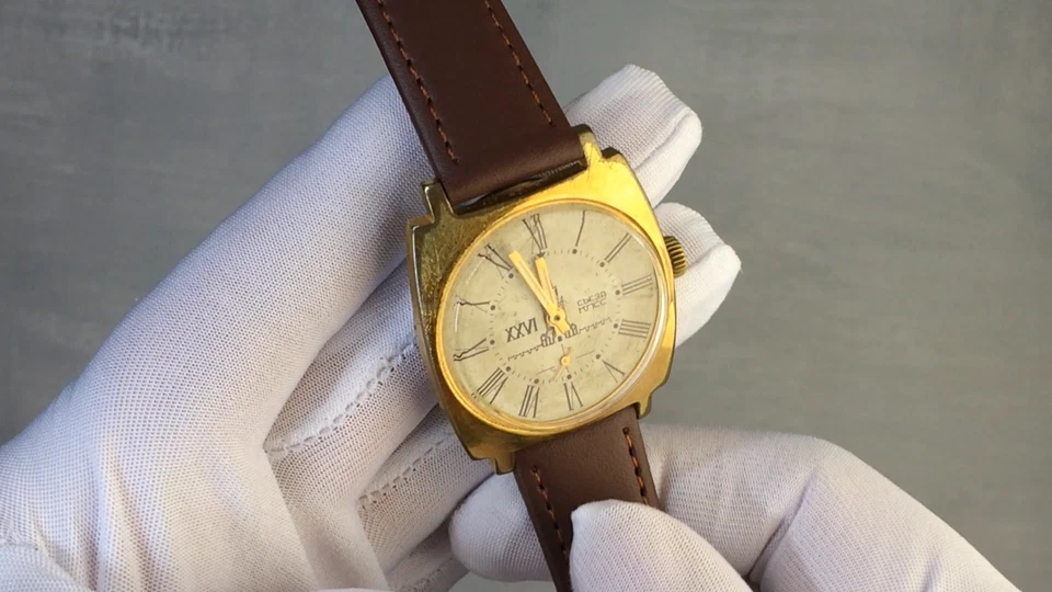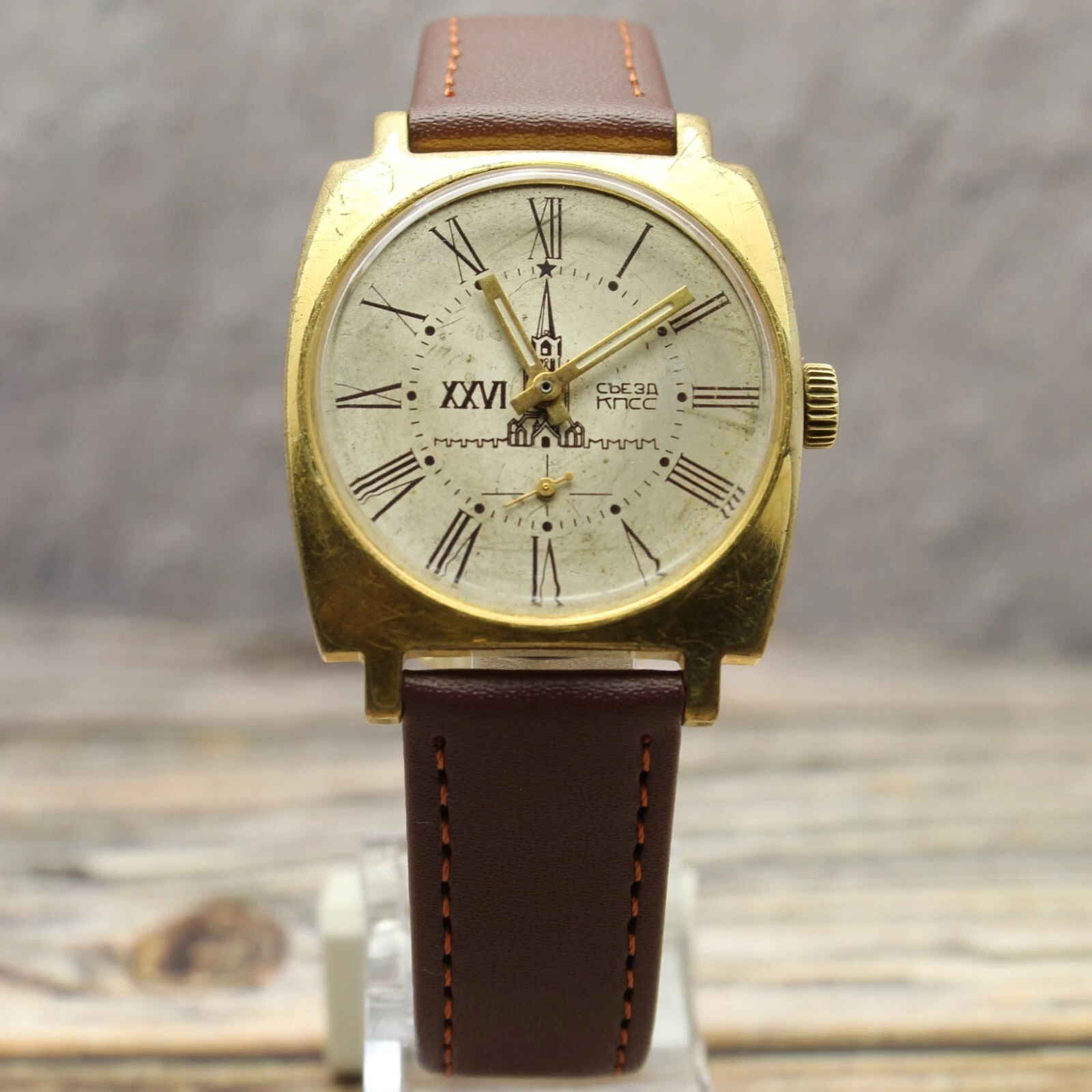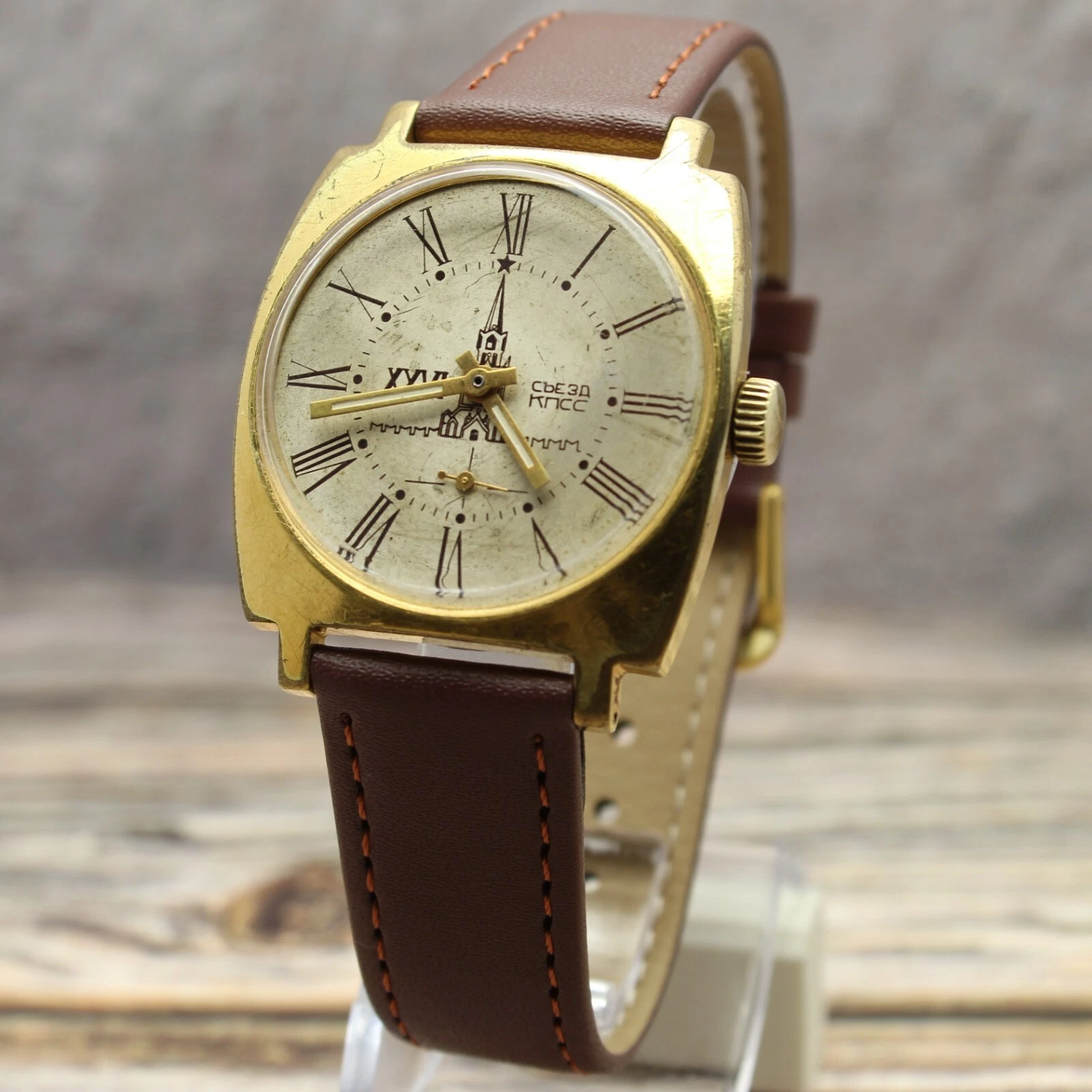 Vintage USSR Gilded mens watch POBEDA Zim 26th Congress CPSU Soviet ПОБЕДА⌚💥
