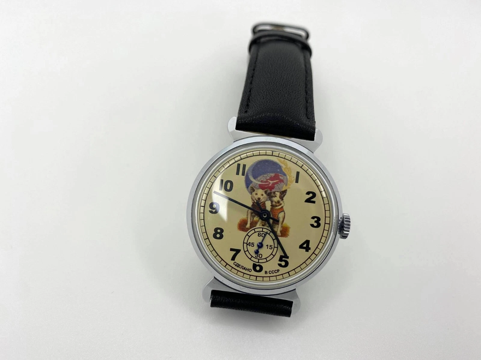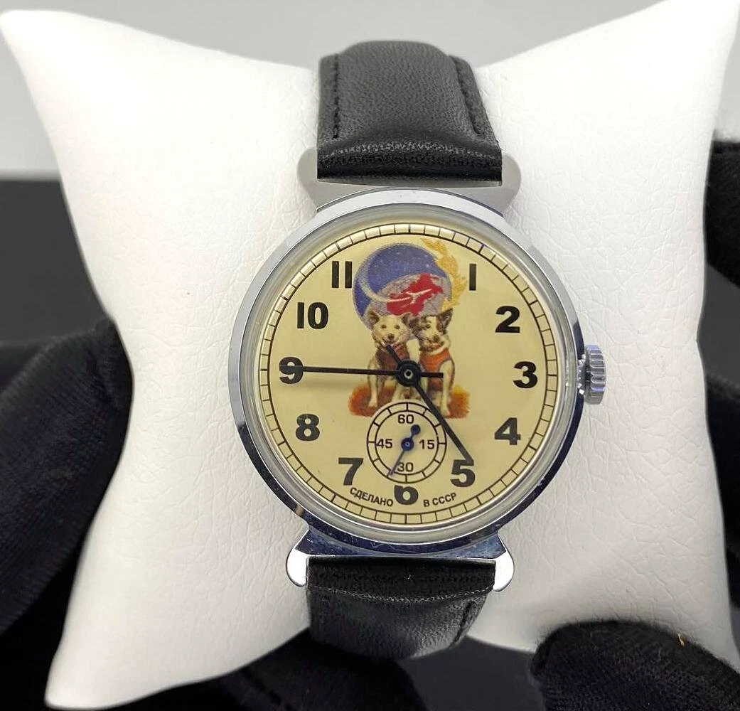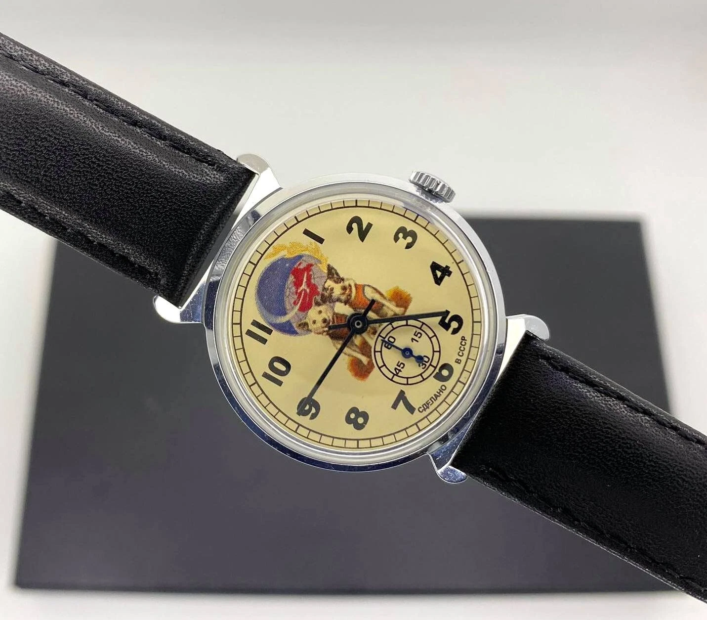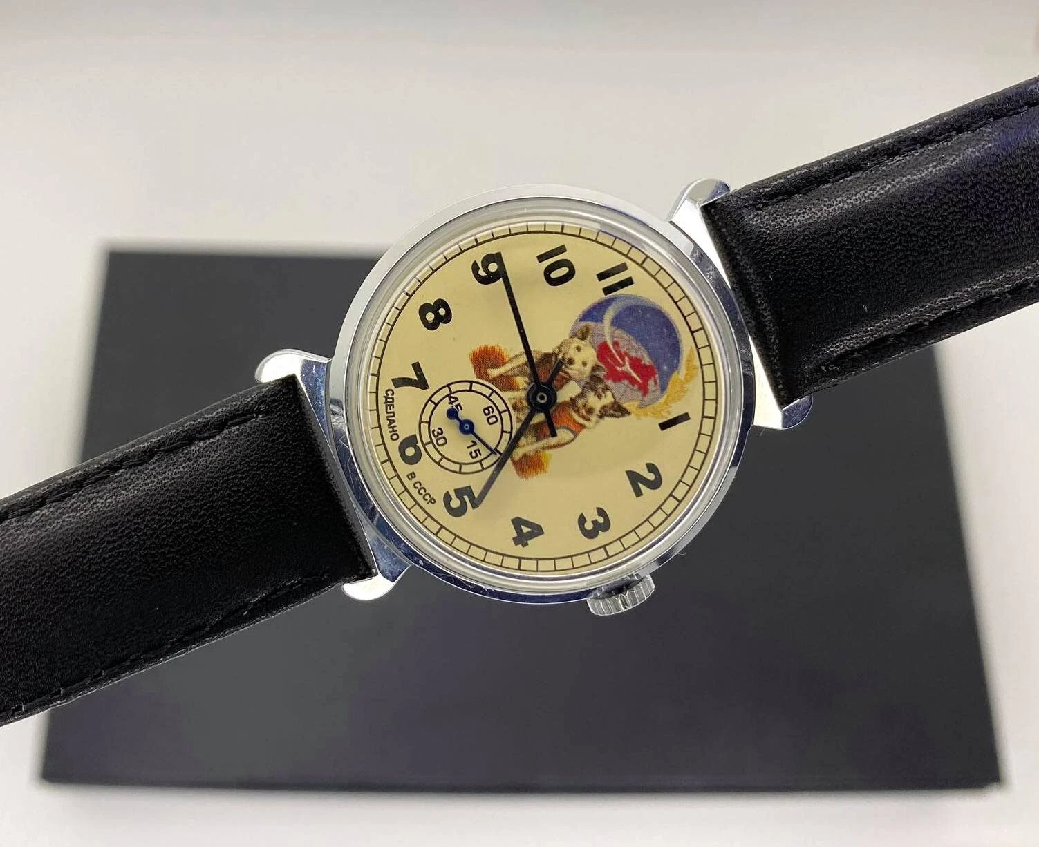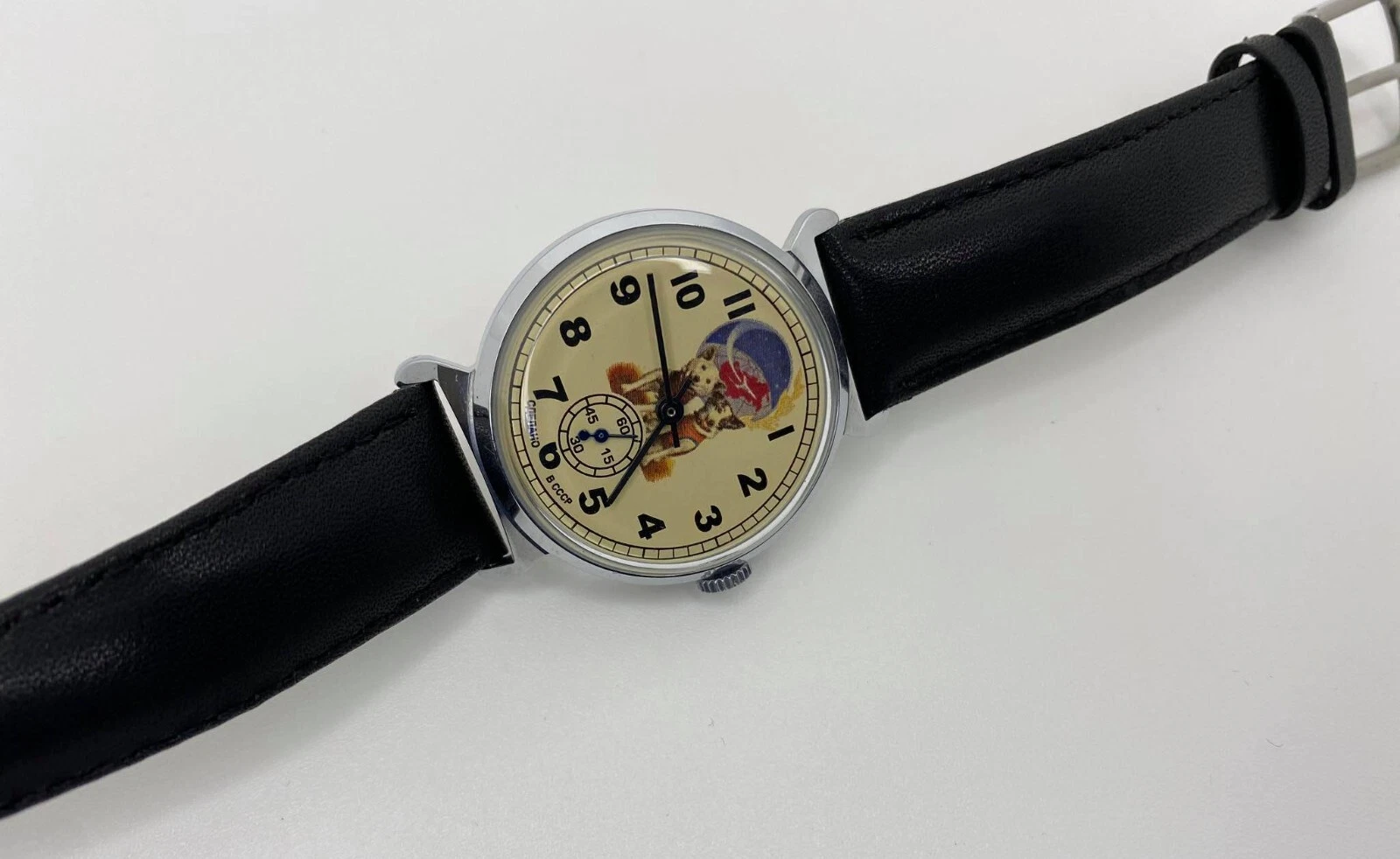 Rare Pobeda Mechanical Belka Dog Space Moon Wrist watch Russian USSR Gift
