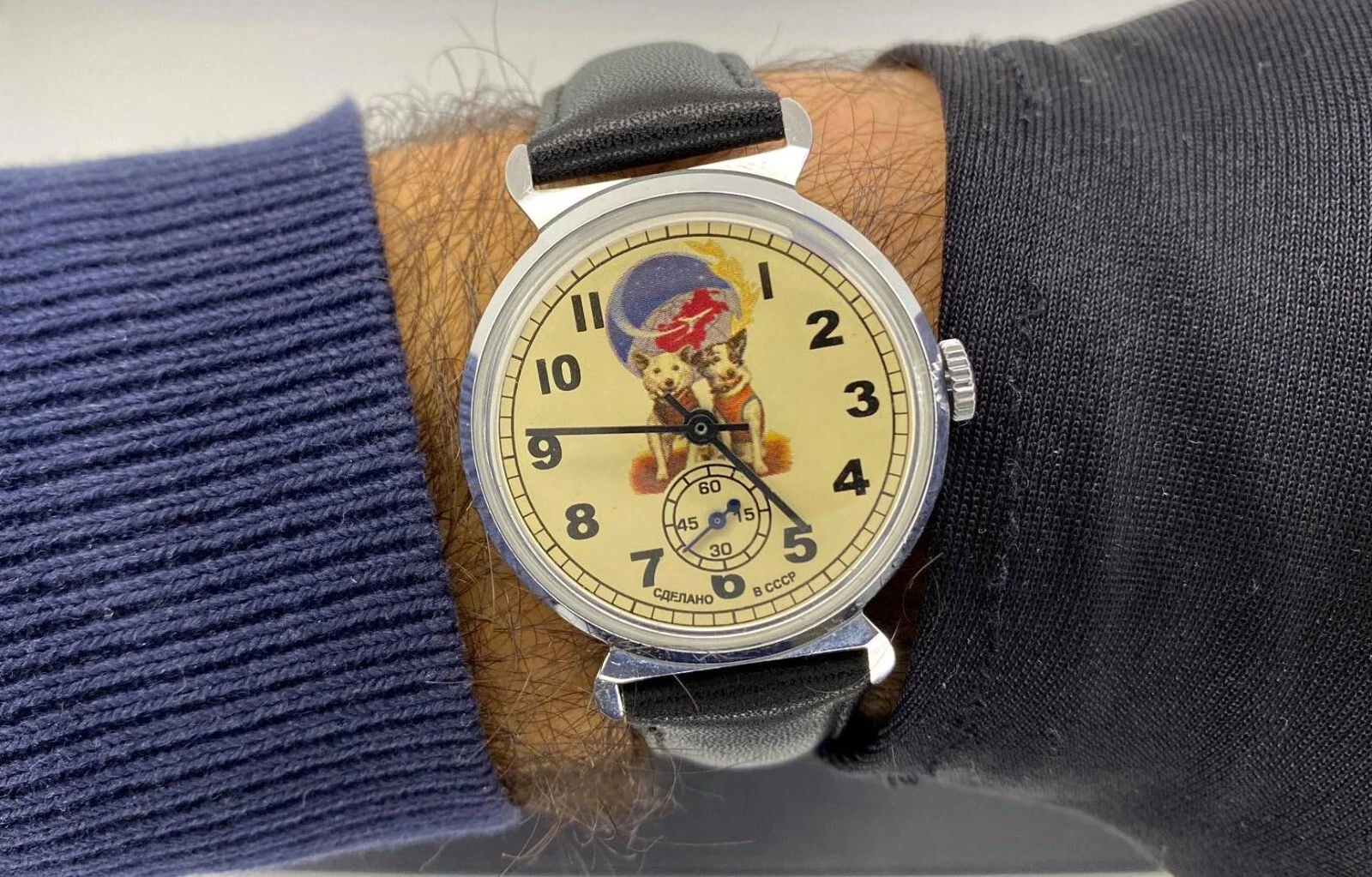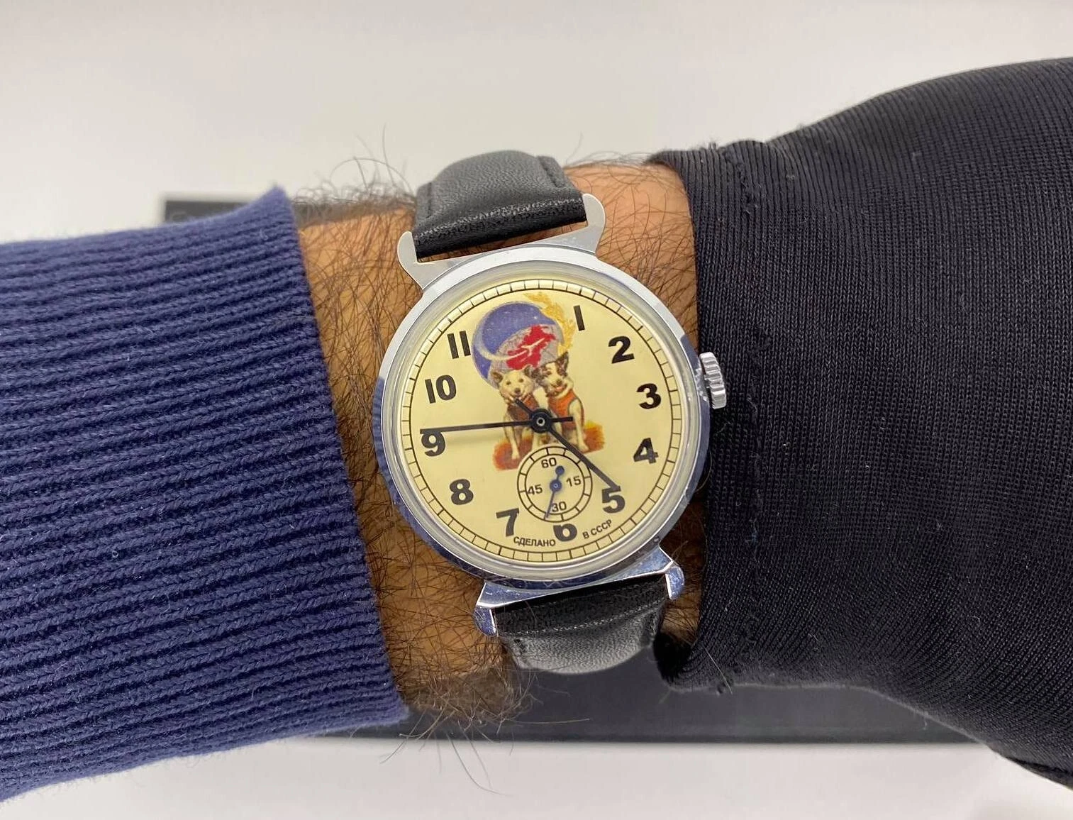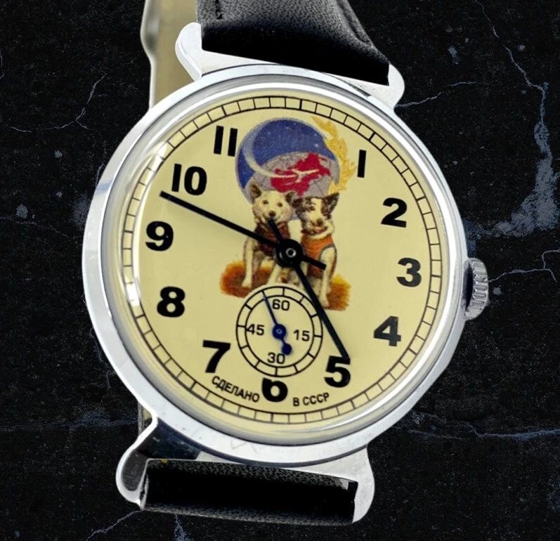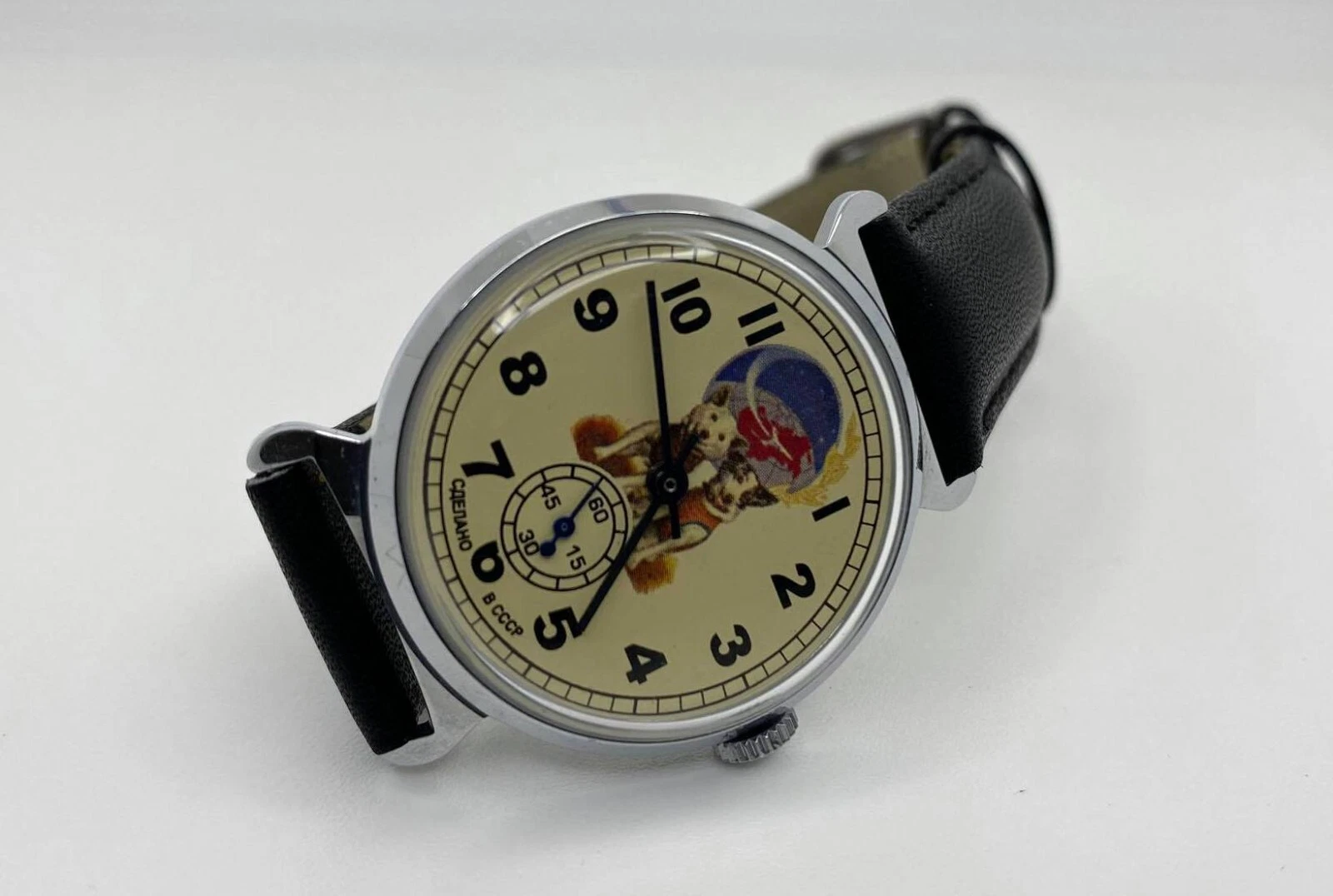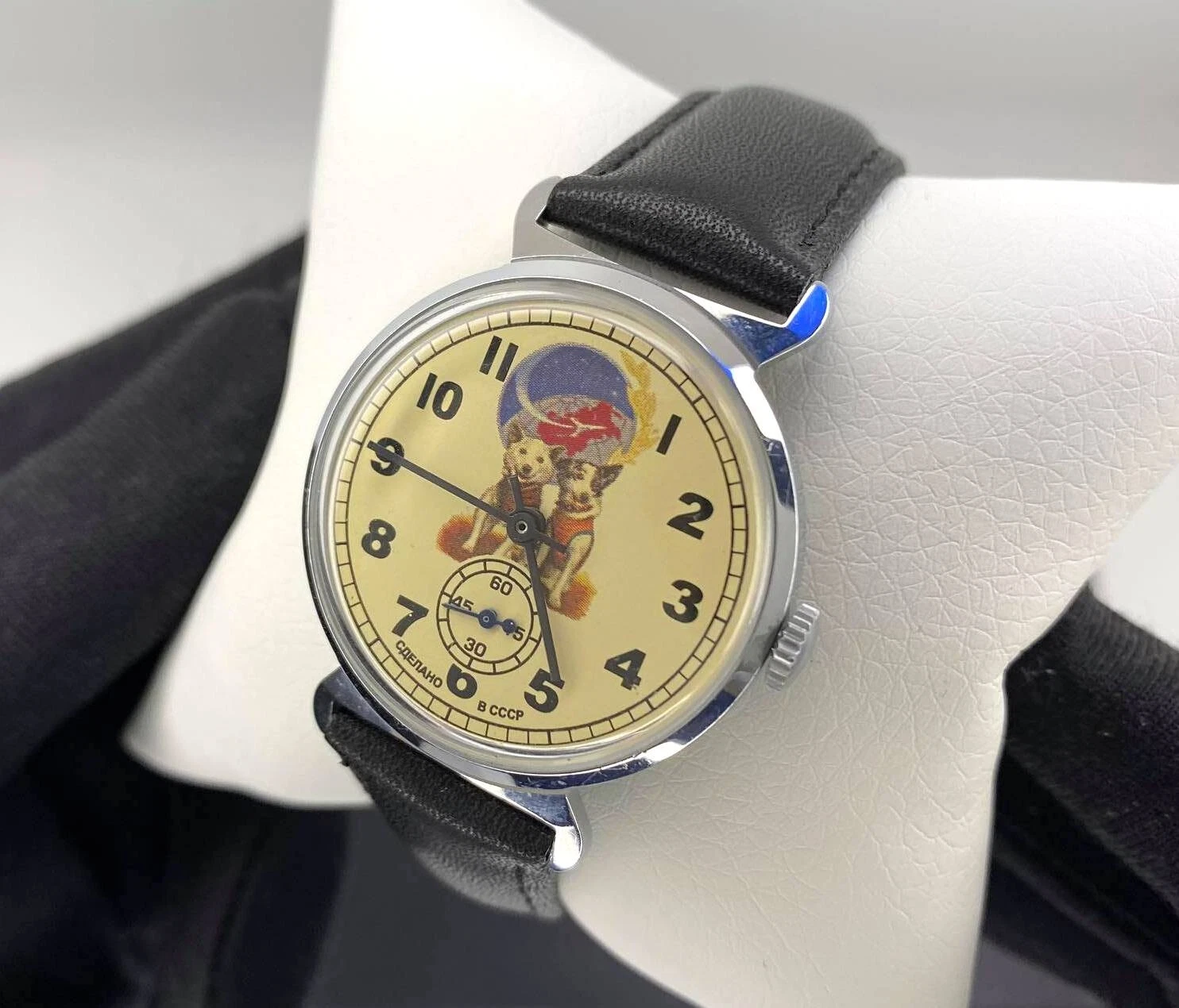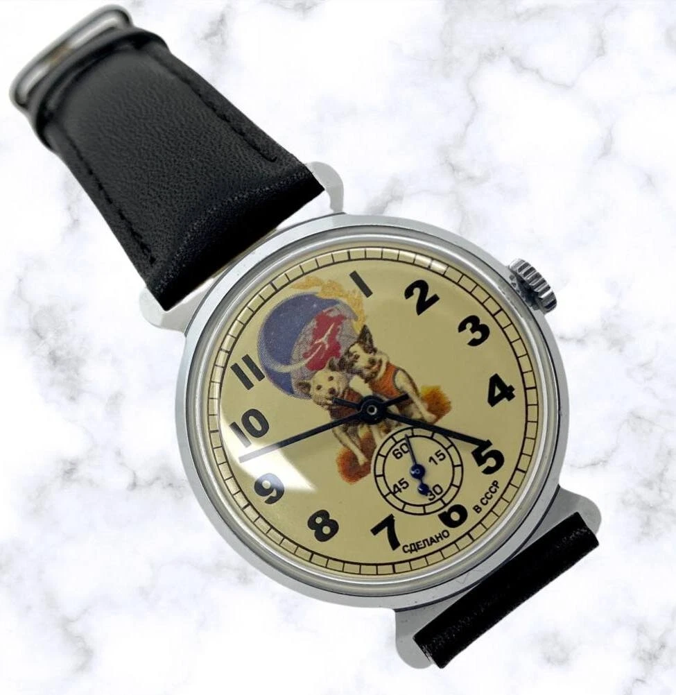 Rare Pobeda Mechanical Belka Dog Space Moon Wrist watch Russian USSR Gift