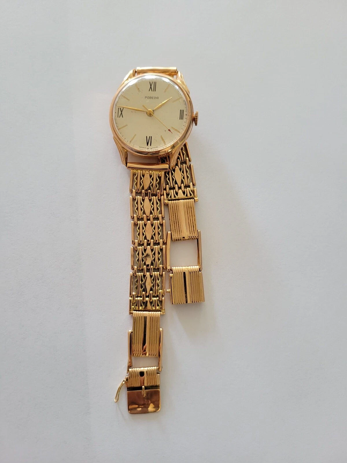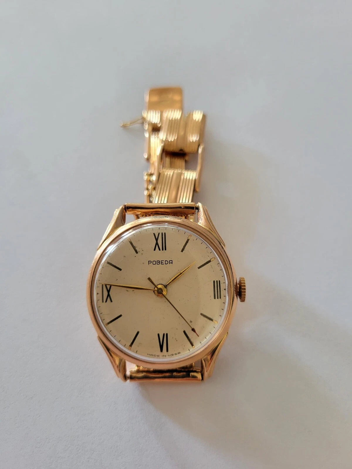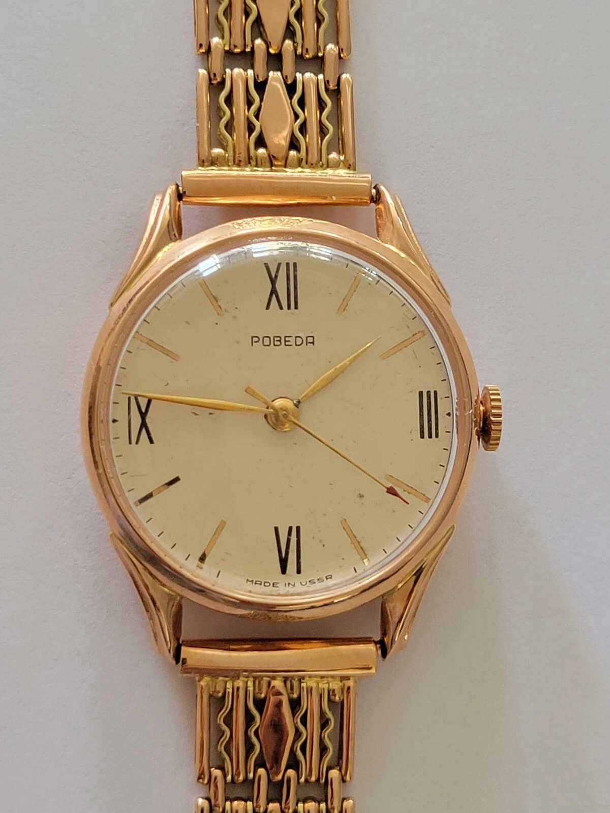 Vintage USSR 583 14K SOLID ROSE GOLD WATCH Pobeda Zim SOLID GOLD BAND