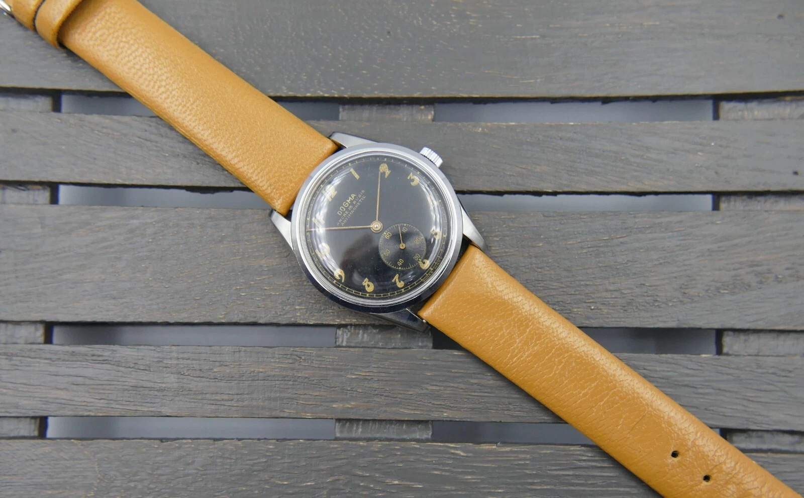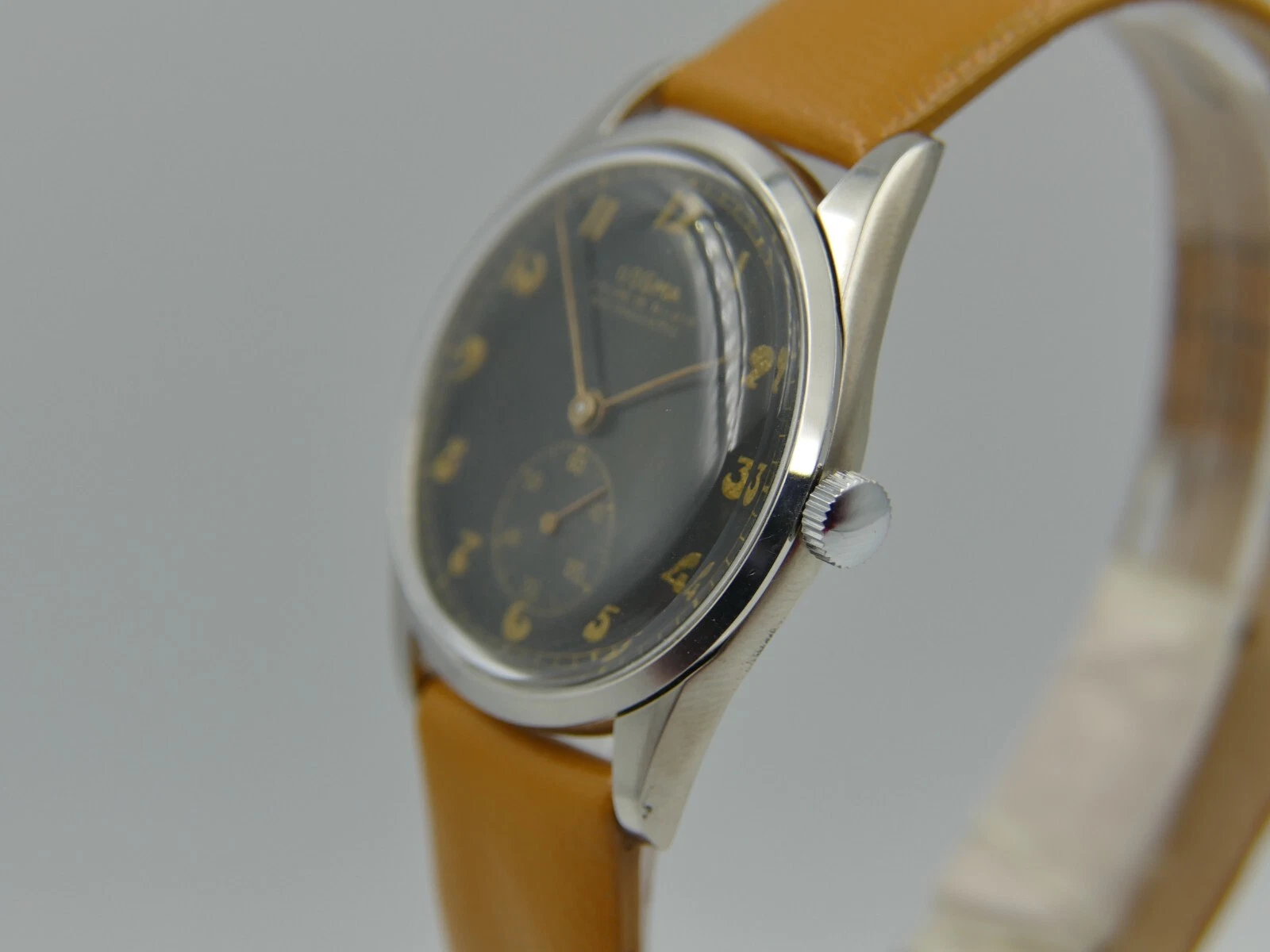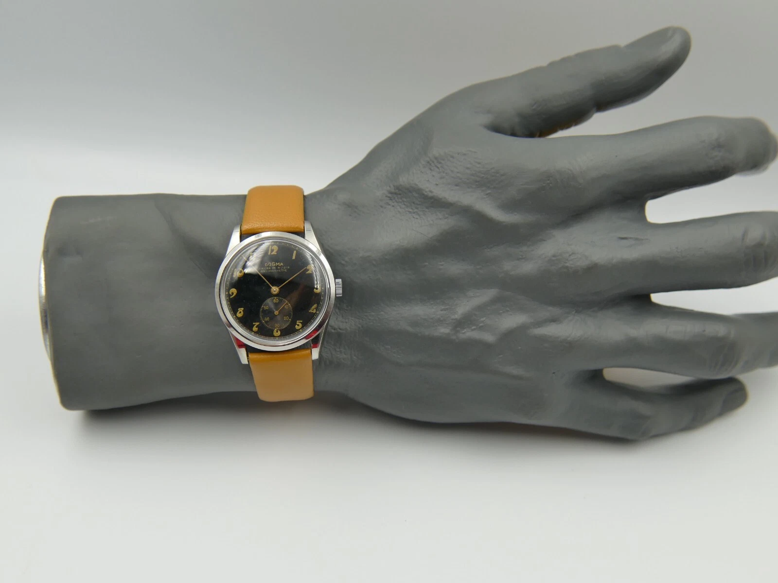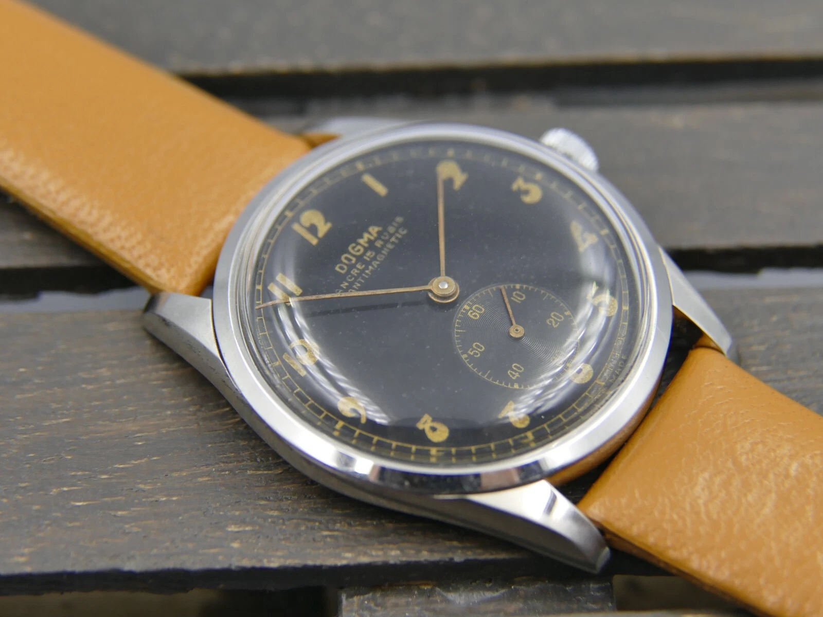 vintage watch mens Dogma hand wind black dial steel case ref 1736 mint 34.5mm
