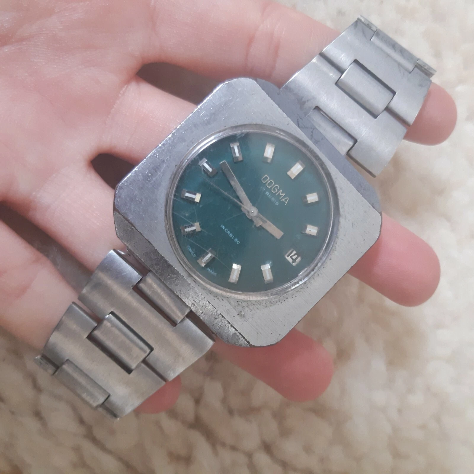 Dogma Rare square Green mechanical vintage watch Ref 451707,Old Dogma collection