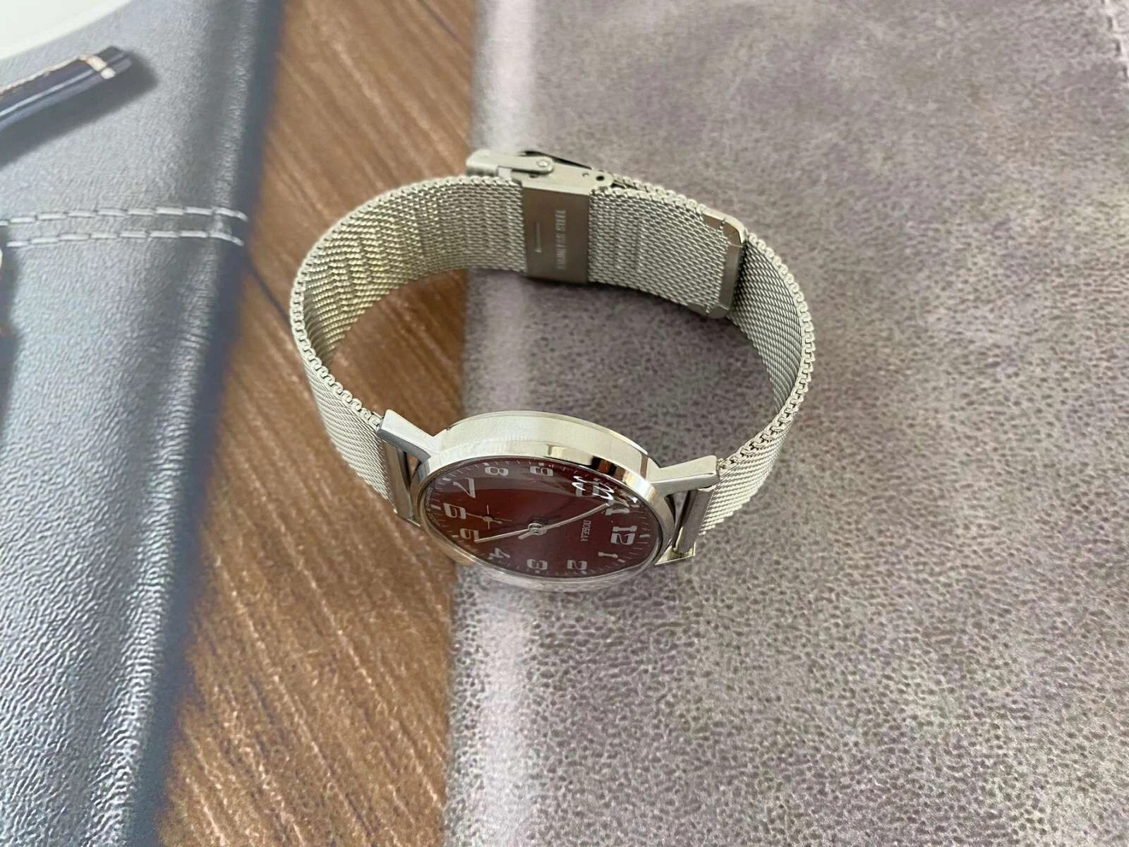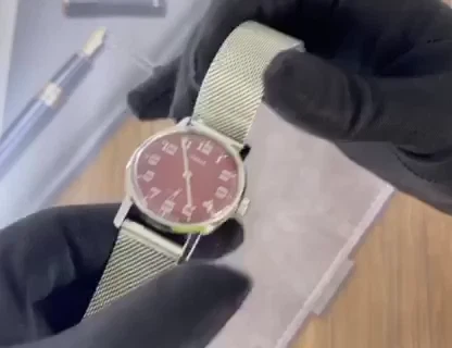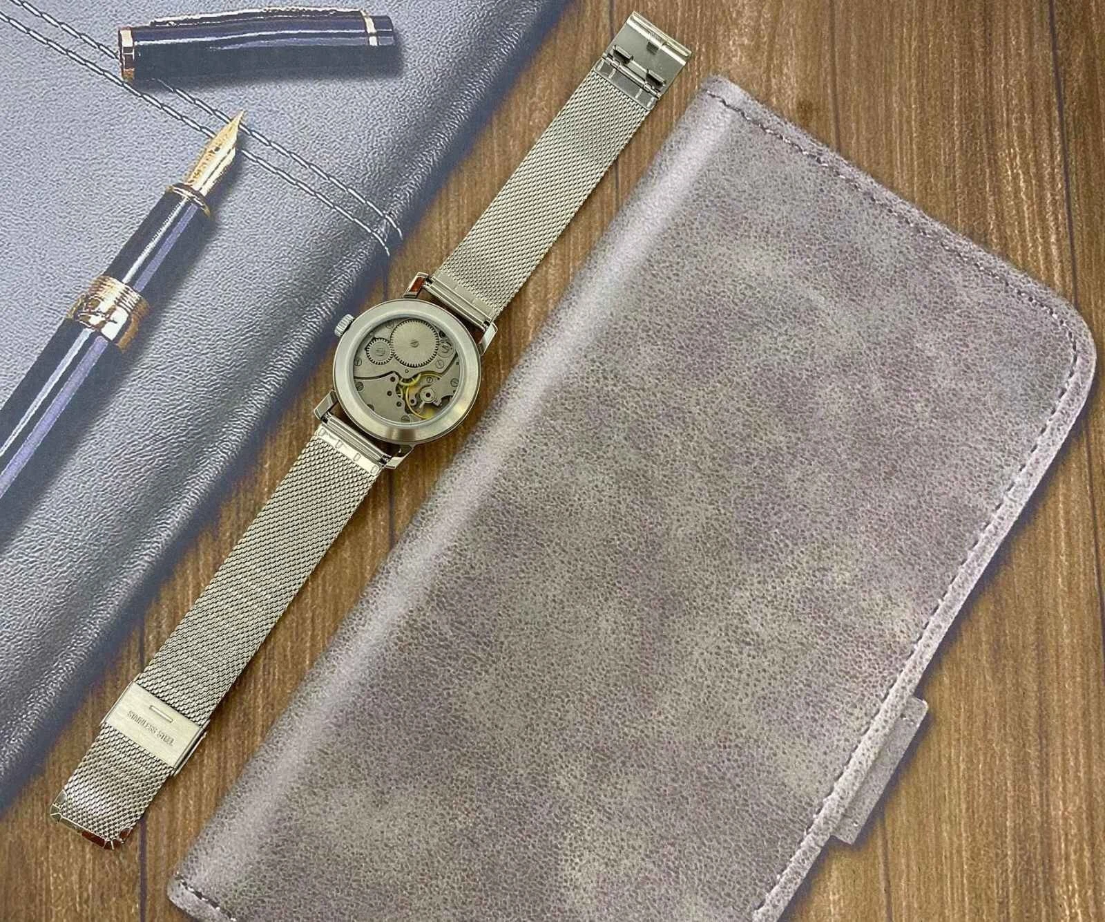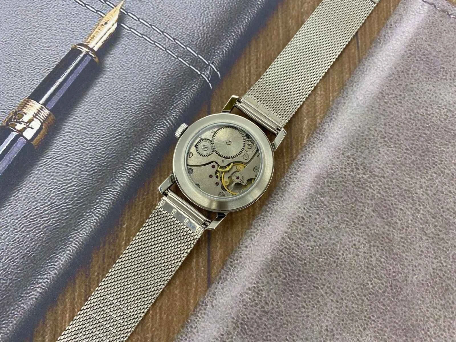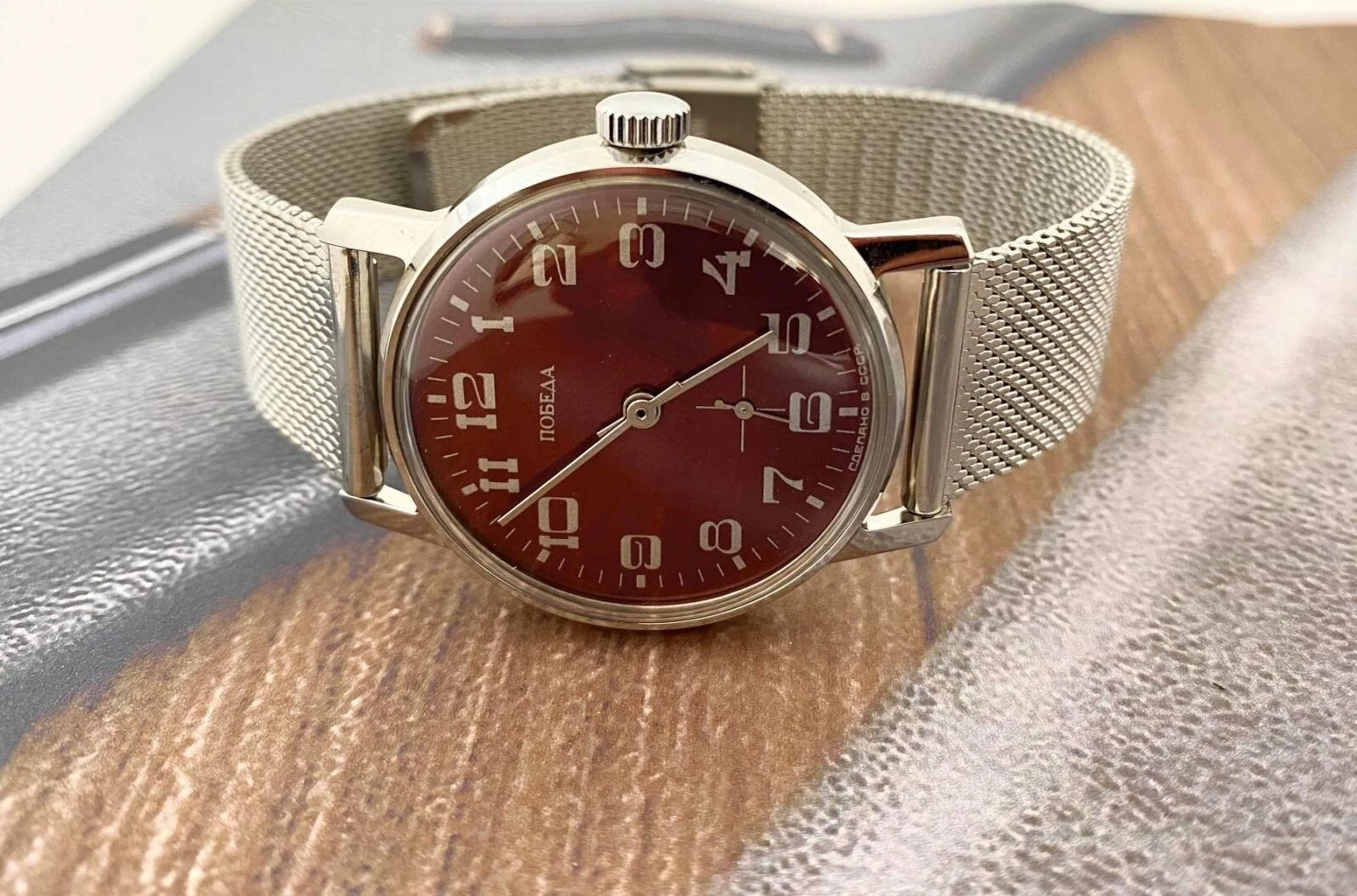 pobeda Watch Mechanical Classic Red Dial Men's Soviet Russian Strap Silver, 35 m