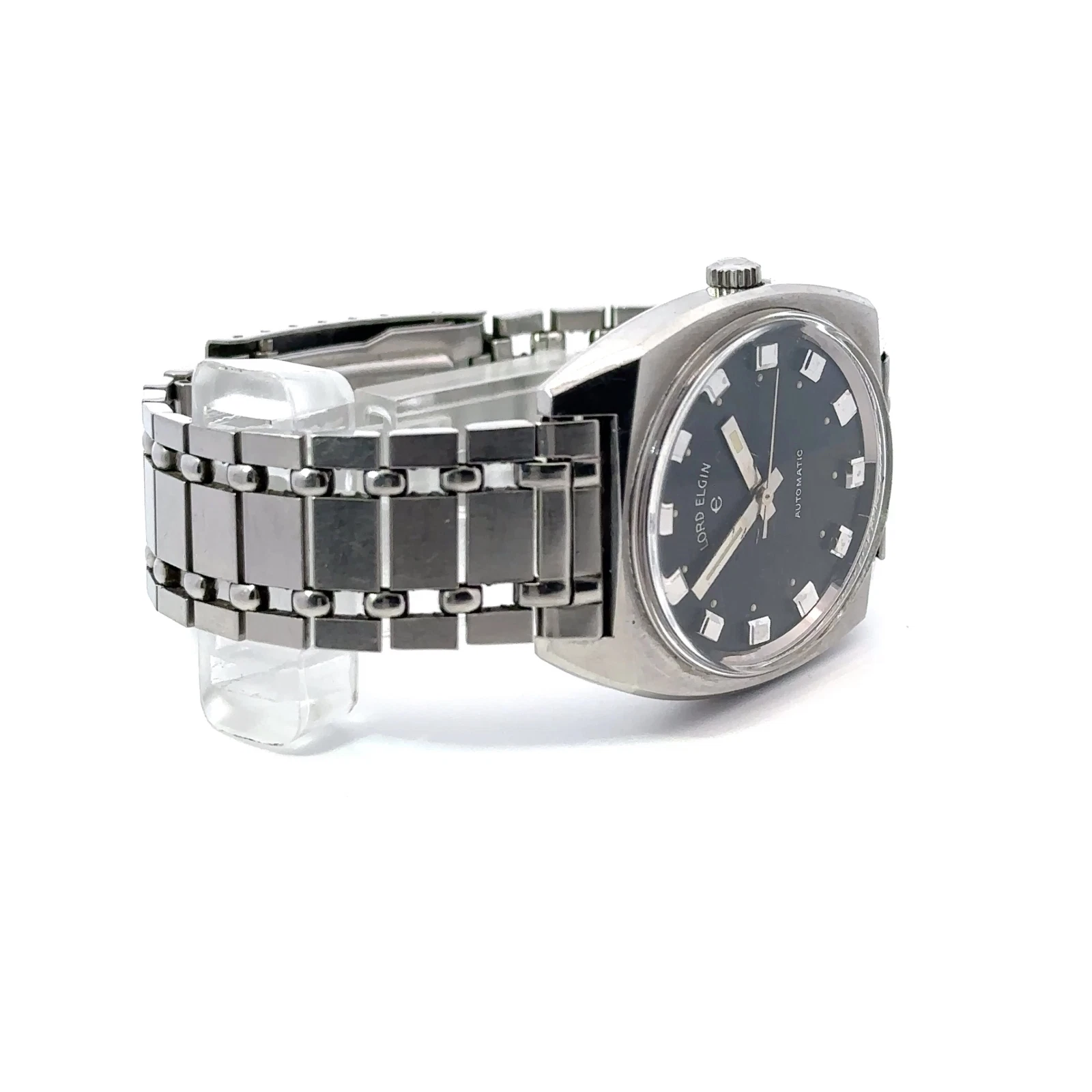 Lord Elgin Watch Stainless Steel Case & Band Black Dial Automatic Mens