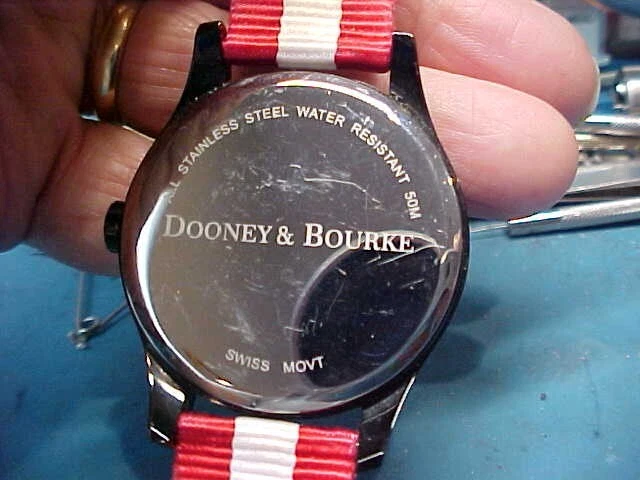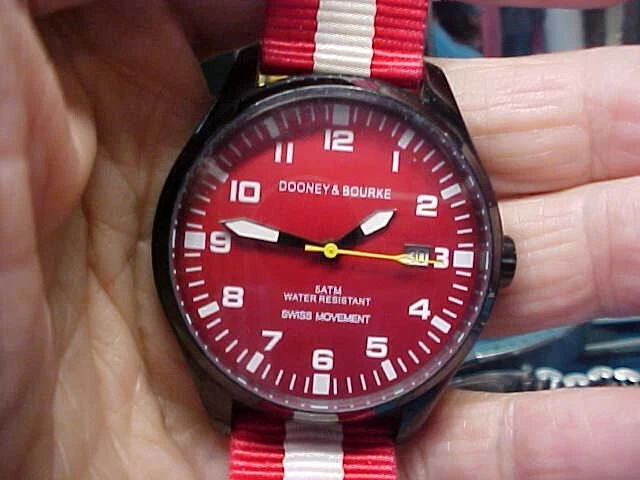 NICE LADIES DOONEY AND BOURKE WATCH 41MM RED DIAL SWISS