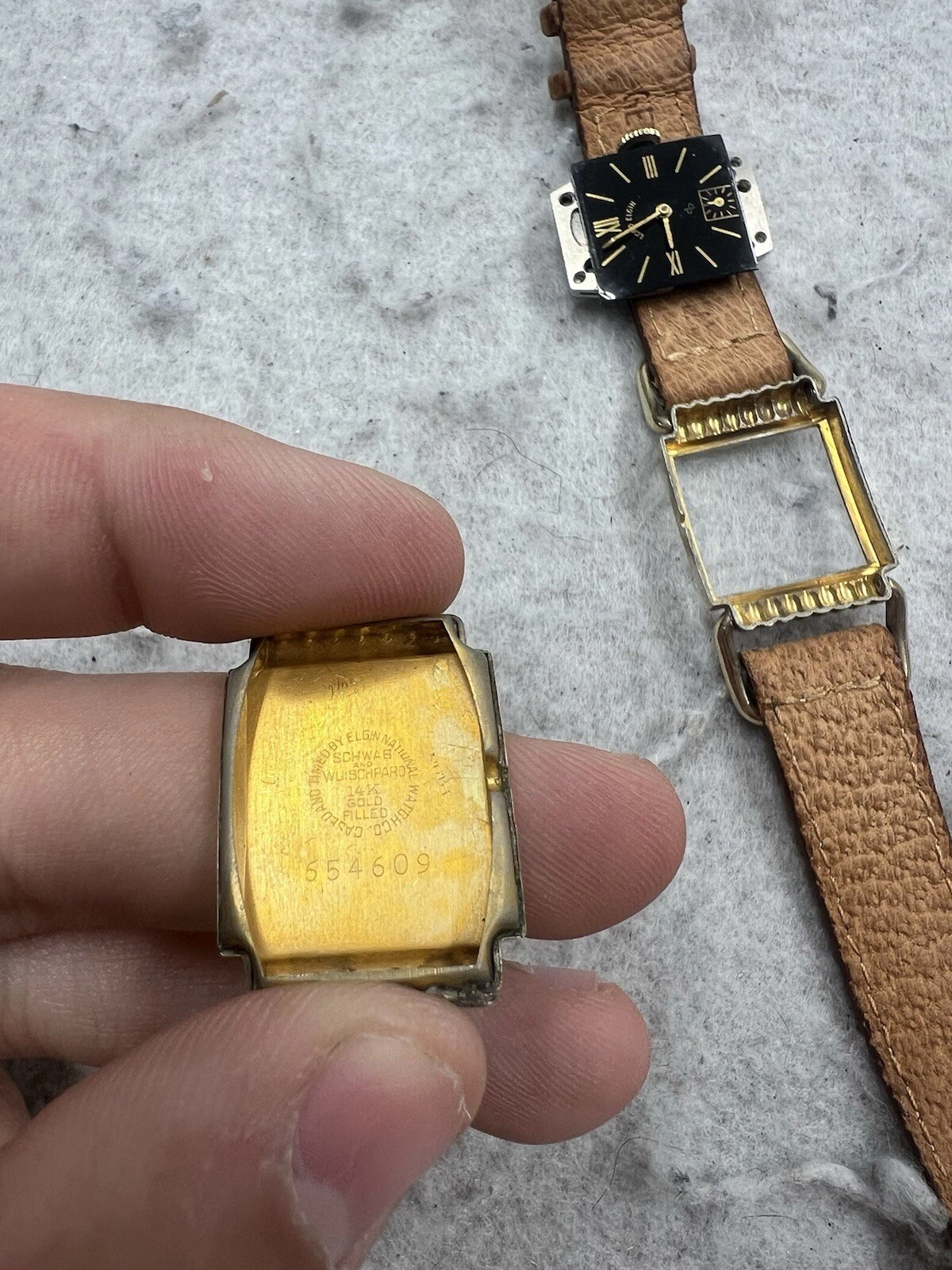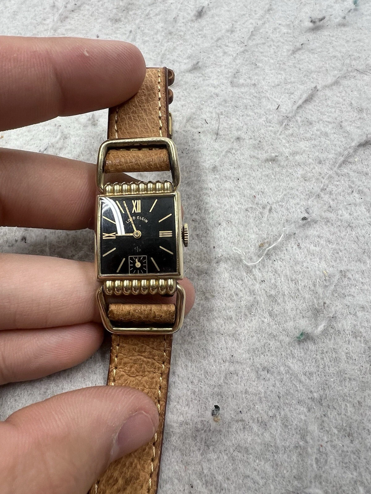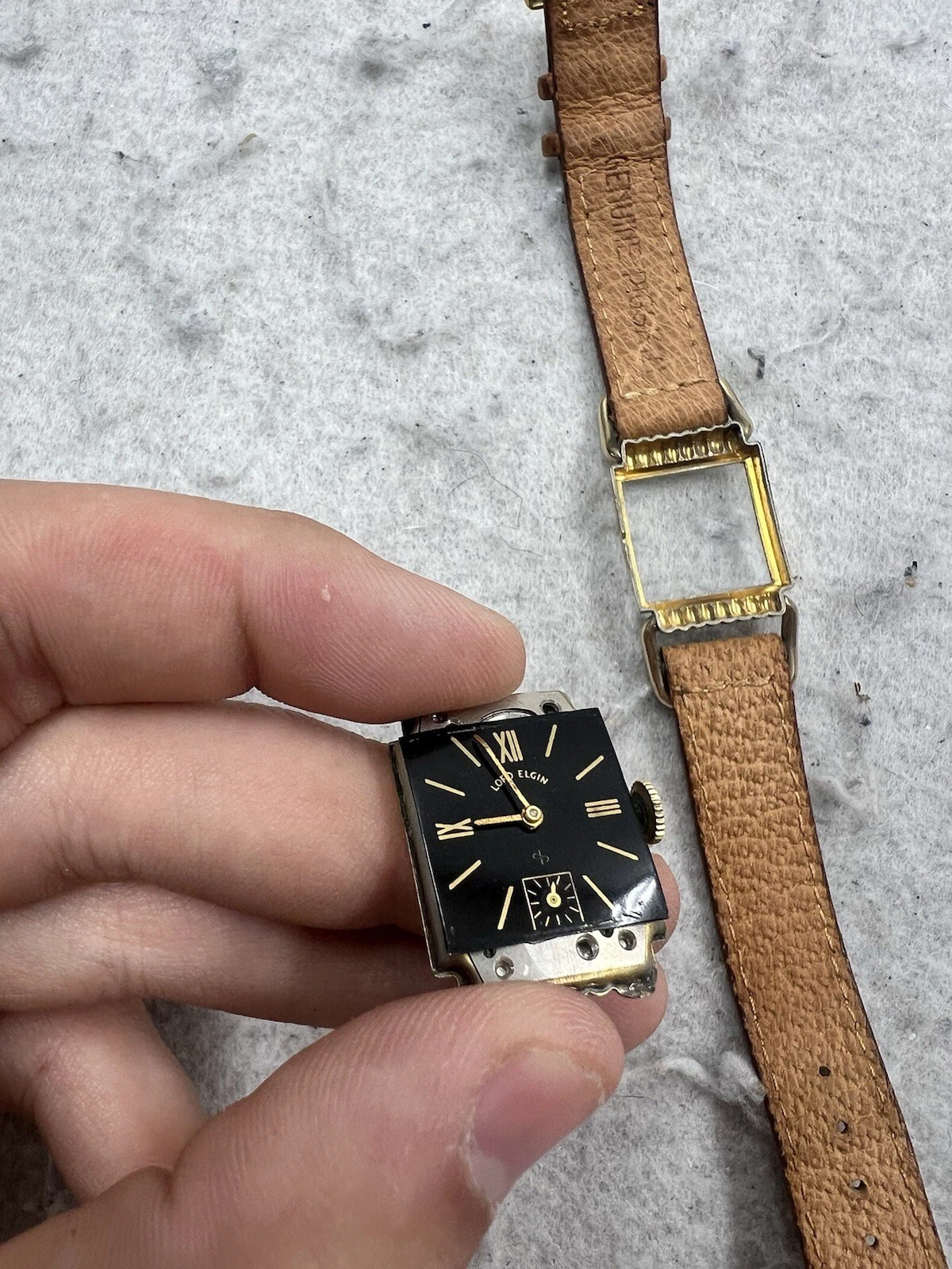 Lord Elgin Driver Watch 559 21J Black Dial 14K GF FANCY LUGS c1944 PARTS /REPAIR