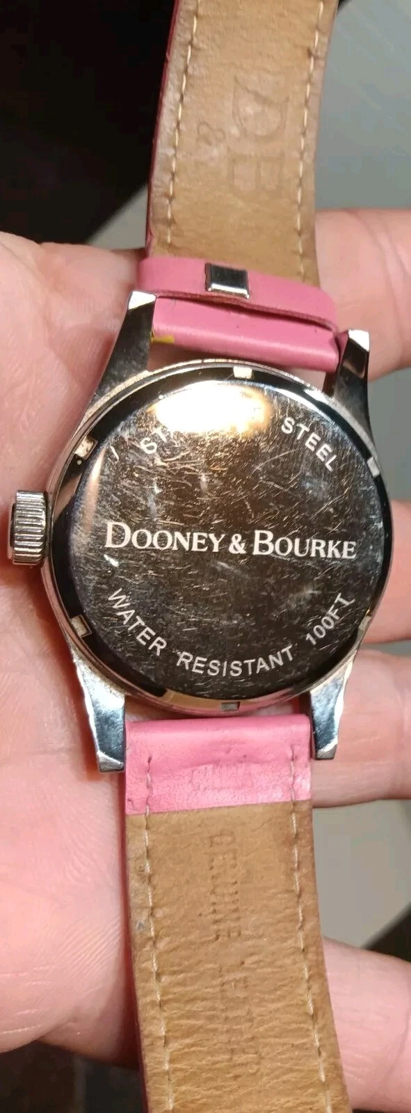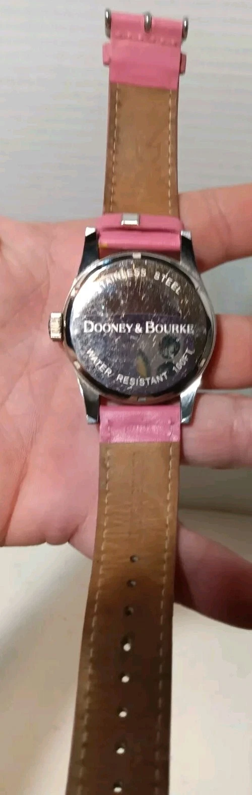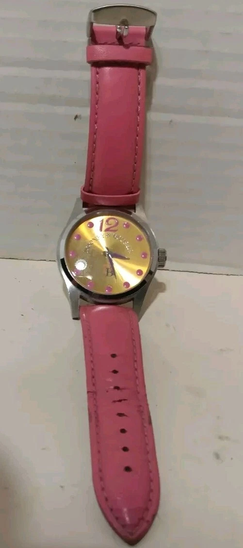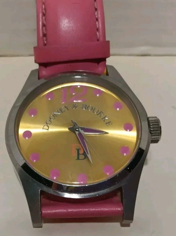 Dooney and Bourke Wristwatch Hot Pink on Gold Watch Leather Band Needs Batteries