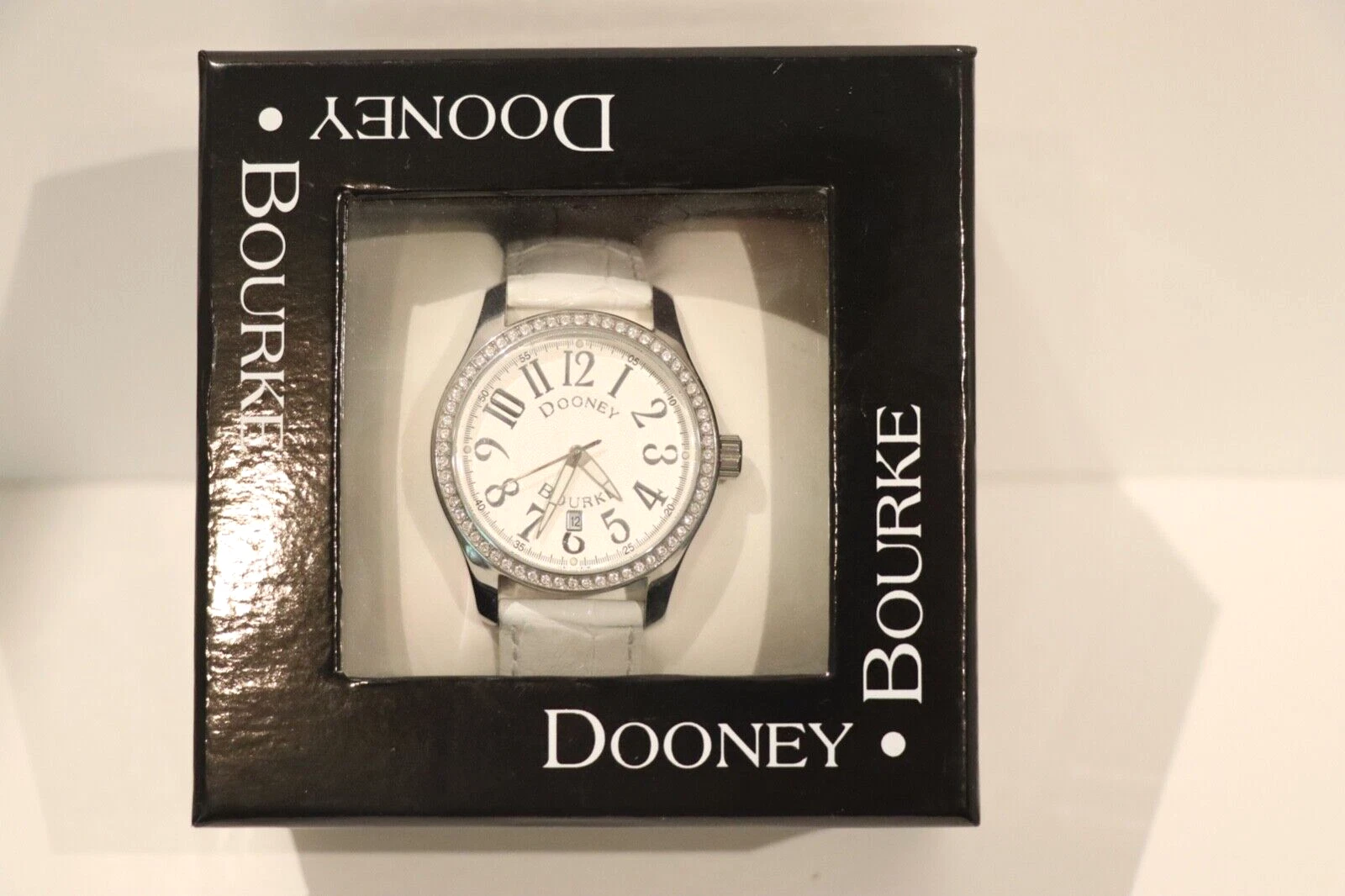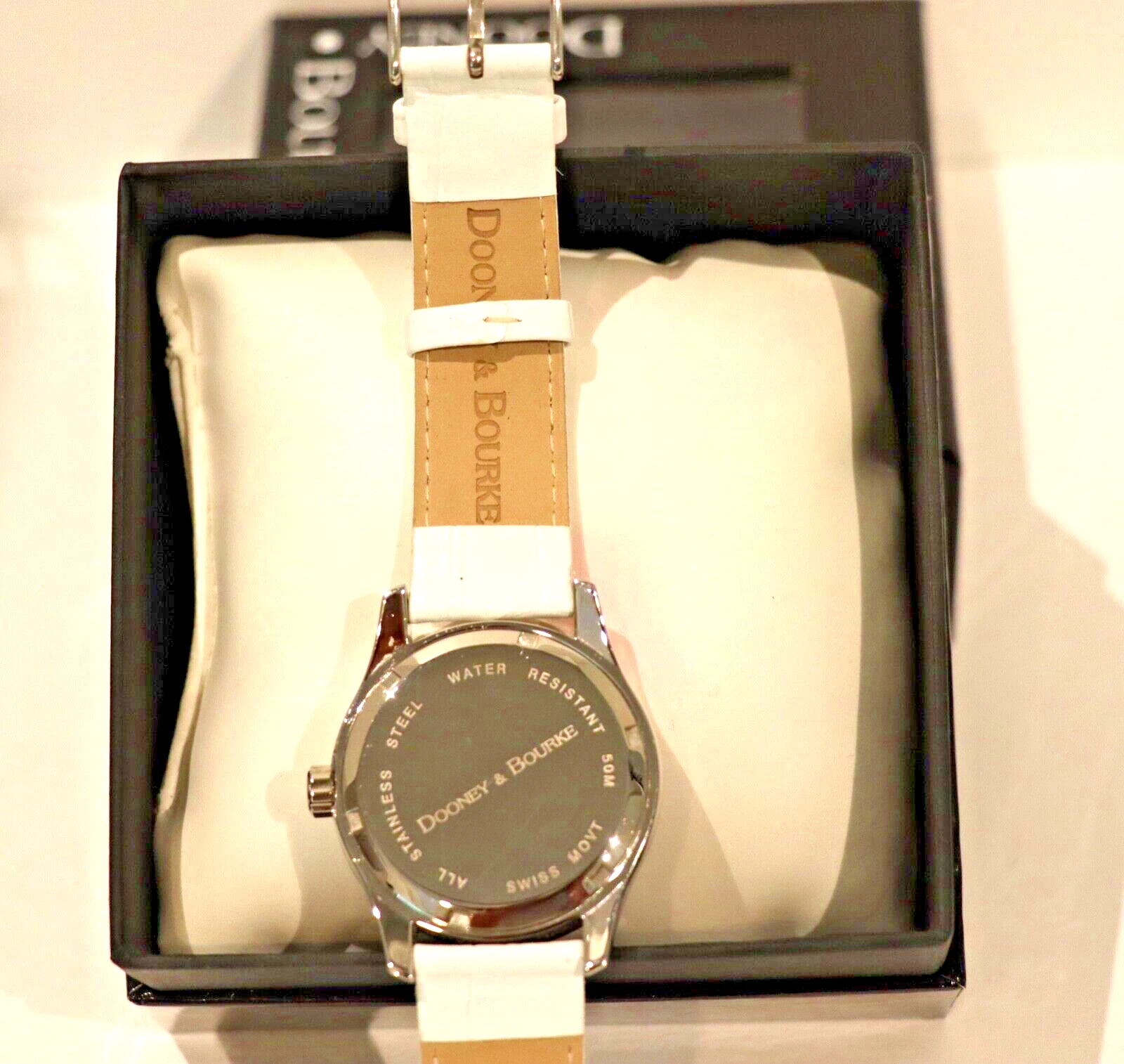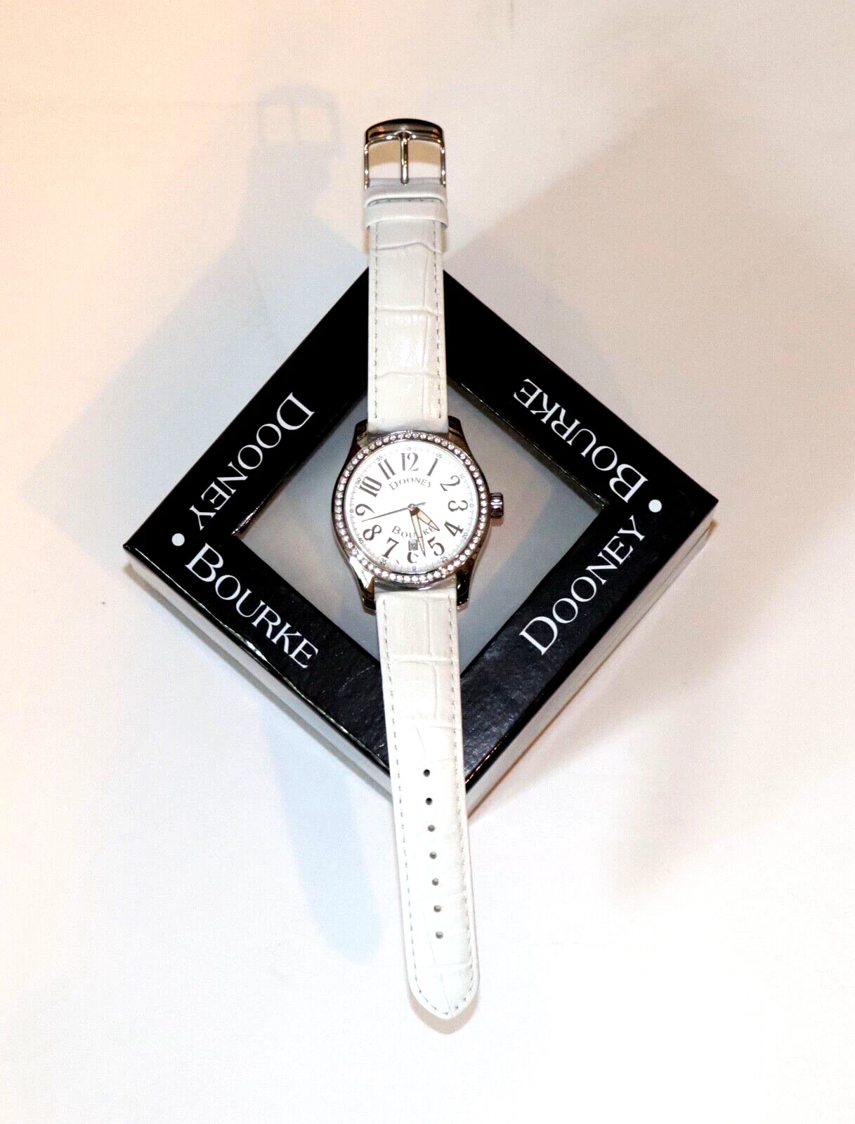 Dooney & Bourke Watch White Women’s Swiss Crystal Rhinestone Bezel Leather Band