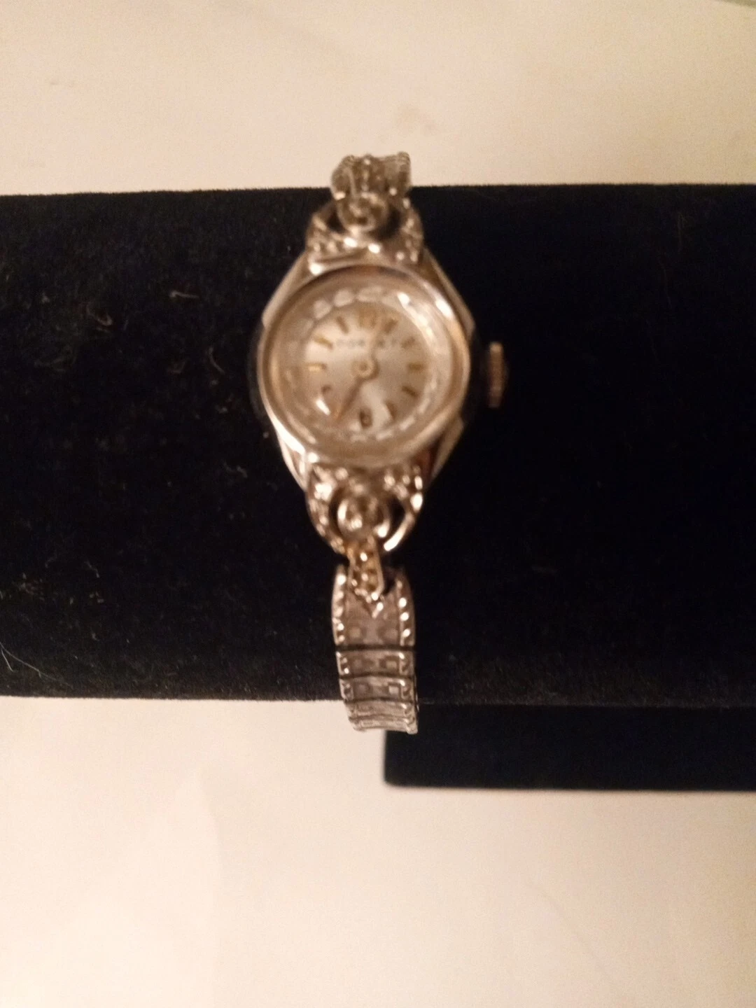 Vtg. Ladies Diamond Chip Dorset 17 jewel Wristwatch Med-Sm Stretch Wrist Band