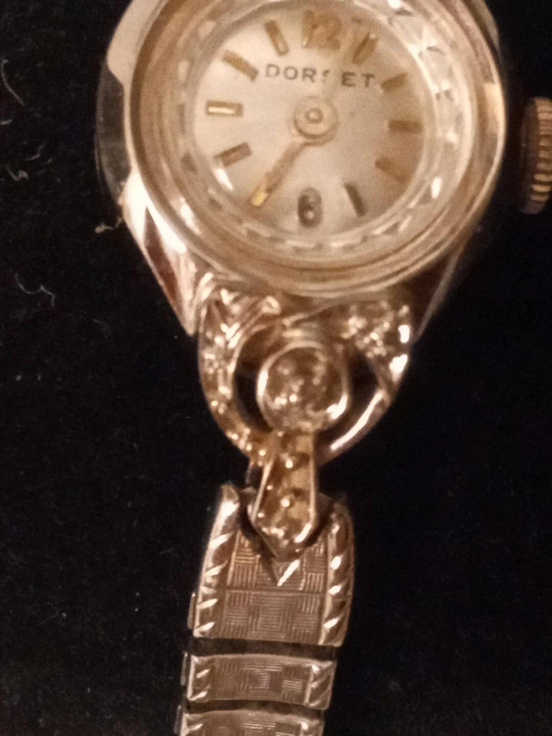 Vtg. Ladies Diamond Chip Dorset 17 jewel Wristwatch   Med-Sm Stretch Wrist Band