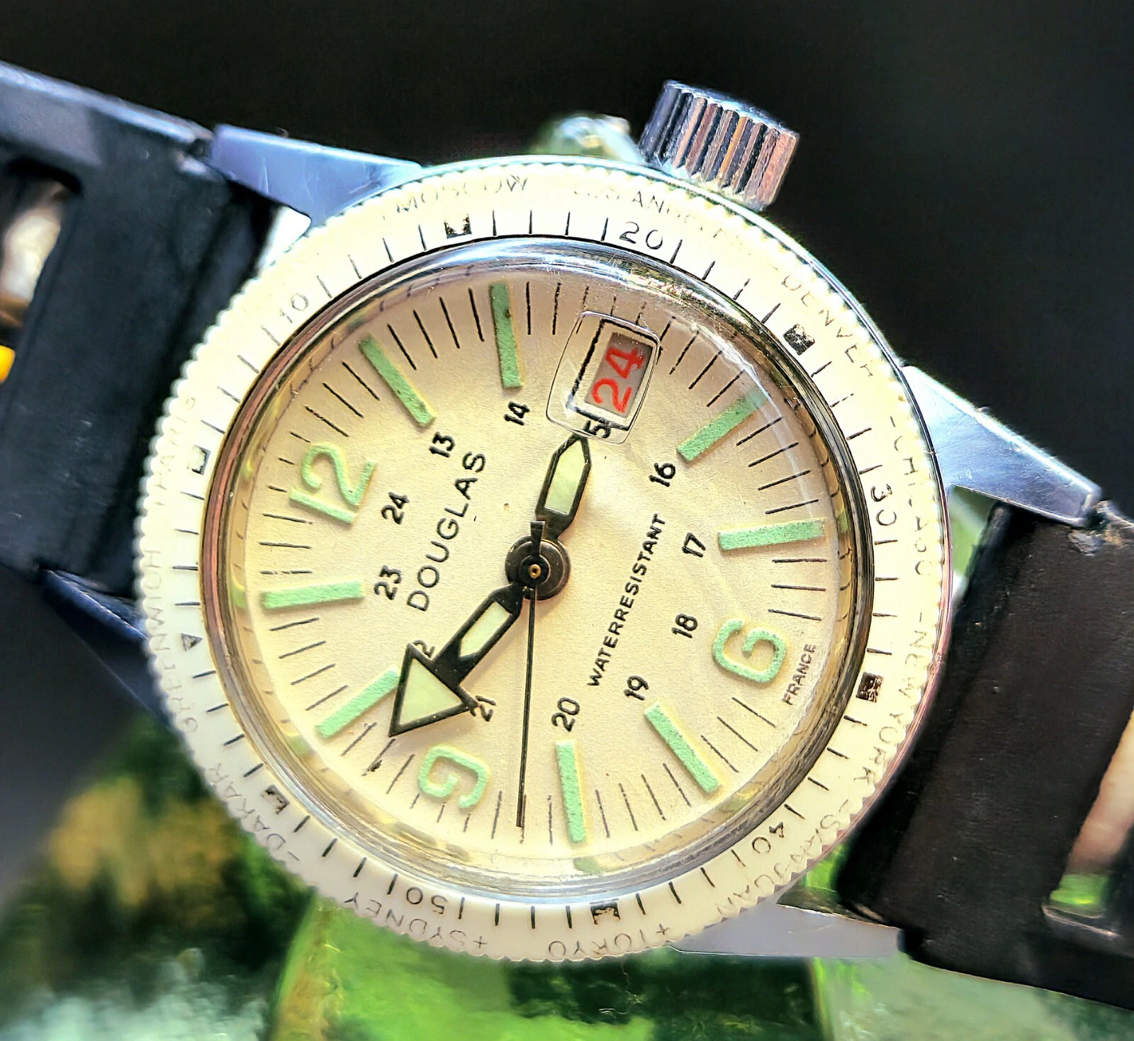Vintage DOUGLAS Swiss 1970's Women's Divers Watch W/ Date - Just Serviced !