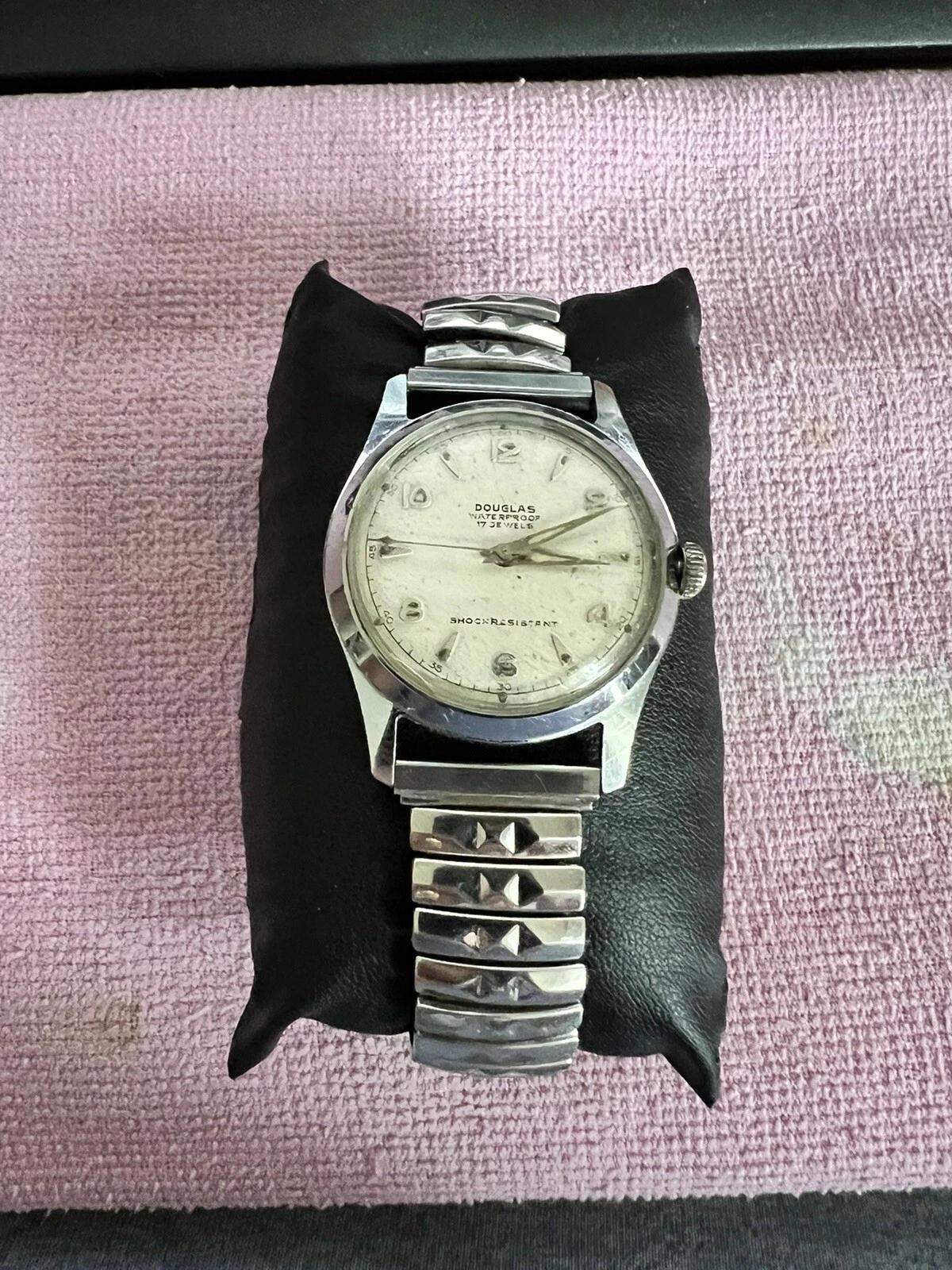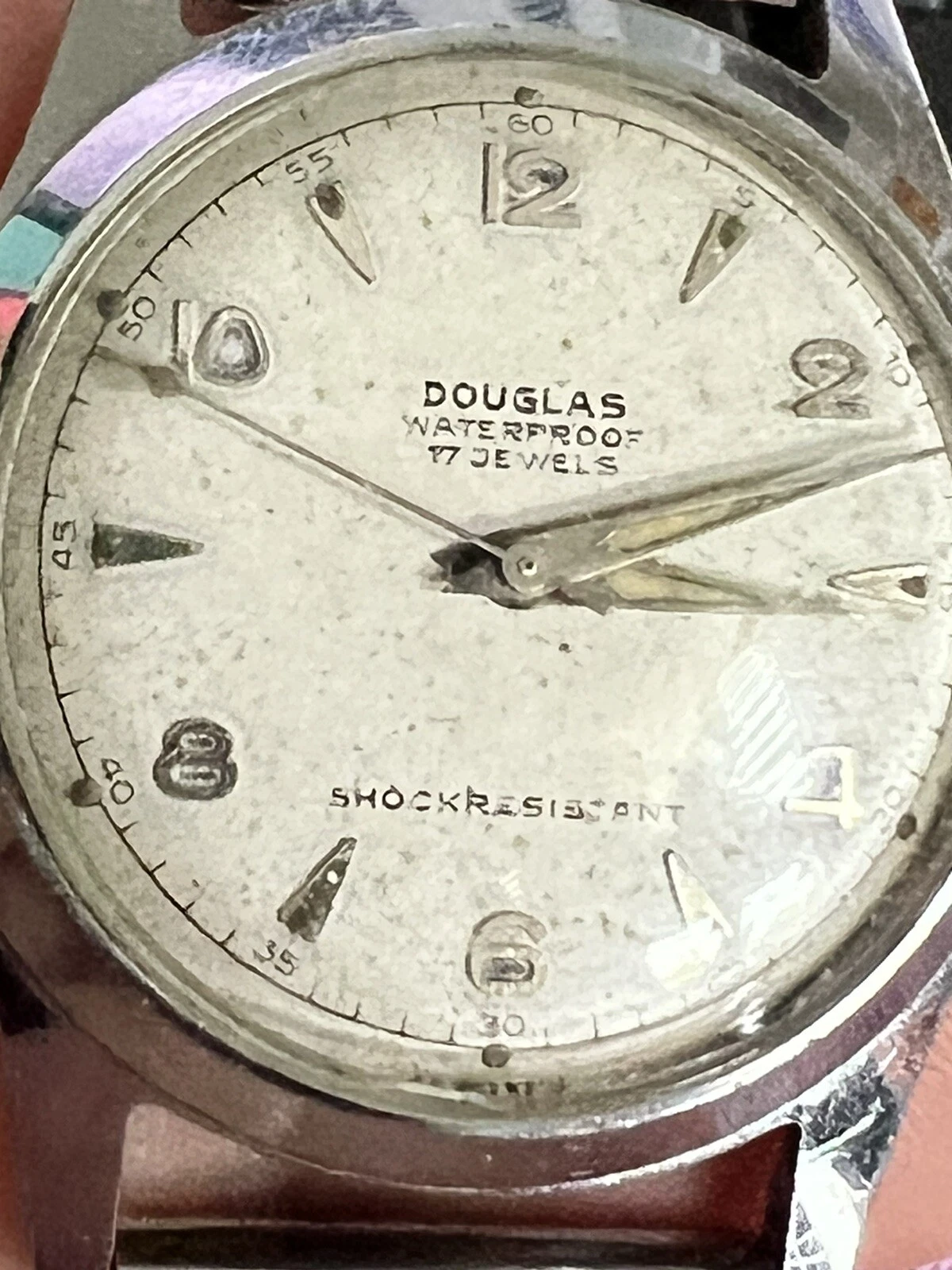 Douglas Water Proof 17 Jewels Shock Resistant Men’s Watch, Wind Up Works