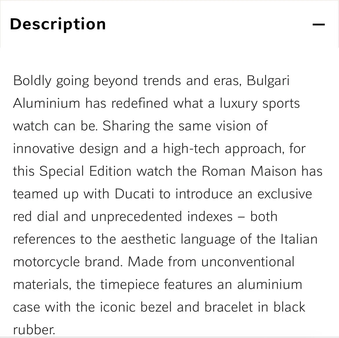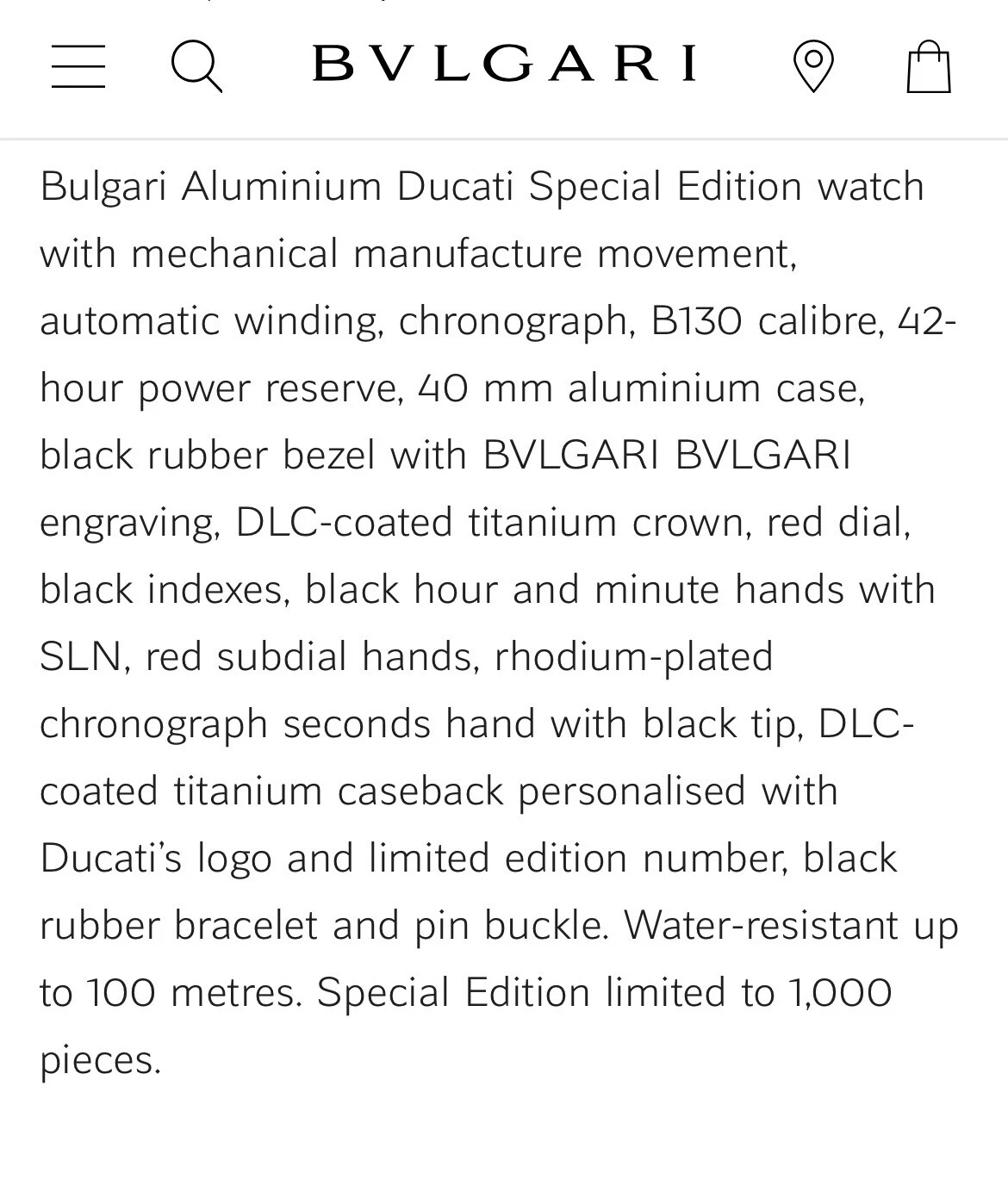 Bulgari Aluminium Ducati Special Limited Edition Watch (Brand New Unworn)