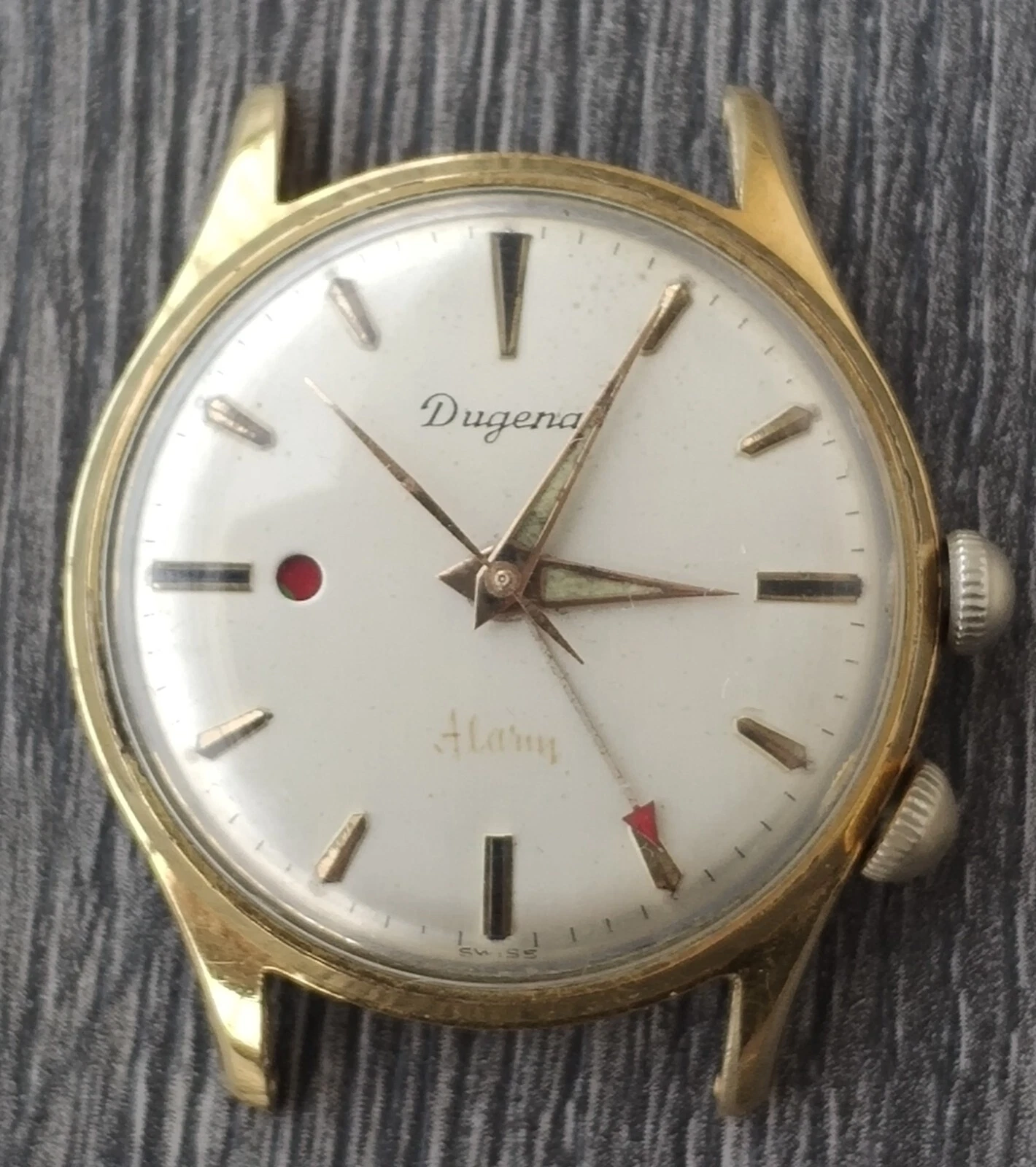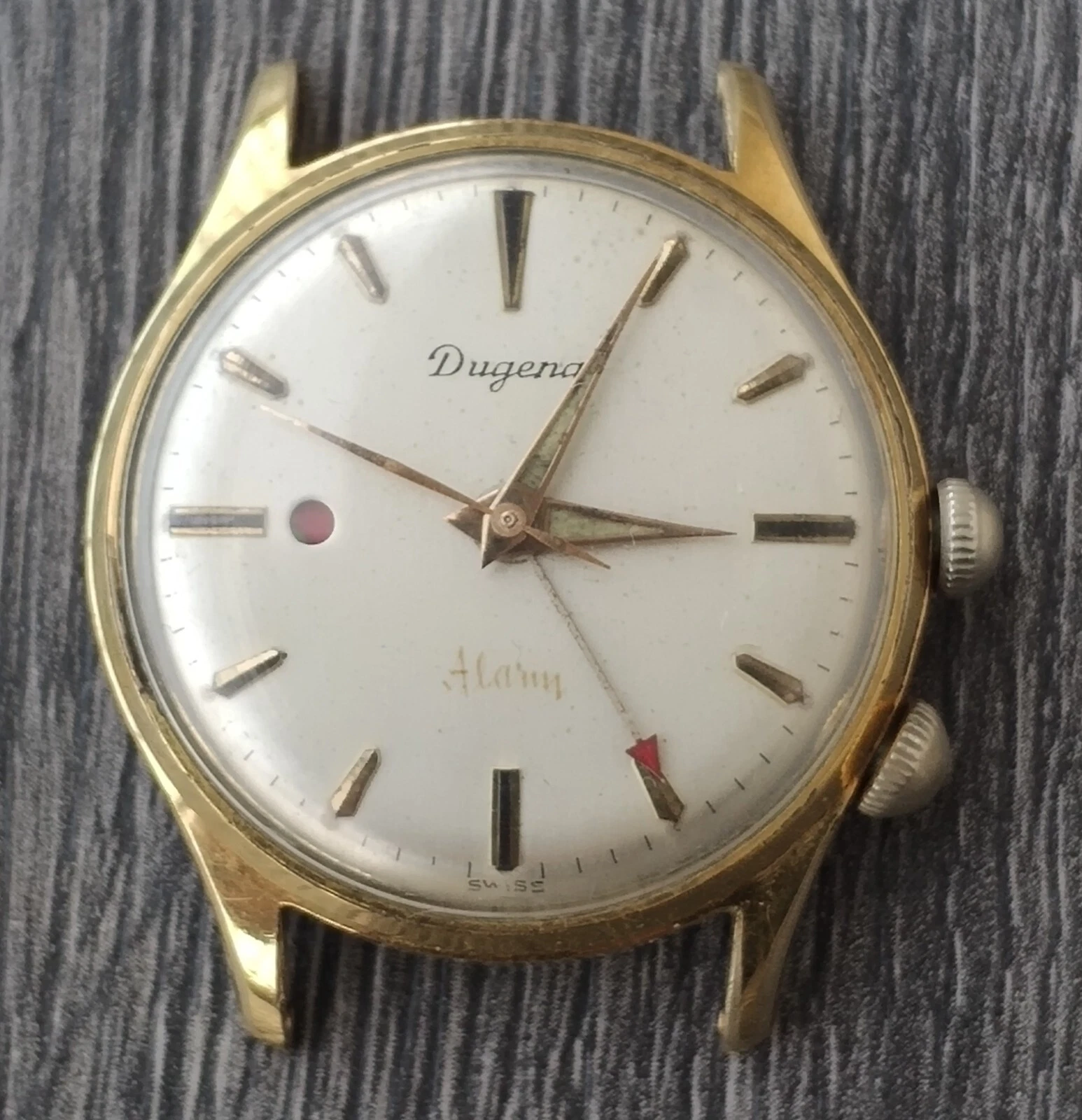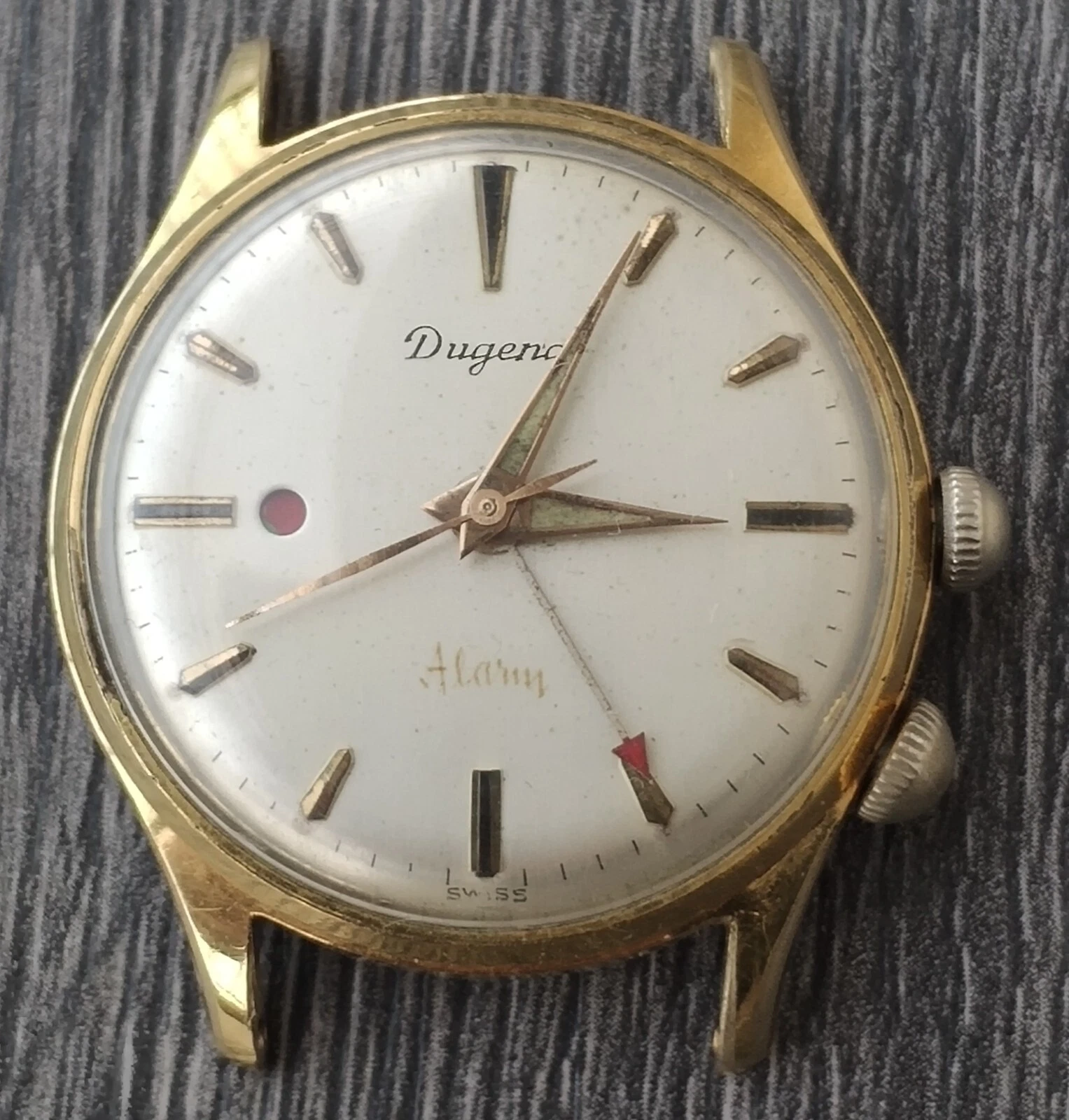Vintage men's Dugena Alarm Cricket hand-winding watch red/green dot Venus 230