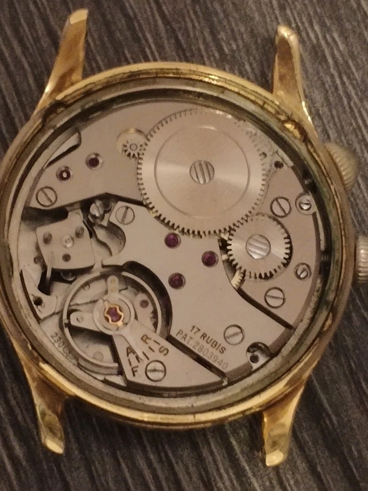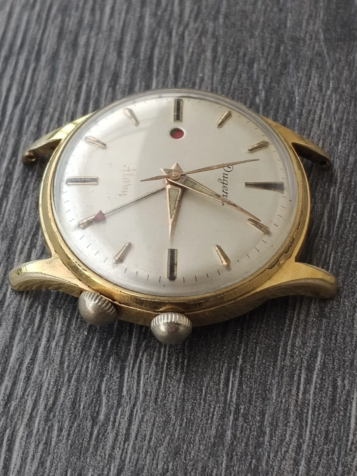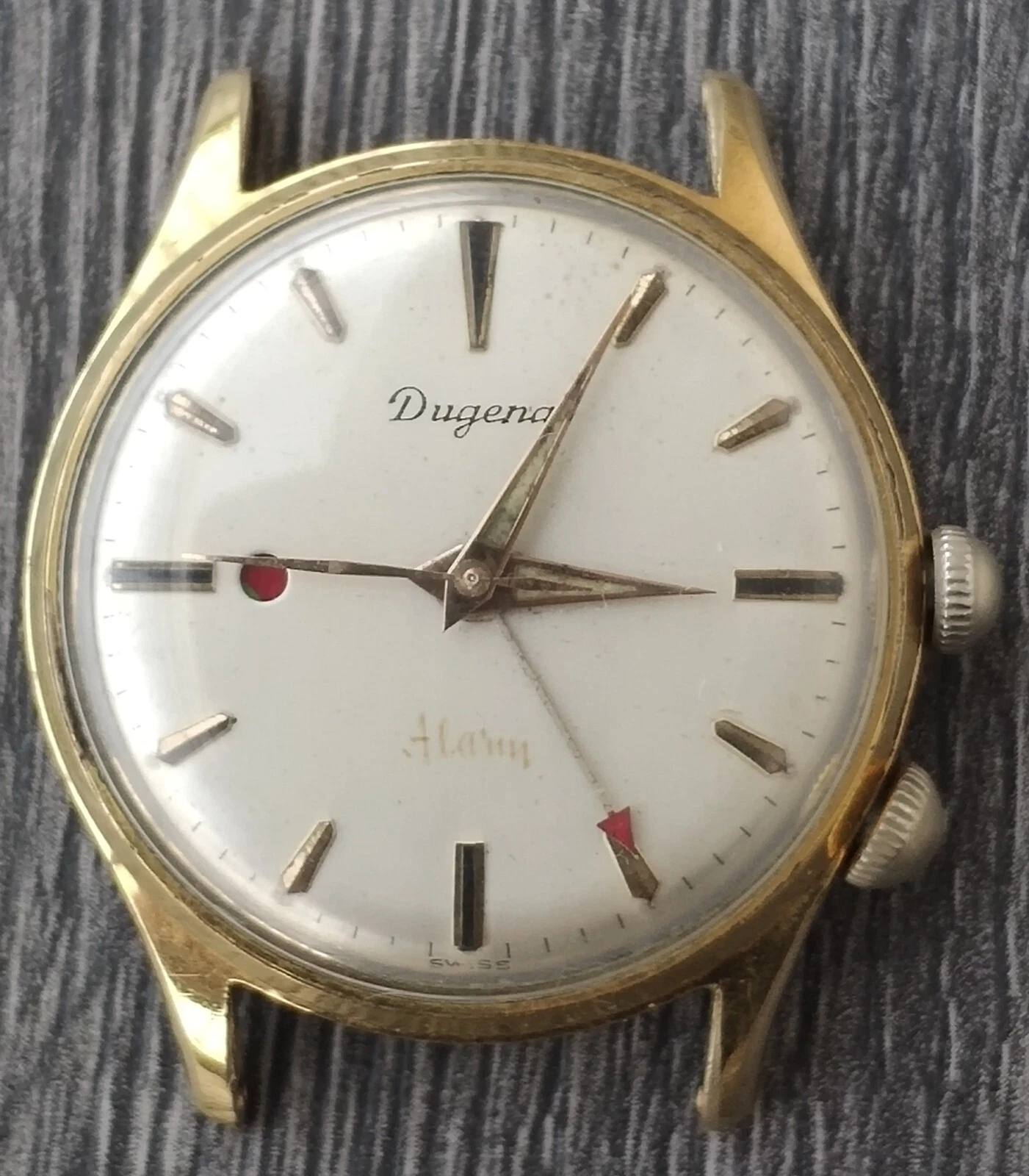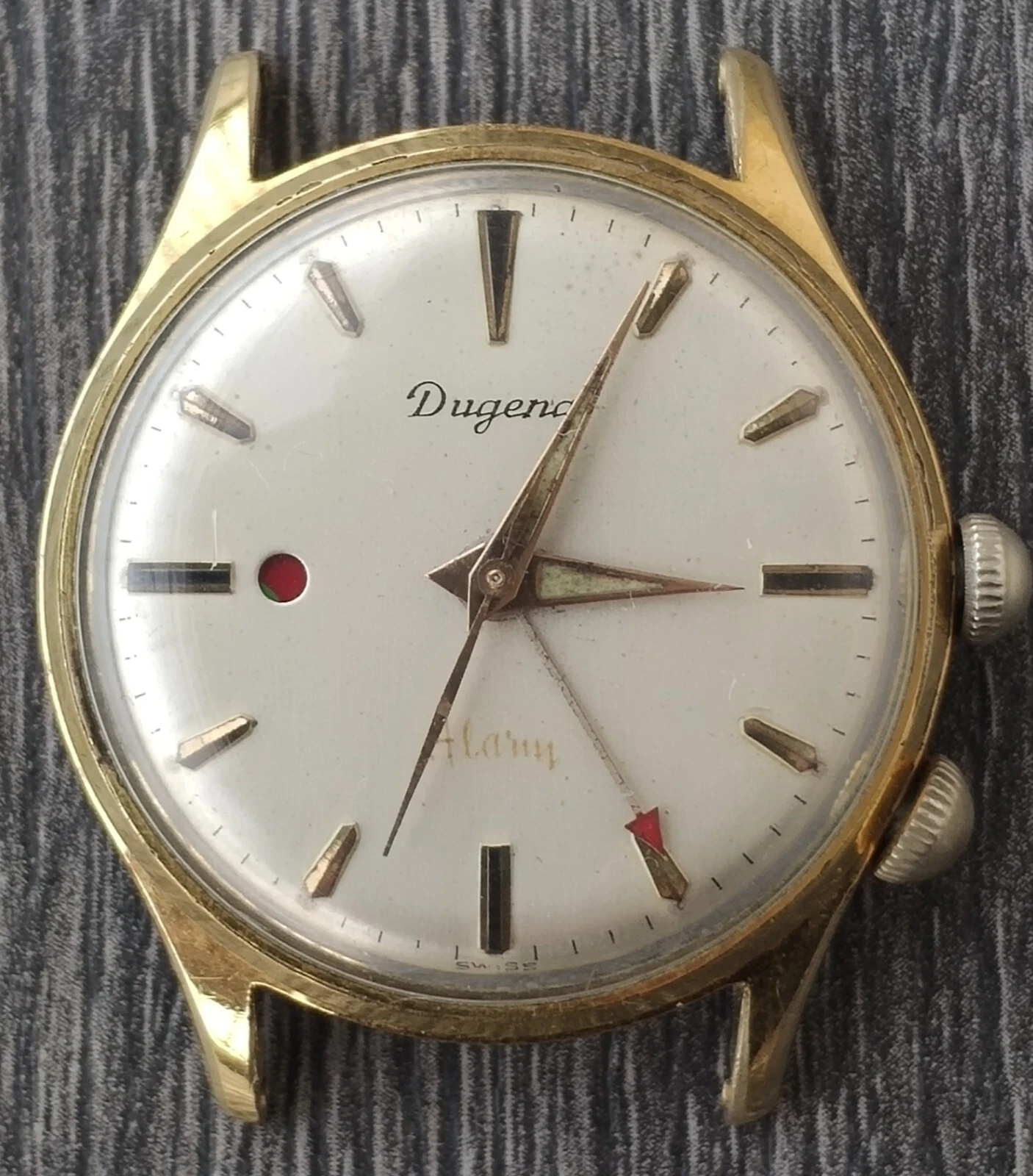 Vintage men's Dugena Alarm Cricket hand-winding watch red/green dot Venus 230