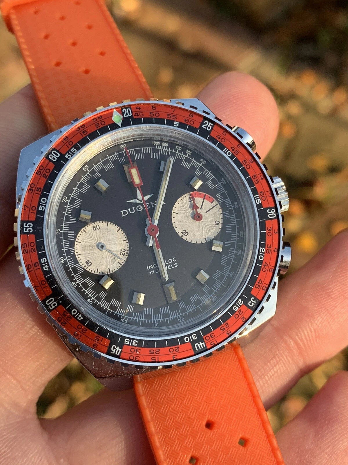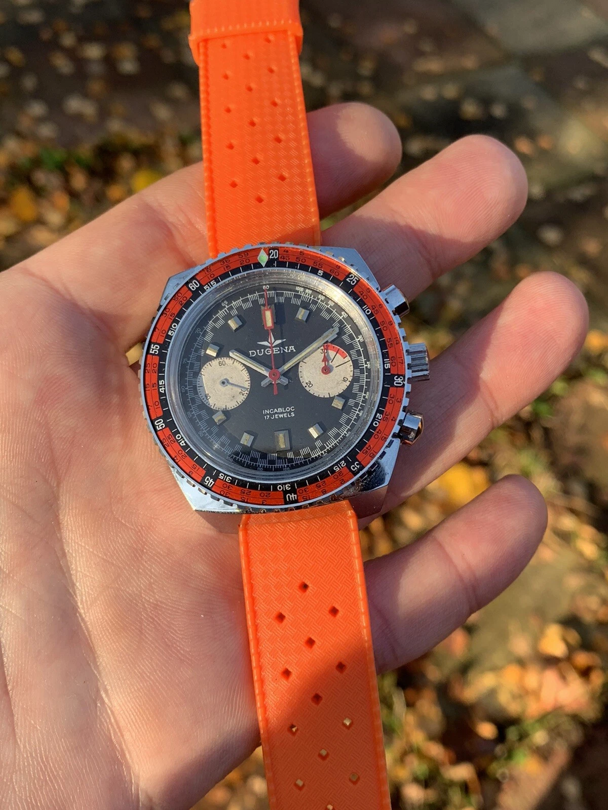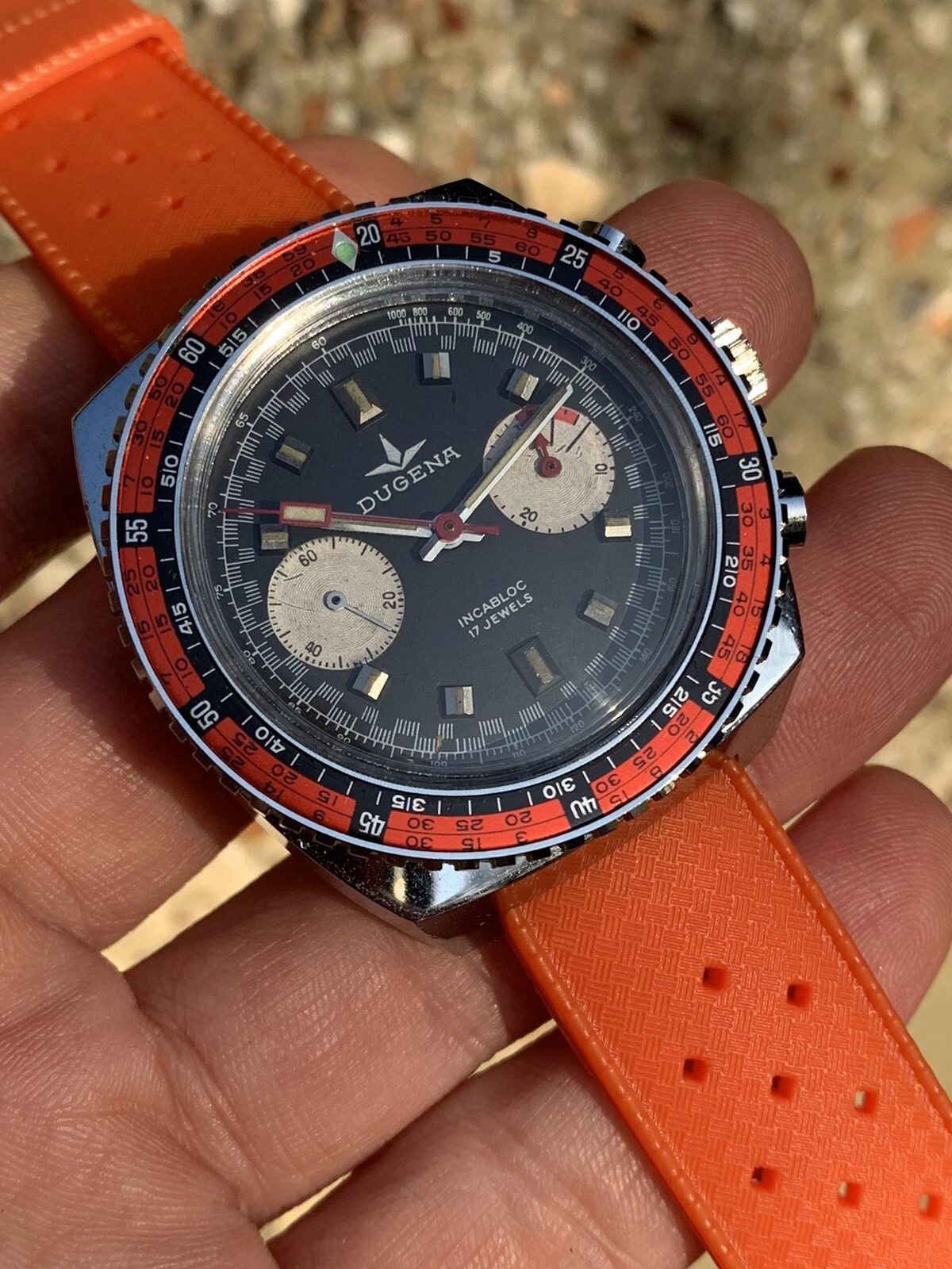 SALE! Vintage Dugena Chronograph Mens Watch Hand-w. Swiss Valjoux 7733 41,3mm