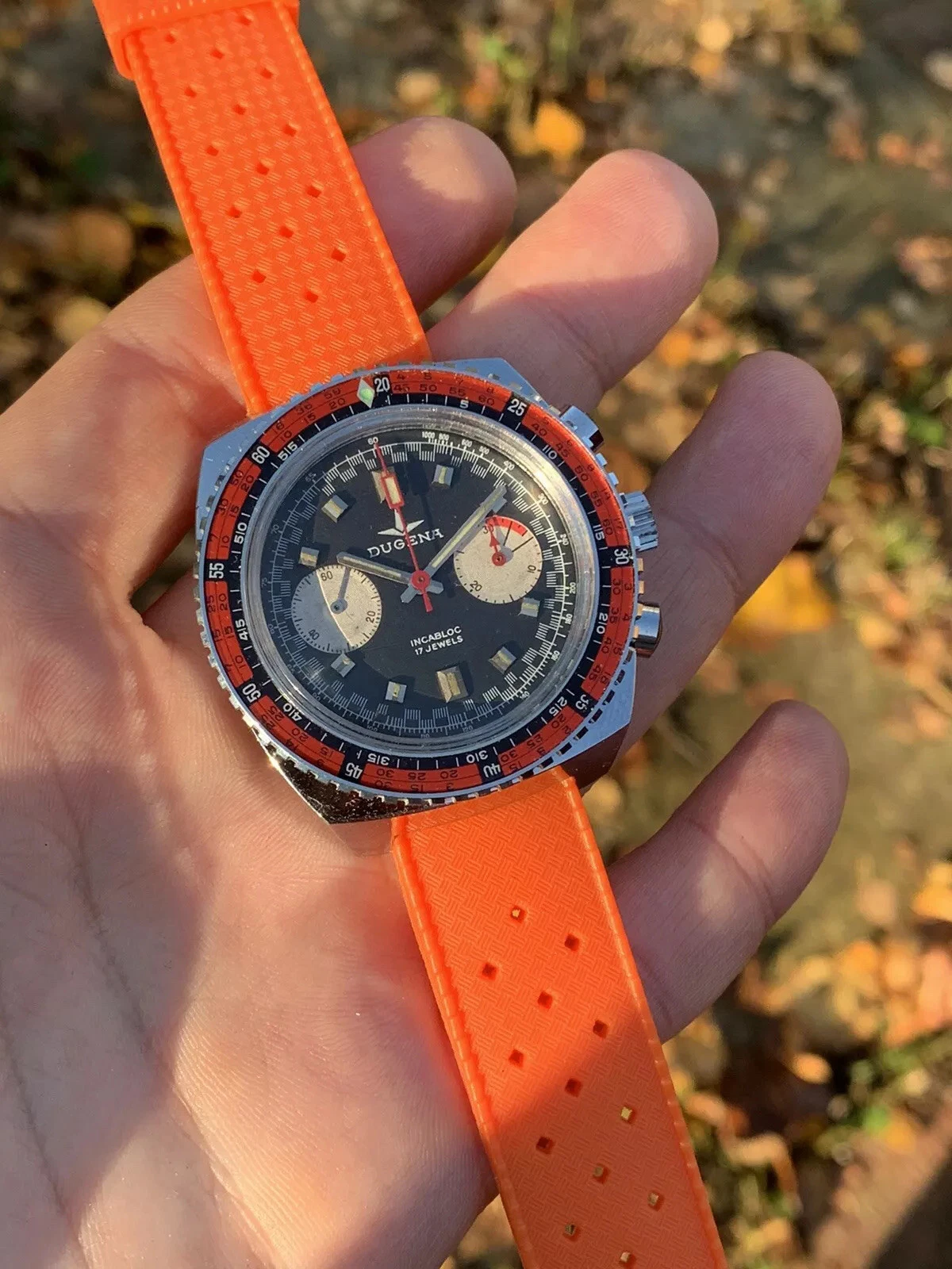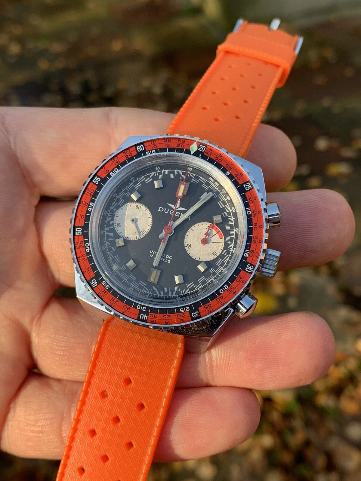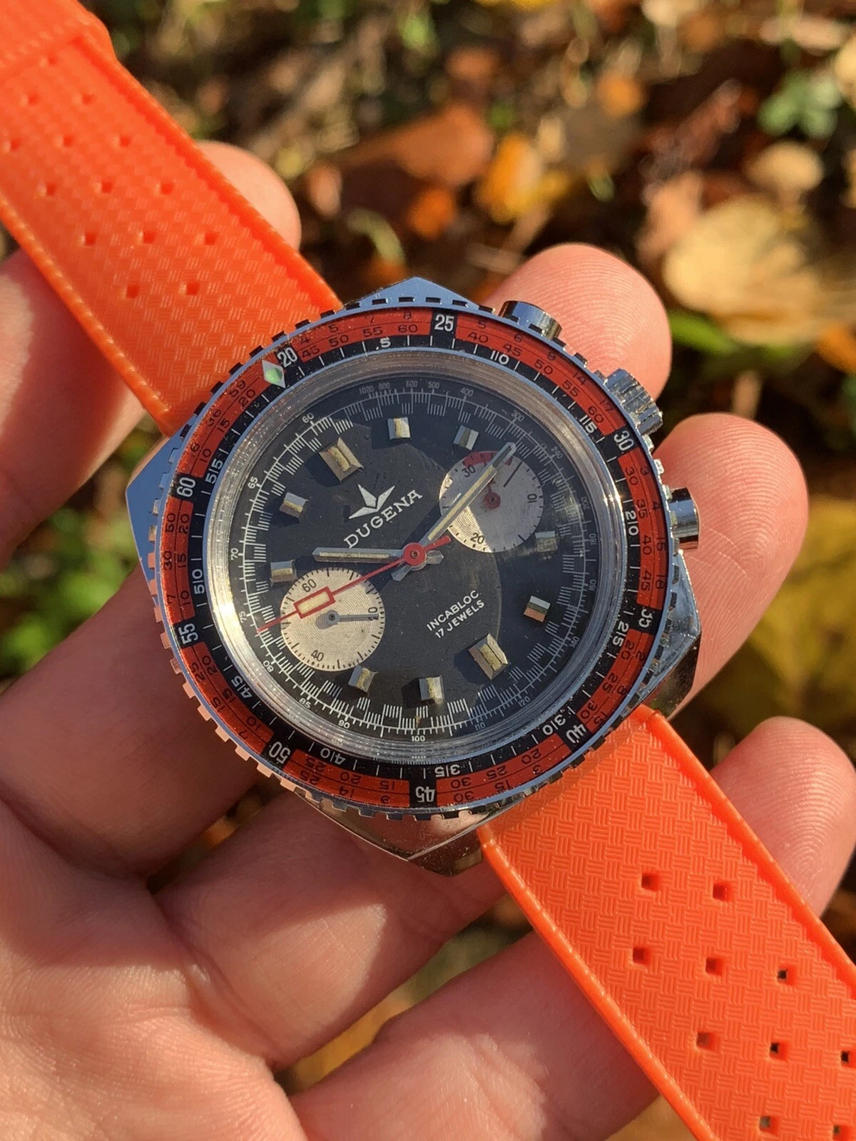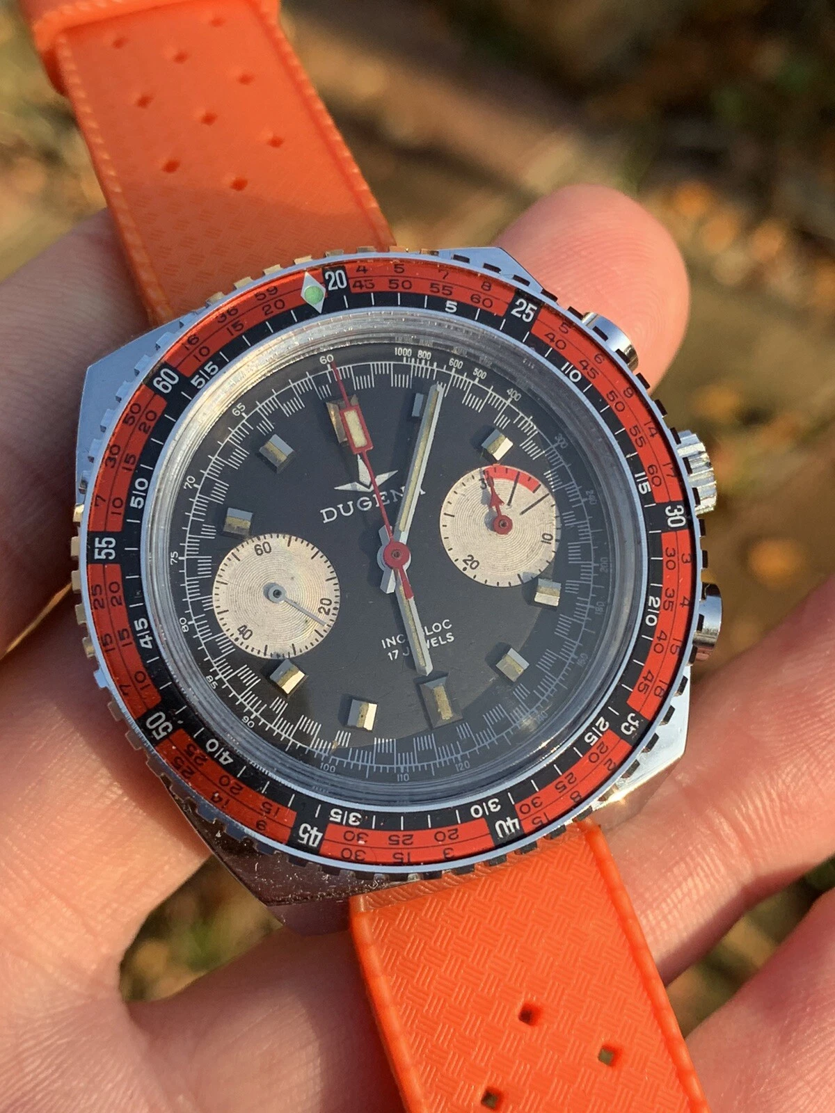 SALE! Vintage Dugena Chronograph Mens Watch Hand-w. Swiss Valjoux 7733 41,3mm