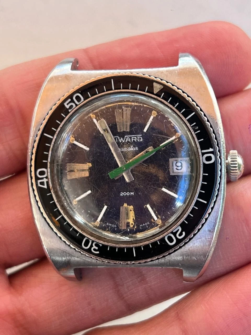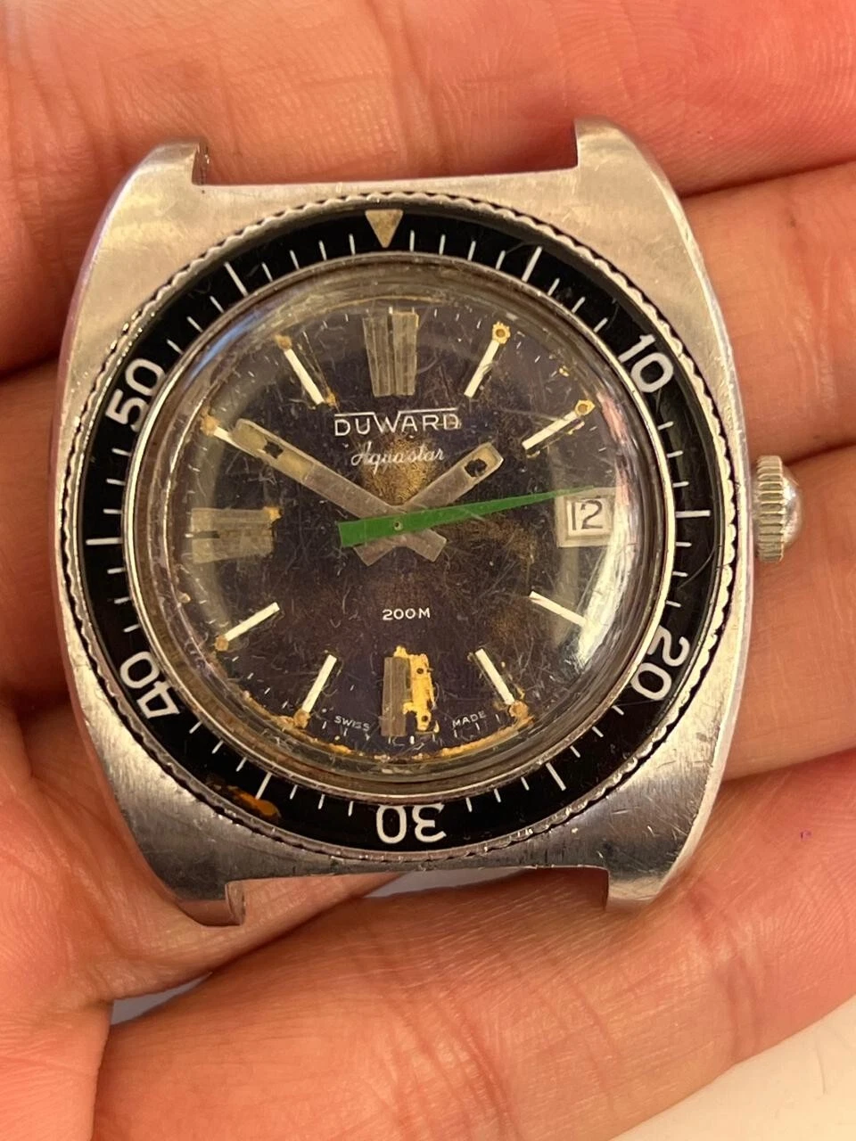 Vintage Diver Watch Duward Aquastar 200M Automatic Men Watch For Parts Or Repair