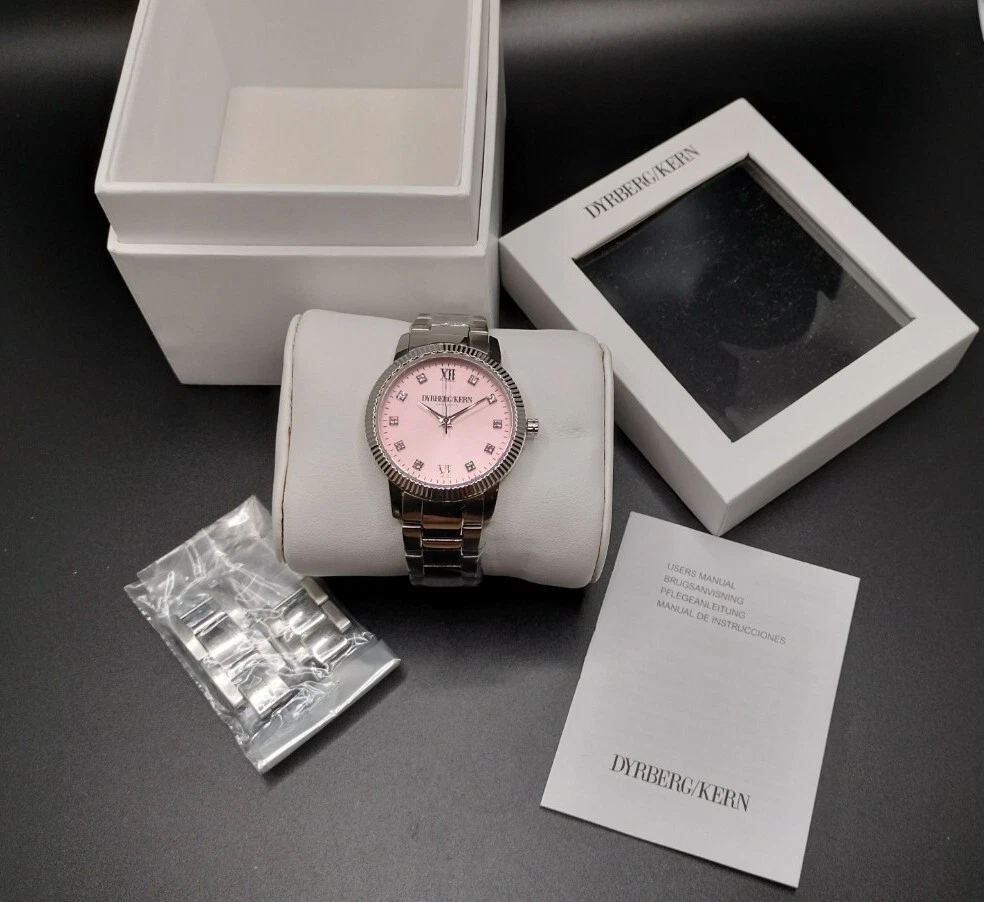 Dyrberg Kern Pink Face Stainless Steel NEW w Box Womens Watch, needs battery