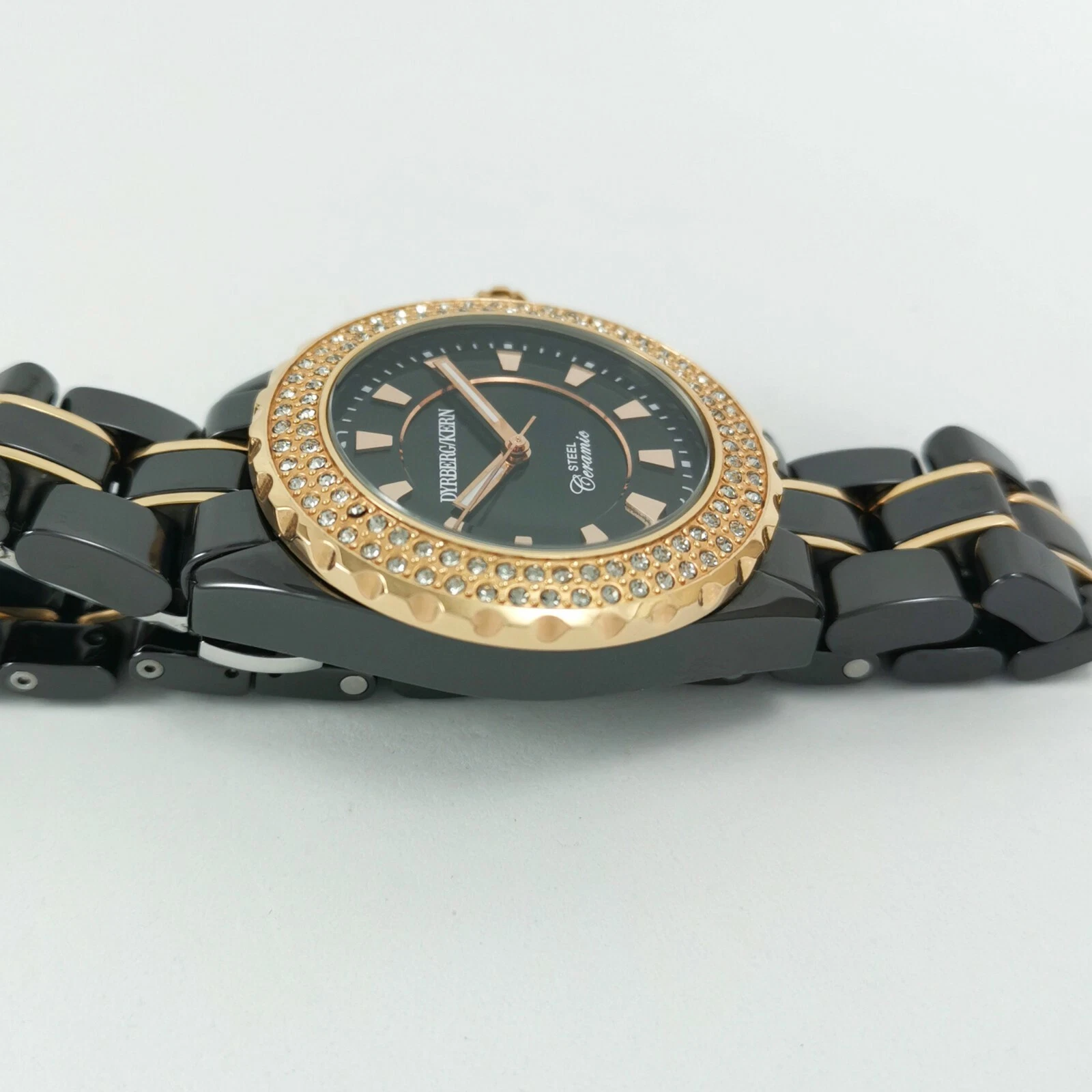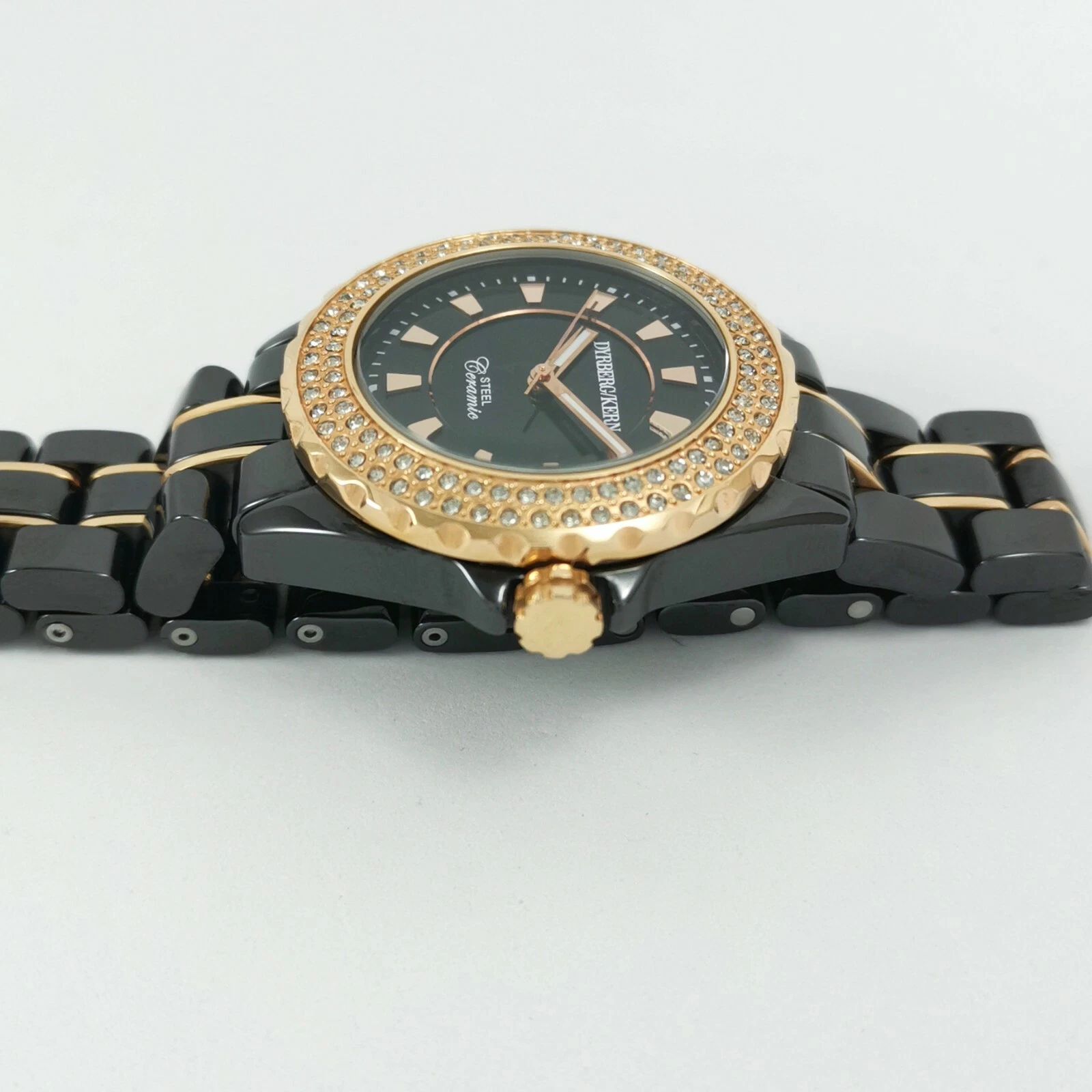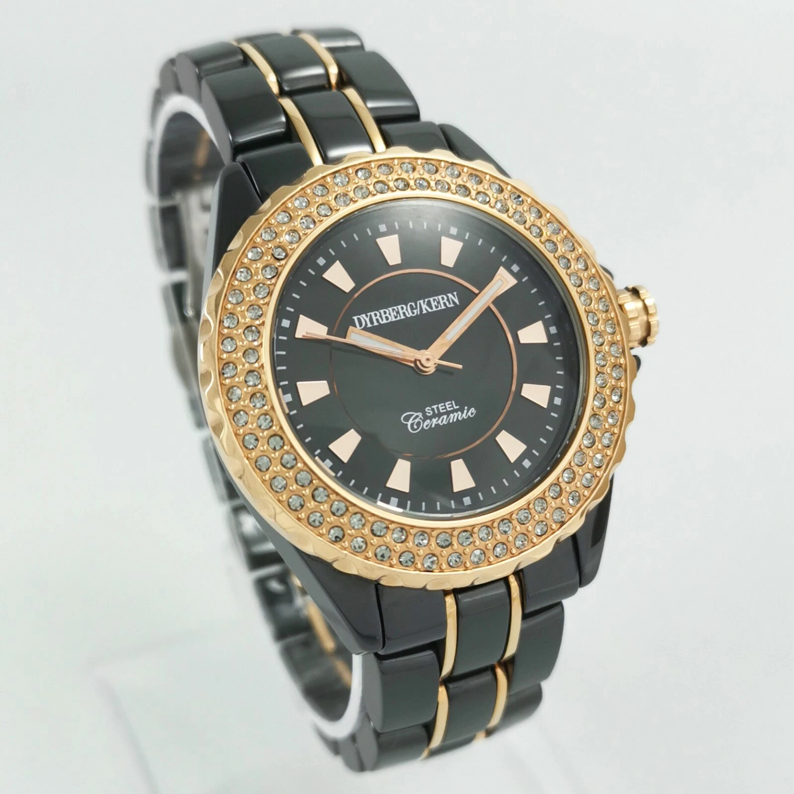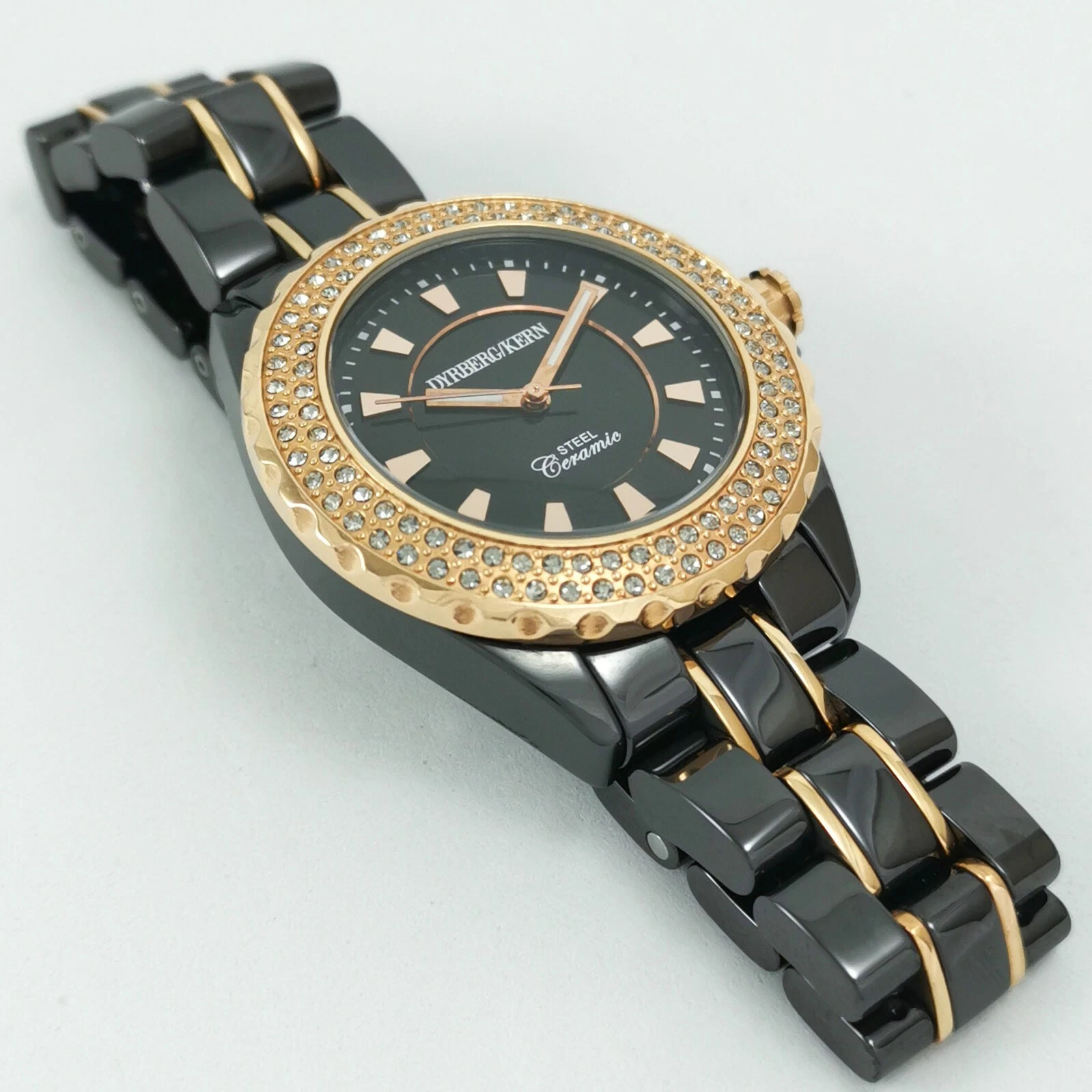 Dyrberg/Kern Black Gold Ceramic Band Quartz Diamonds Women's Wrist Watch