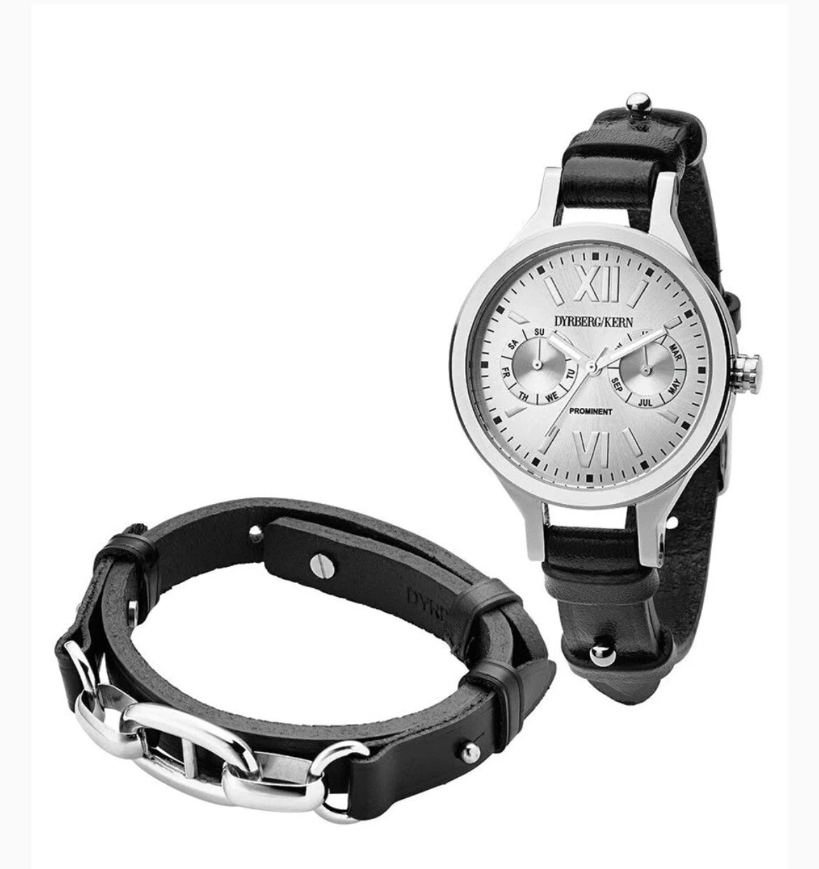 Dyrberg Kern Shiny Silver Black Prominent SL Watch & Tarpan Black Bracelet set.