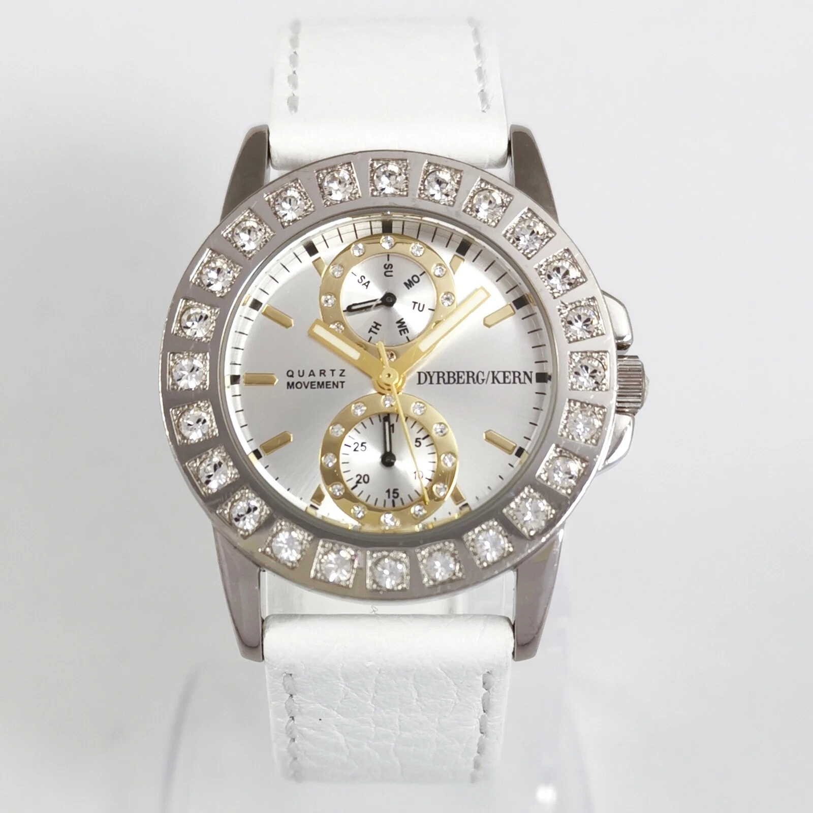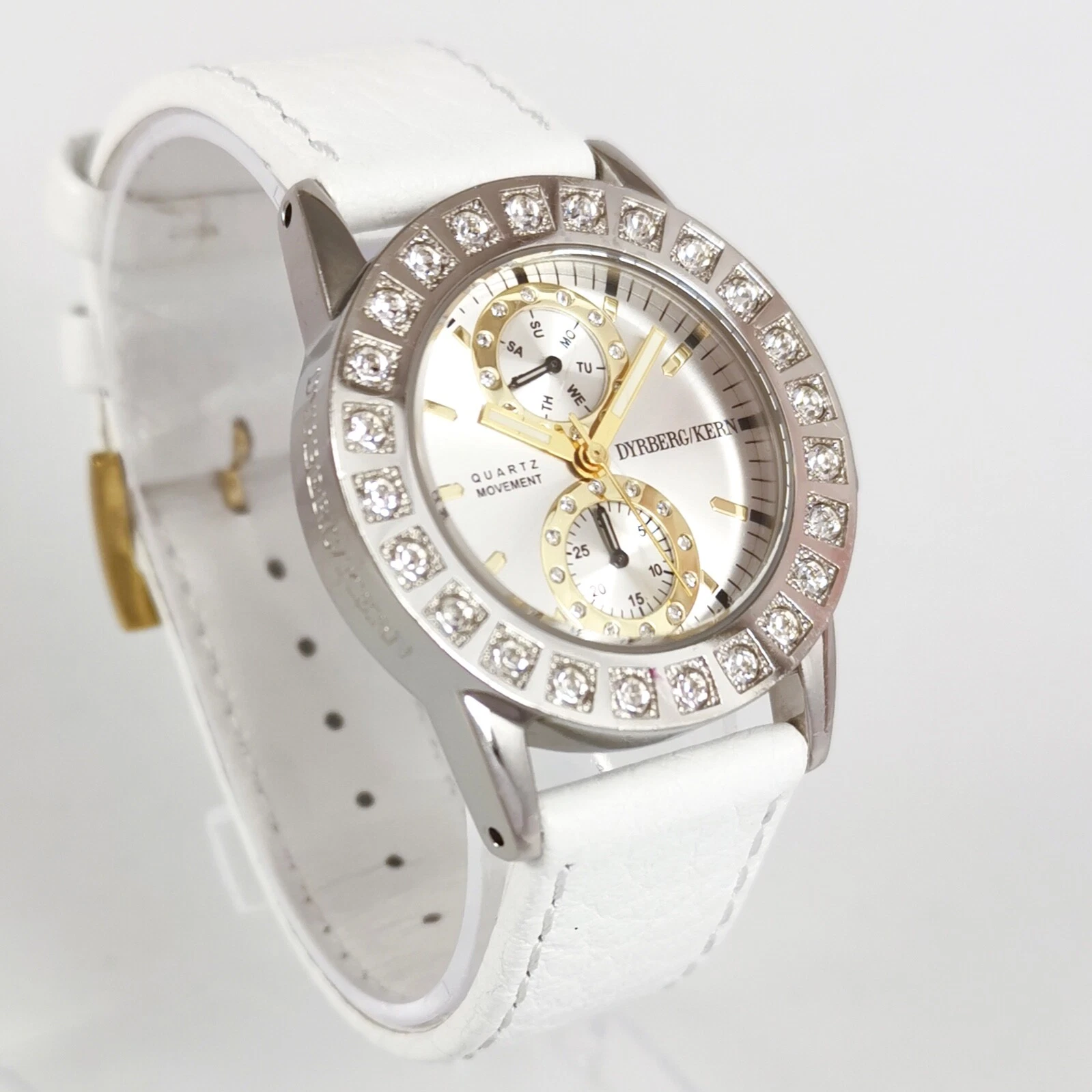 Dyrberg/Kern Silver White Leather Strap Quartz Women's Wrist Watch
