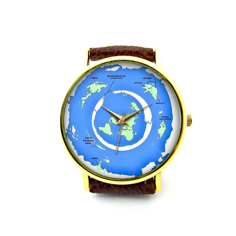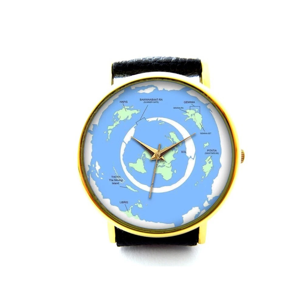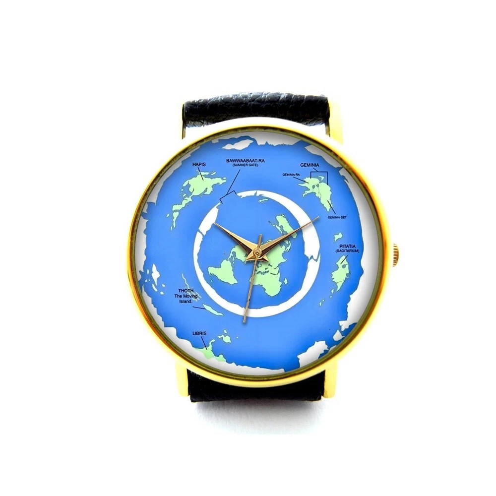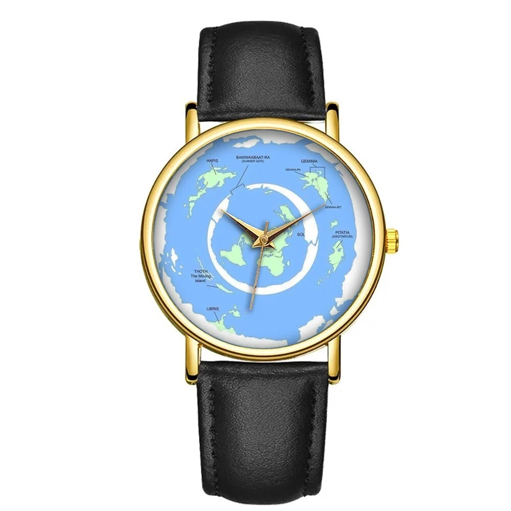 More Land Flat Earth Map Wristwatch Beyond The Ice Wall World Watch Unisex Gift