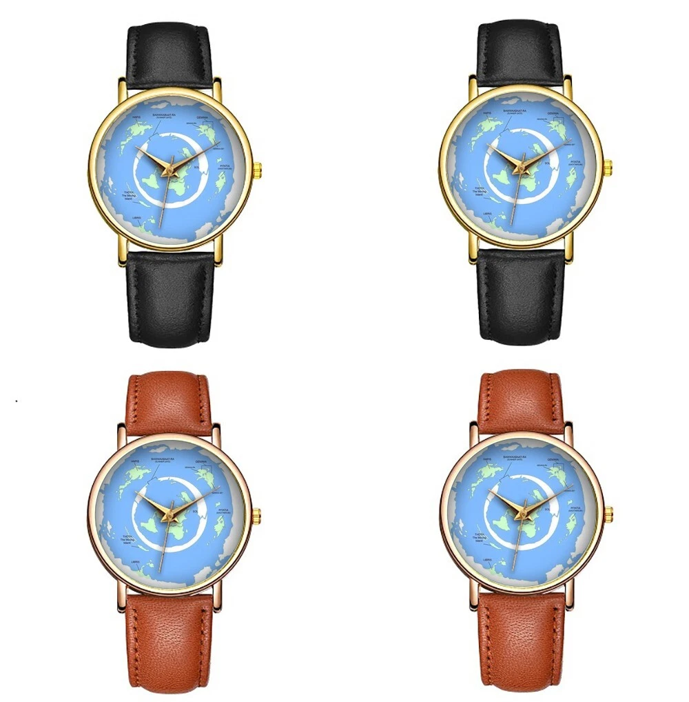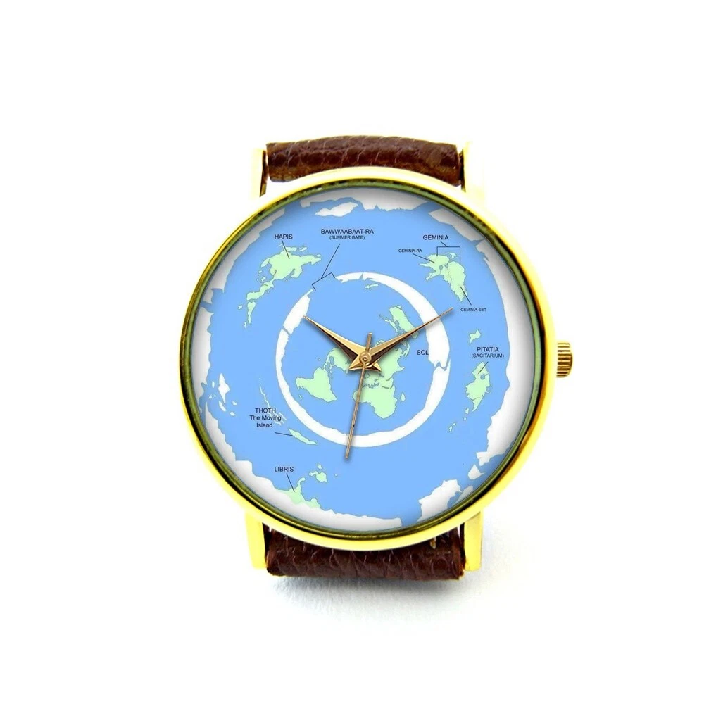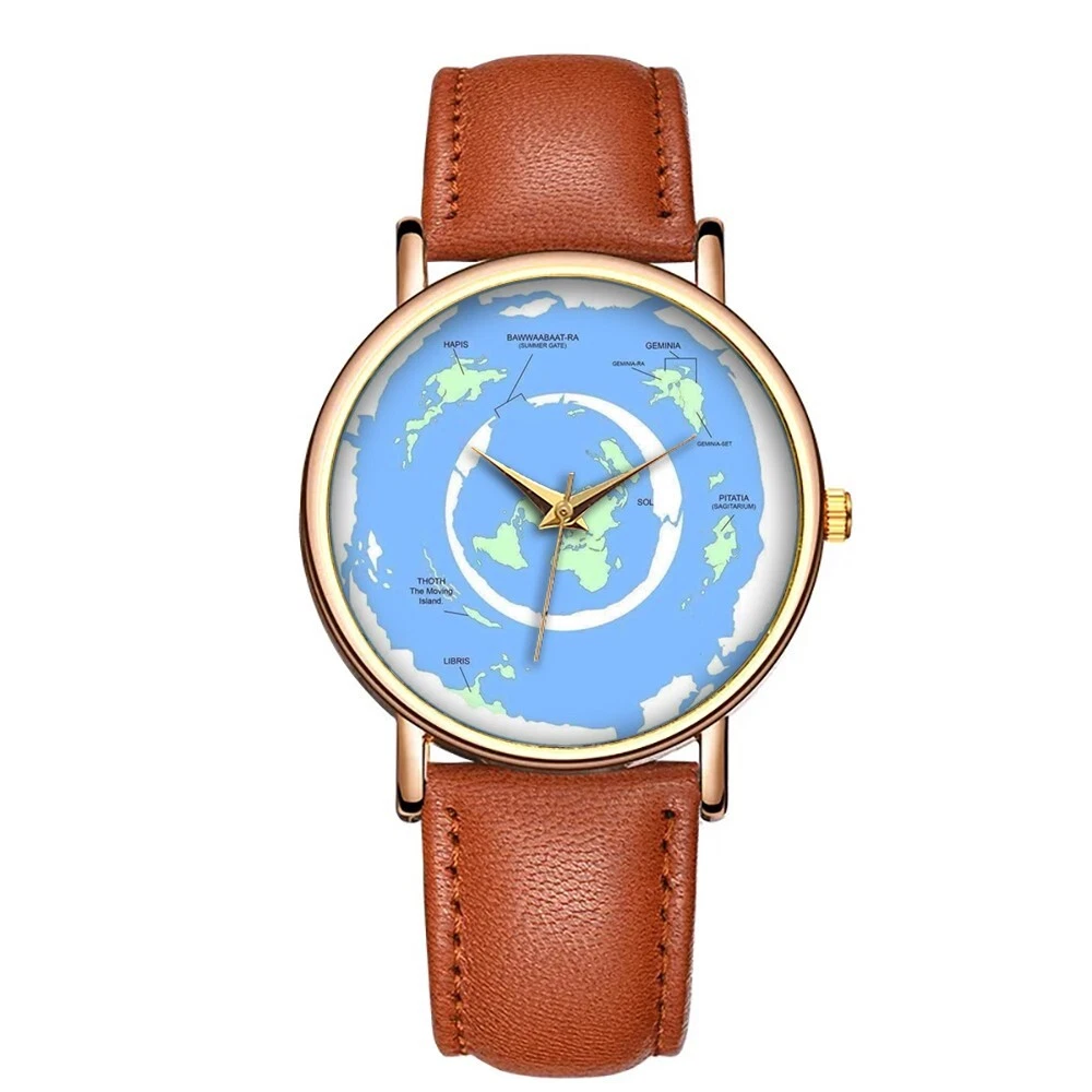 More Land Flat Earth Map Wristwatch Beyond The Ice Wall World Watch Unisex Gift