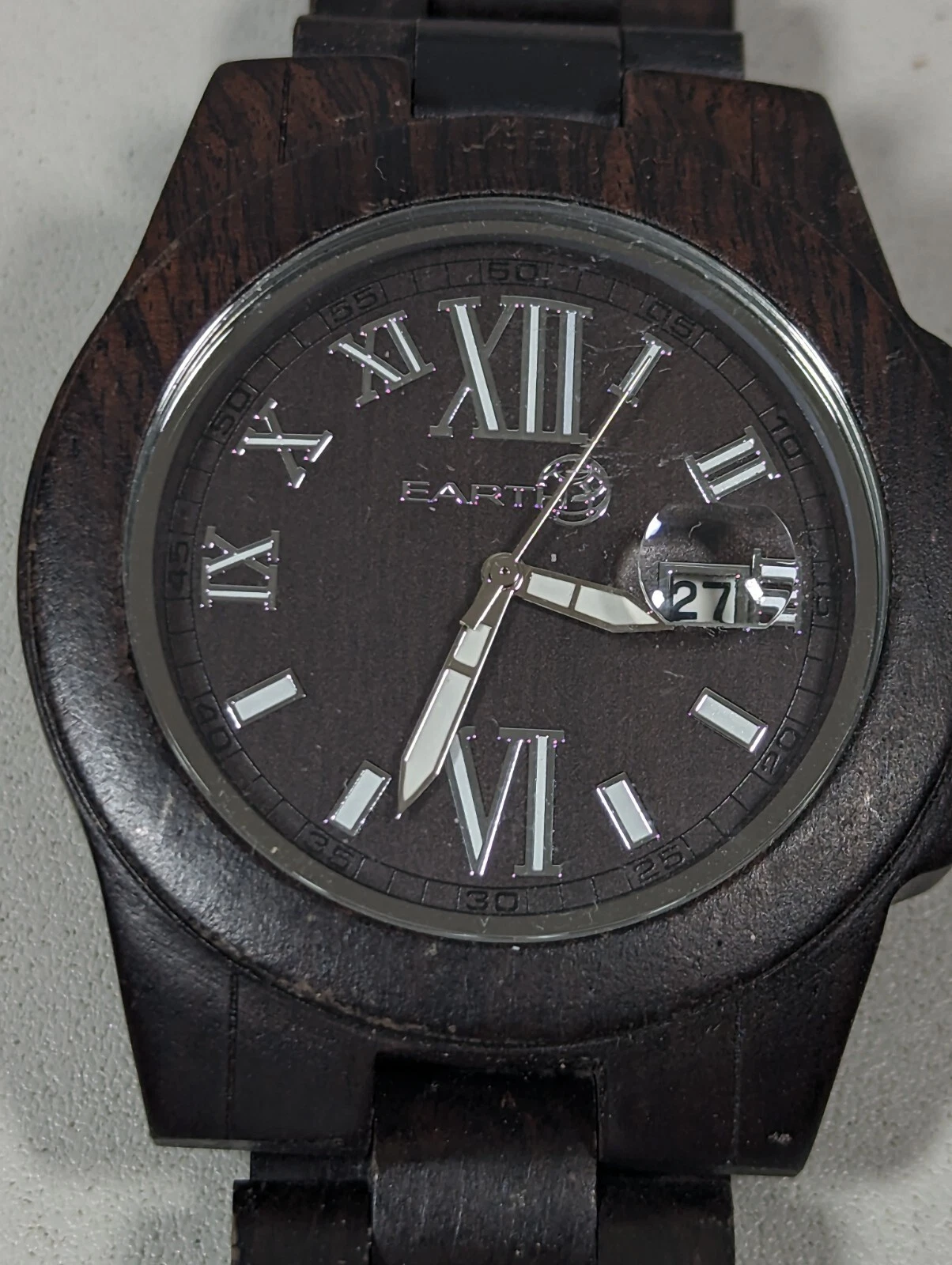 Mens Earth Ecofriendly Wood Brown Link Band Watch 8 Inch
