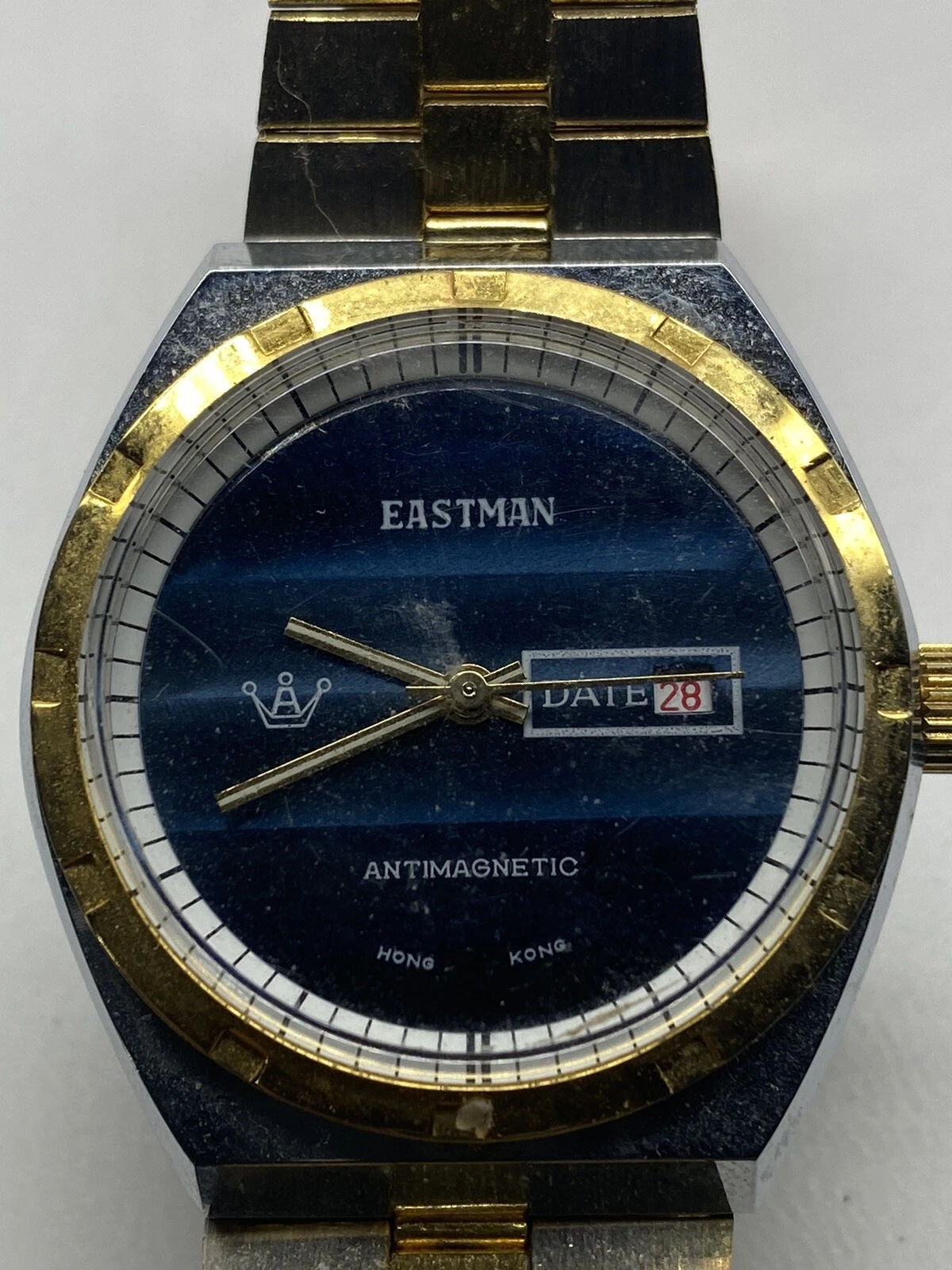 EASTMAN Blue Face Hong Kong Gold Silver Stainless Vintage Woman’s Watch Works