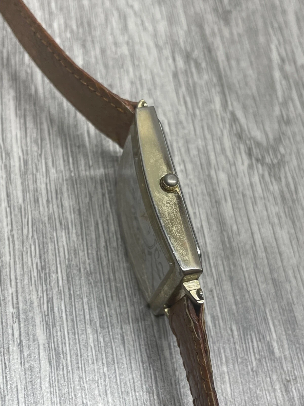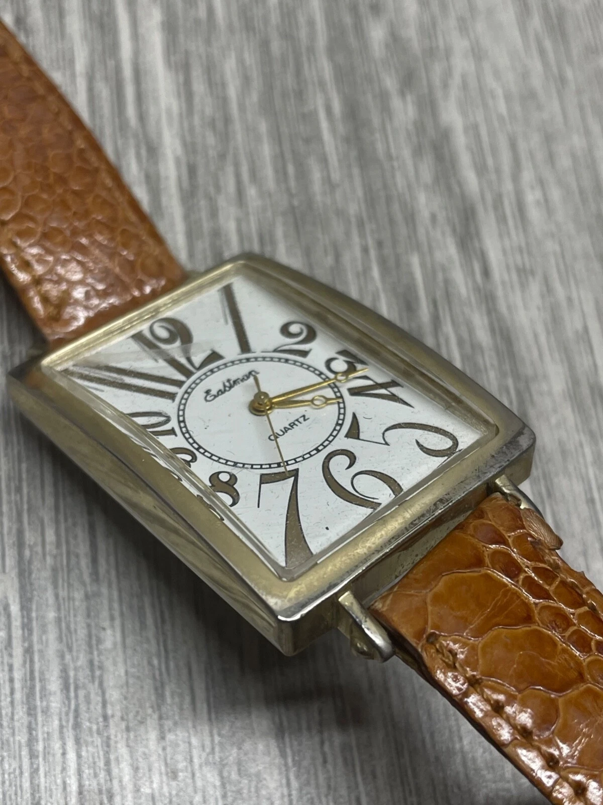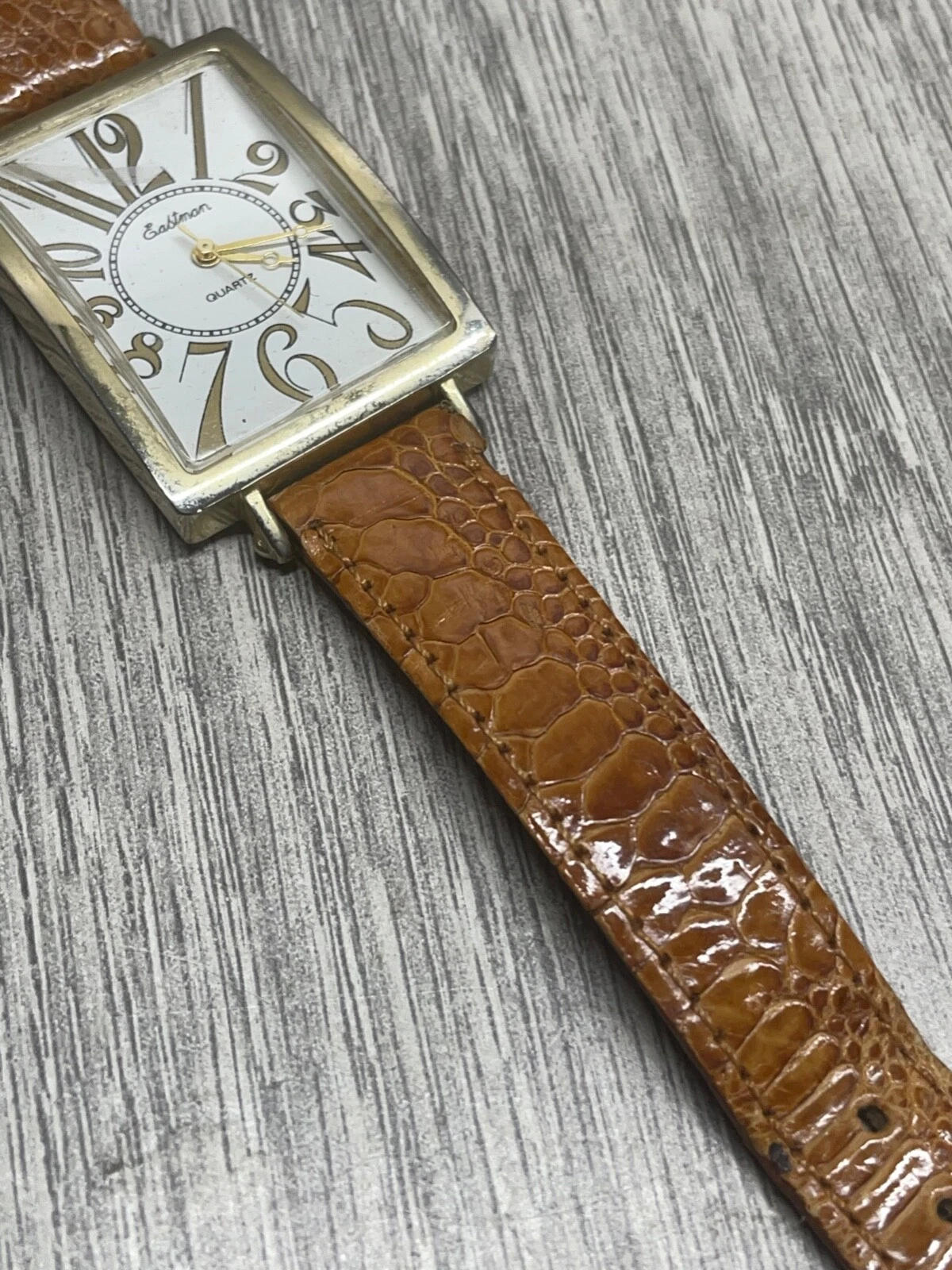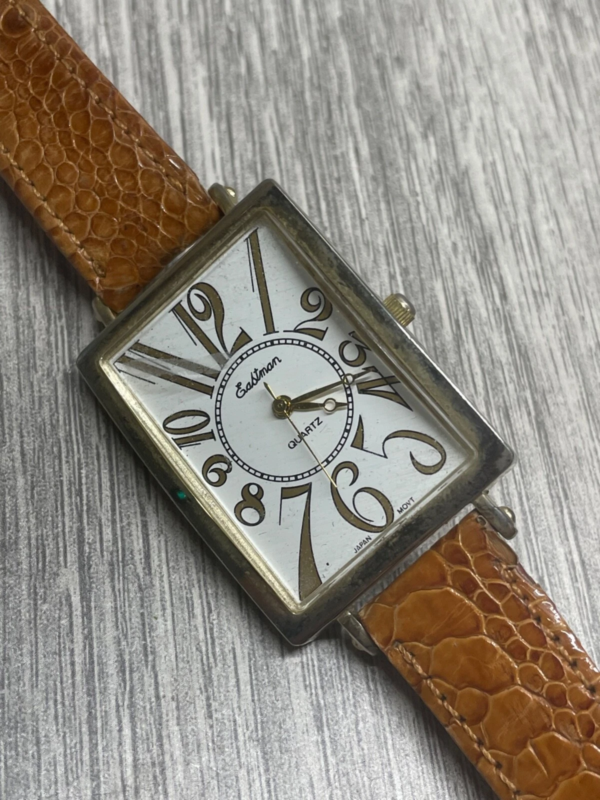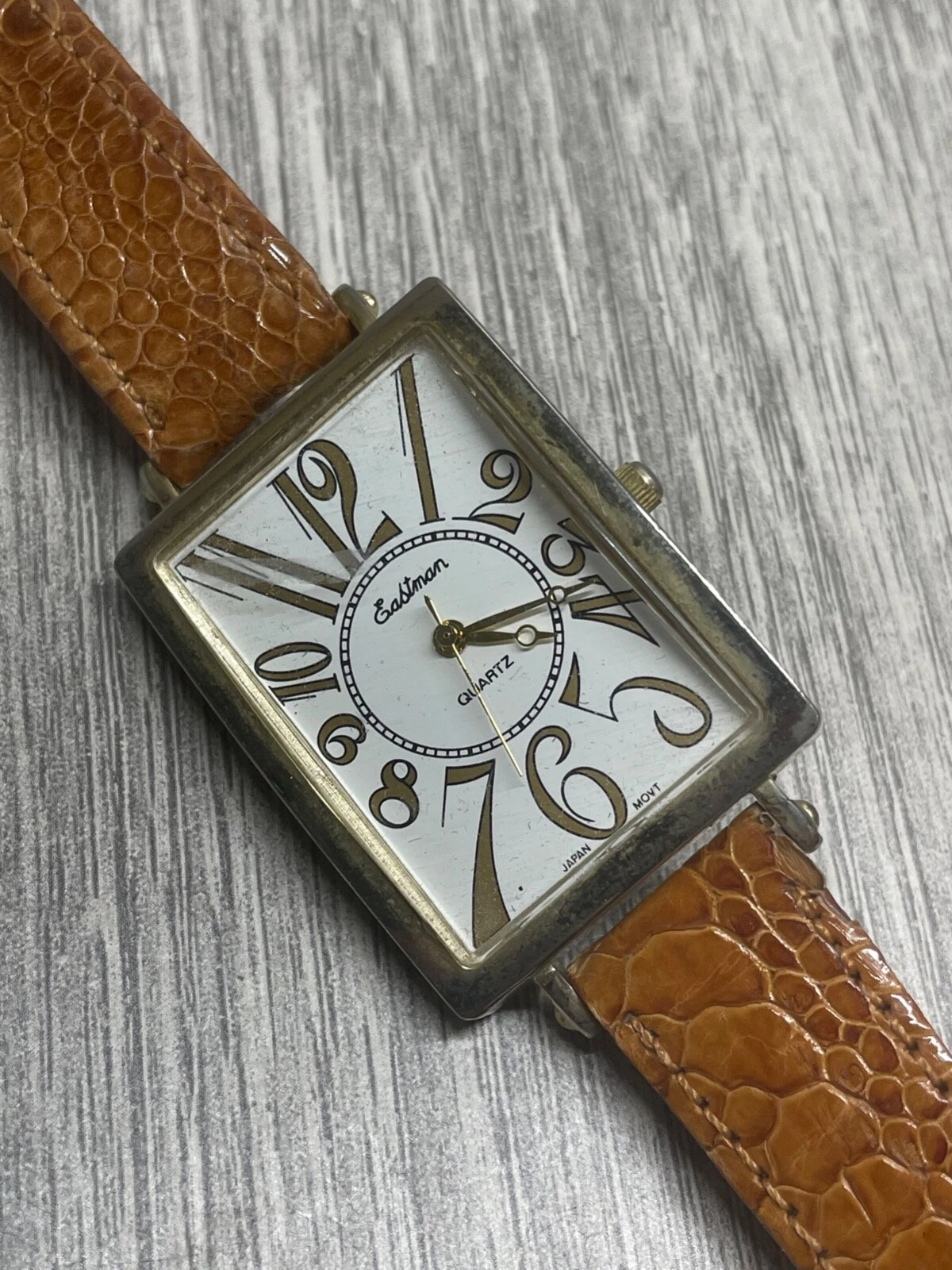 Eastman Quartz Vintage Wristwatch Square large face brown band working condition