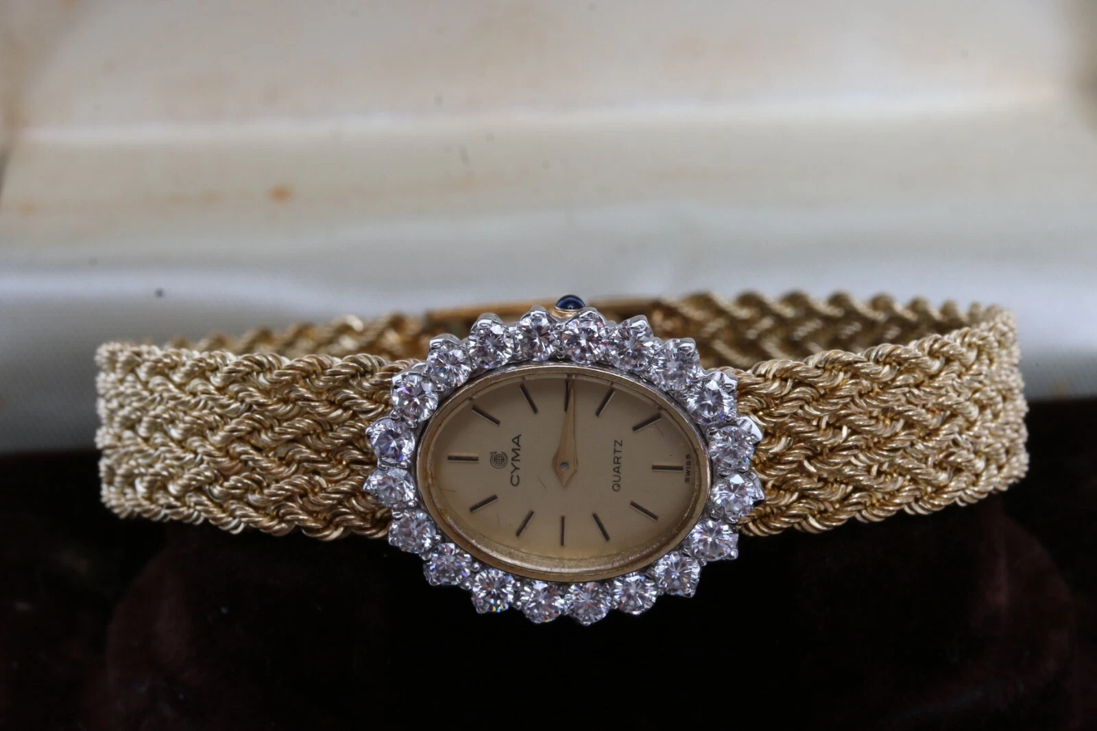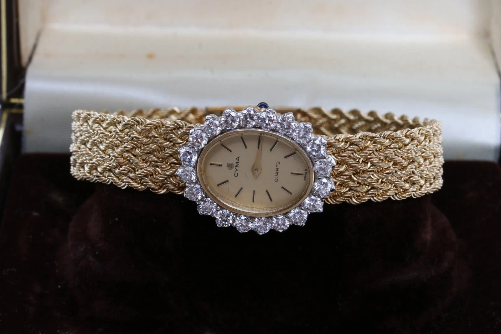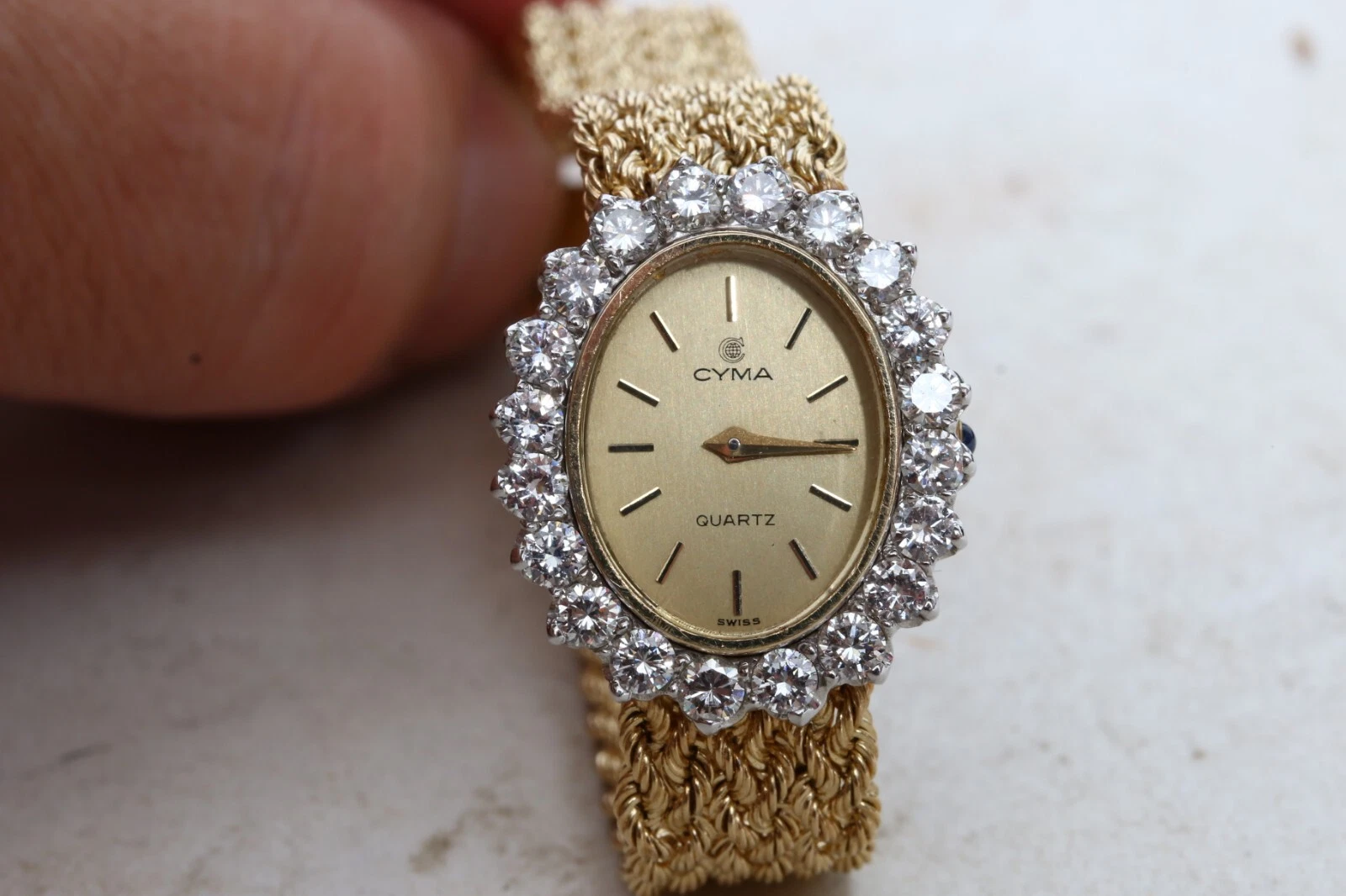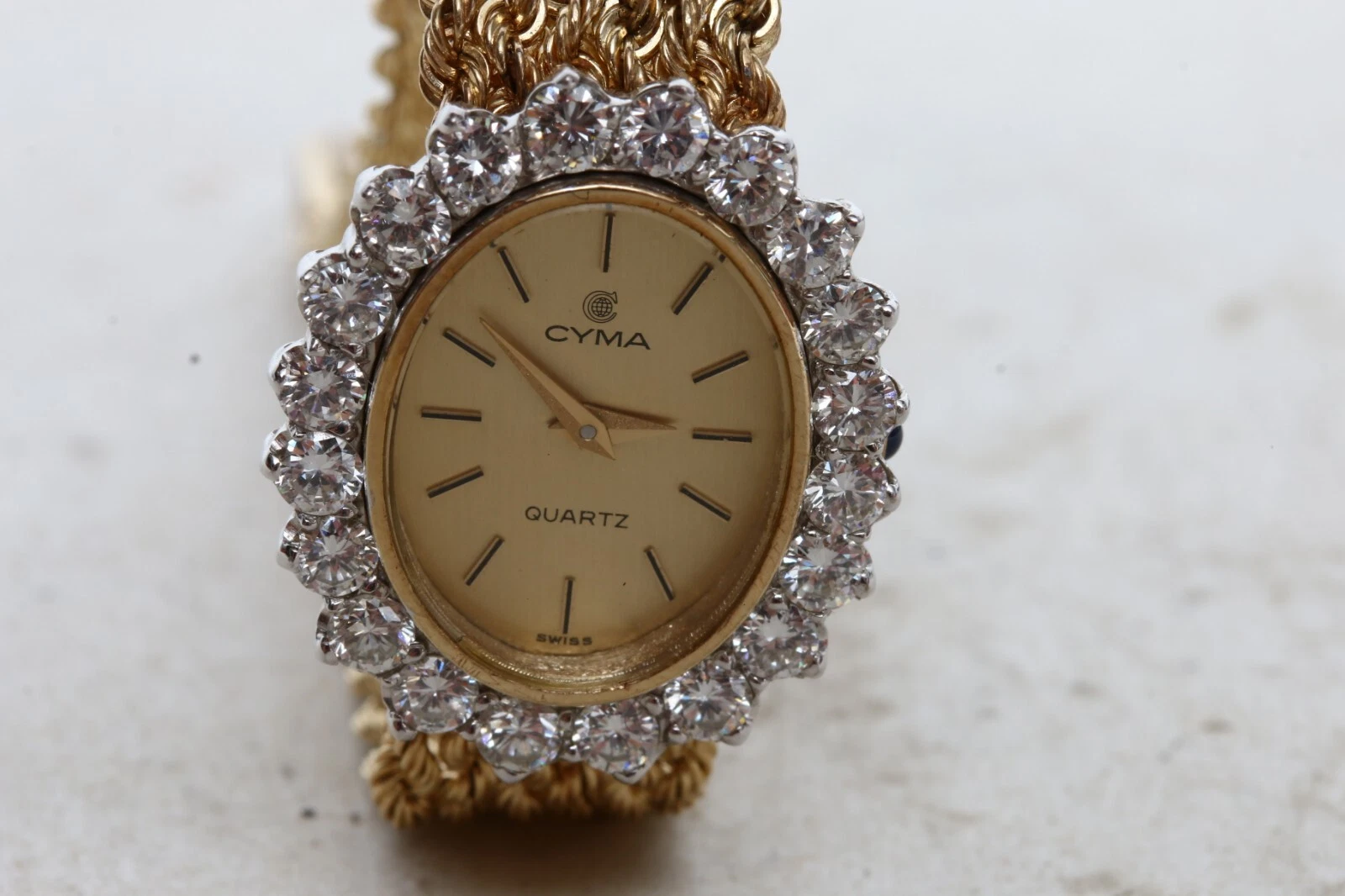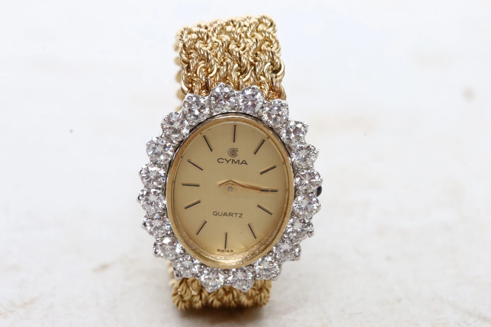 CYMA MADE IN SWISS QUARTZ 14K GOLD & DIAMOND WOMEN'S WATCH WITH 14K GOLD BAND
