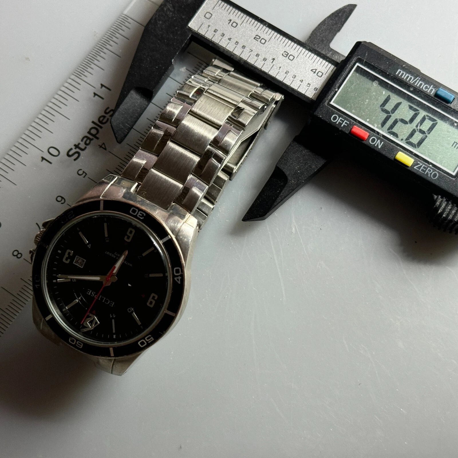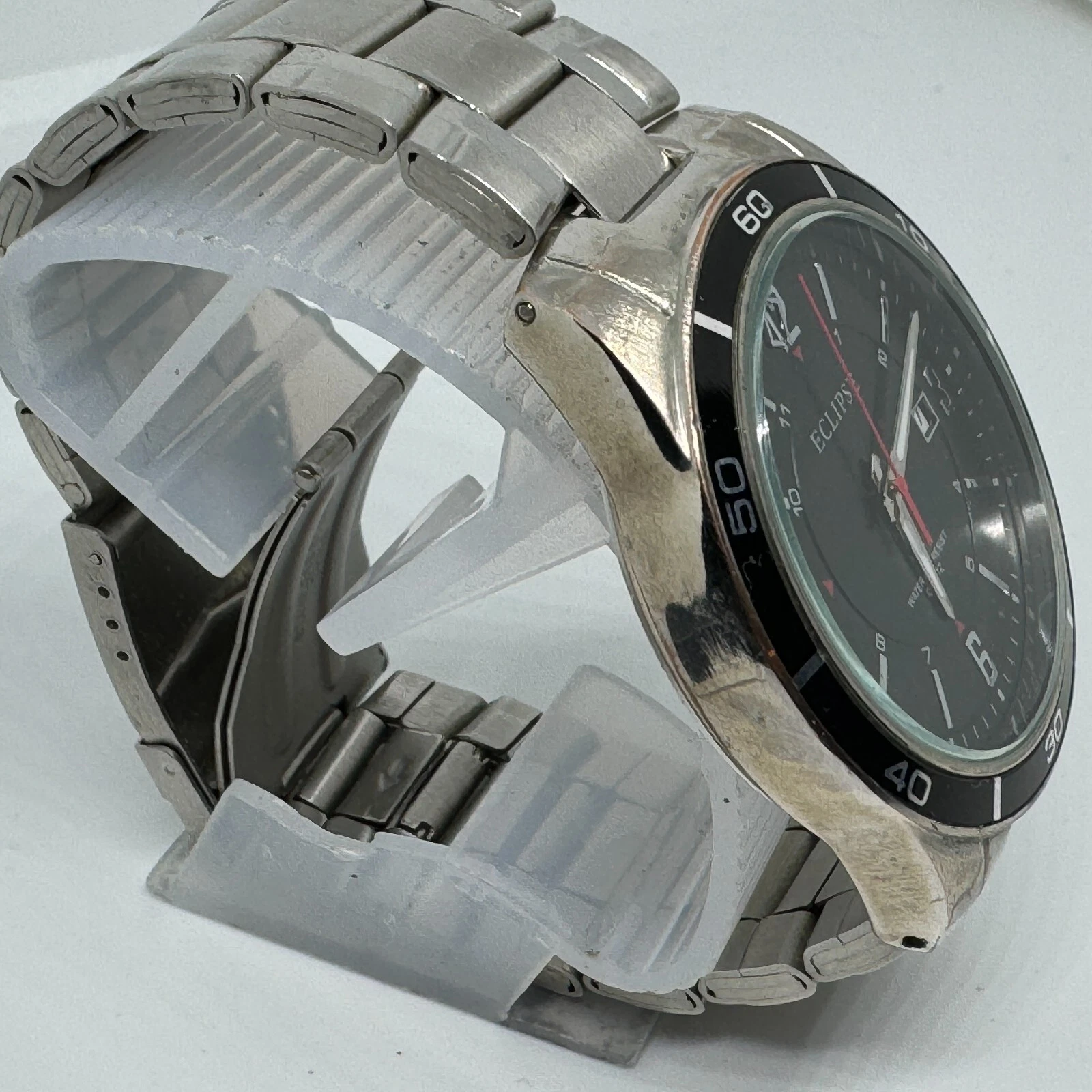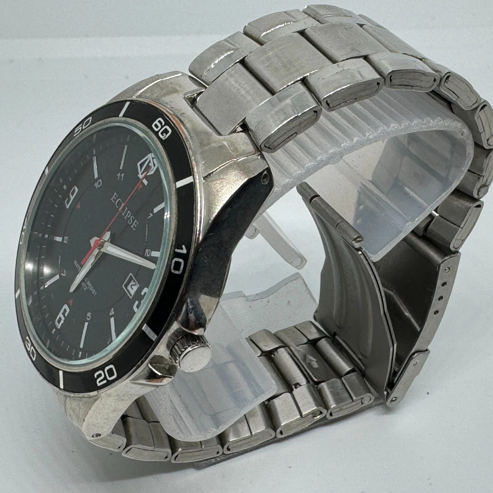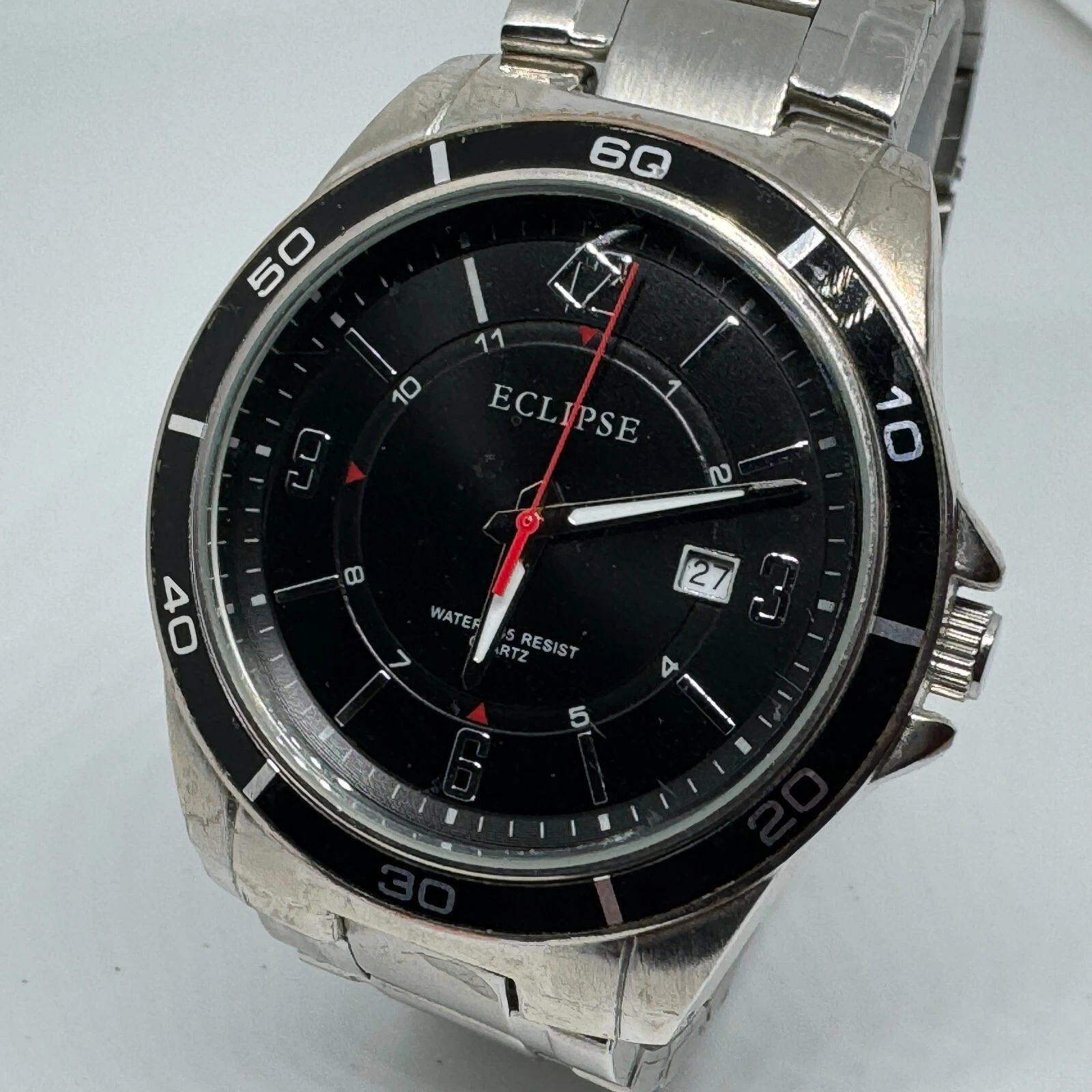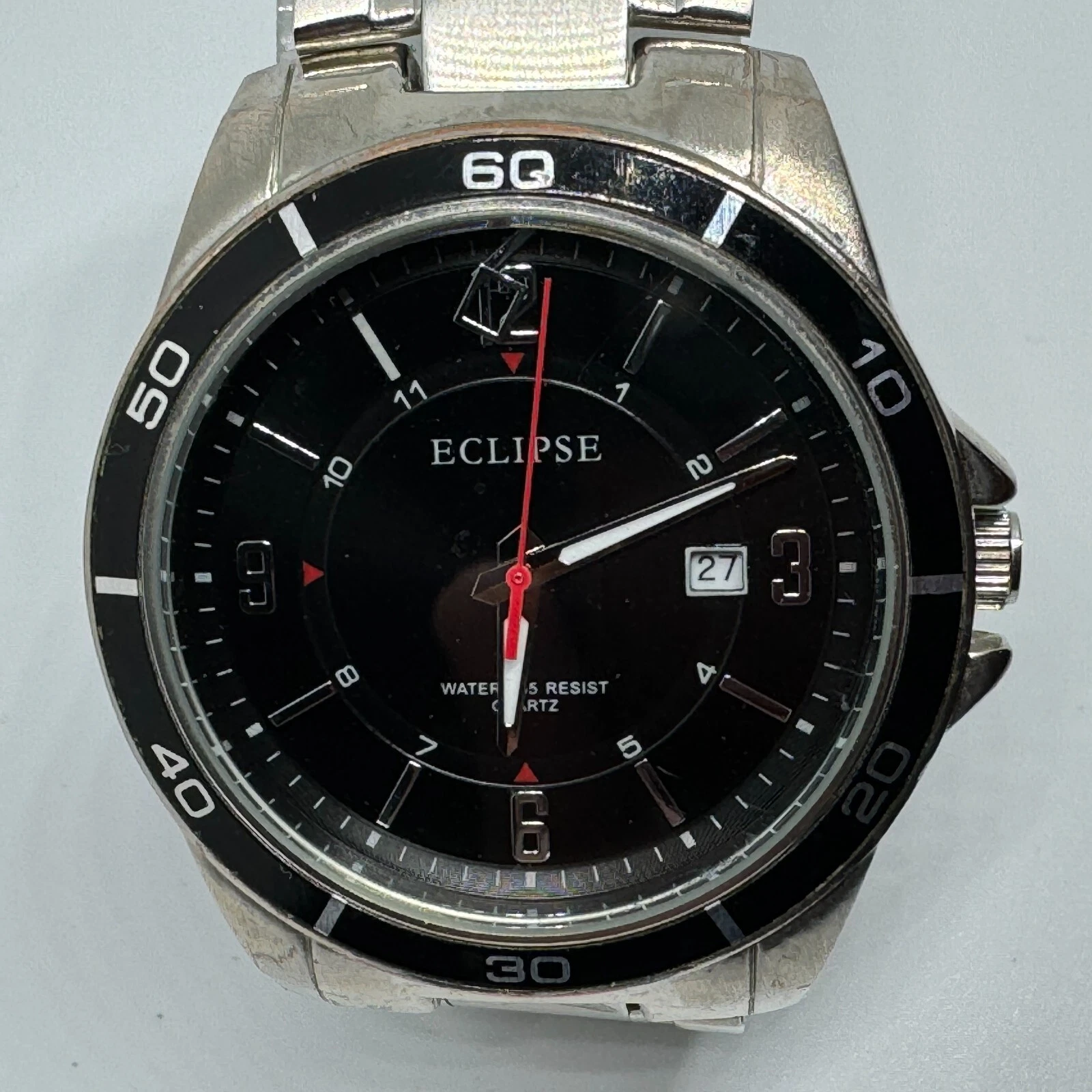 Eclipse Quartz Watch Men Silver Black Japan Movt Date Analog New Battery