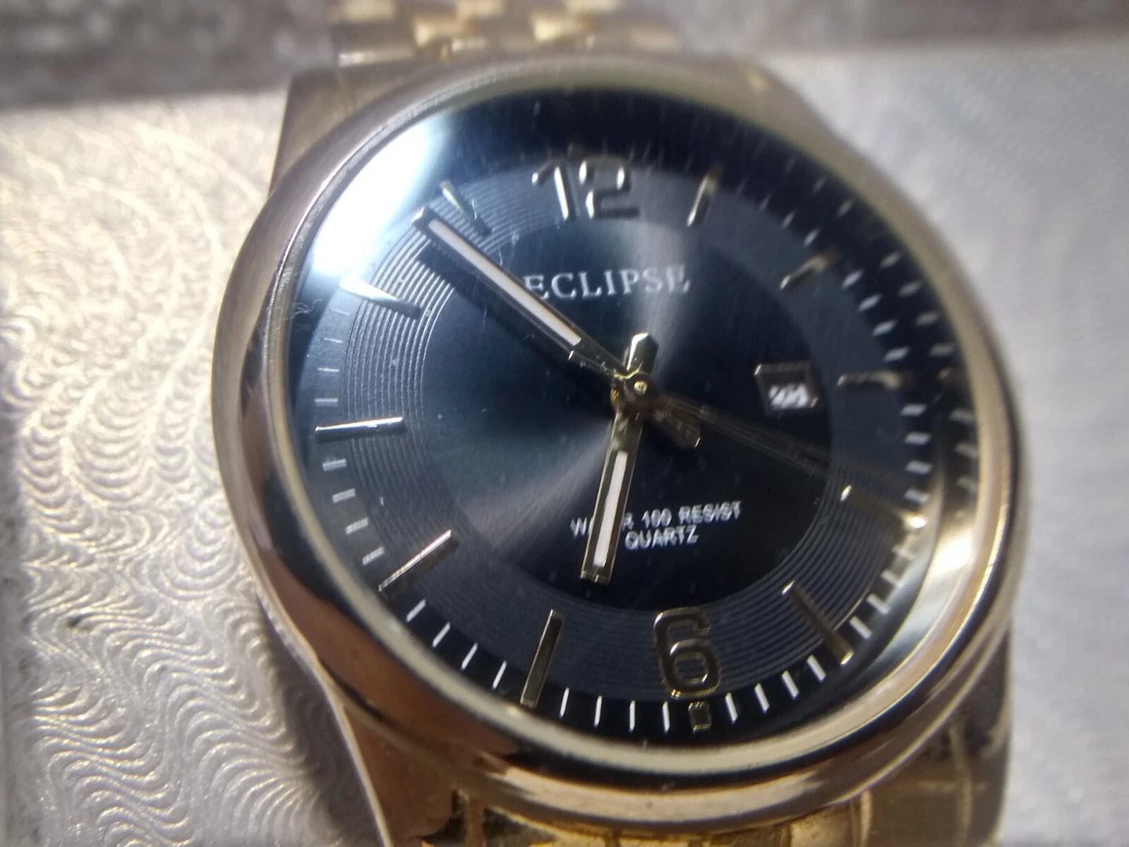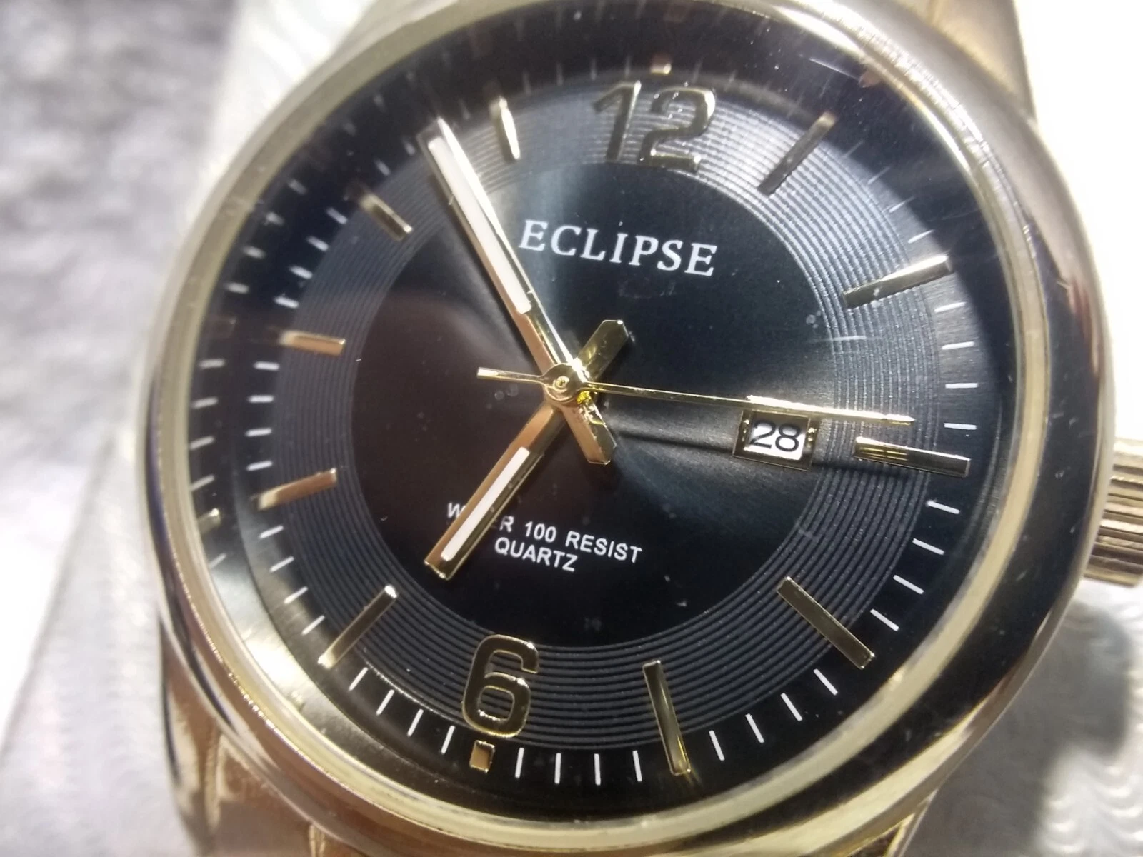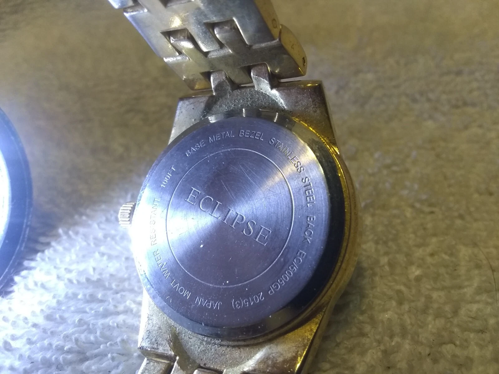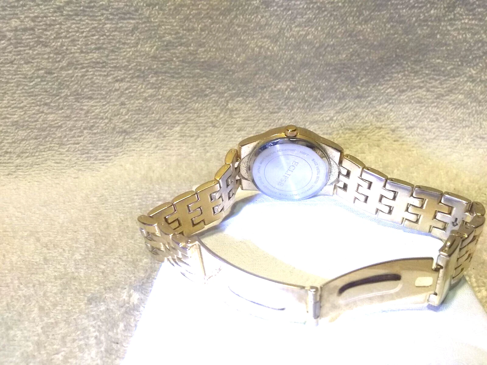 Eclipse Black Dial Date Indicator Gold Bracelet Band WR New Bat Works Great !!