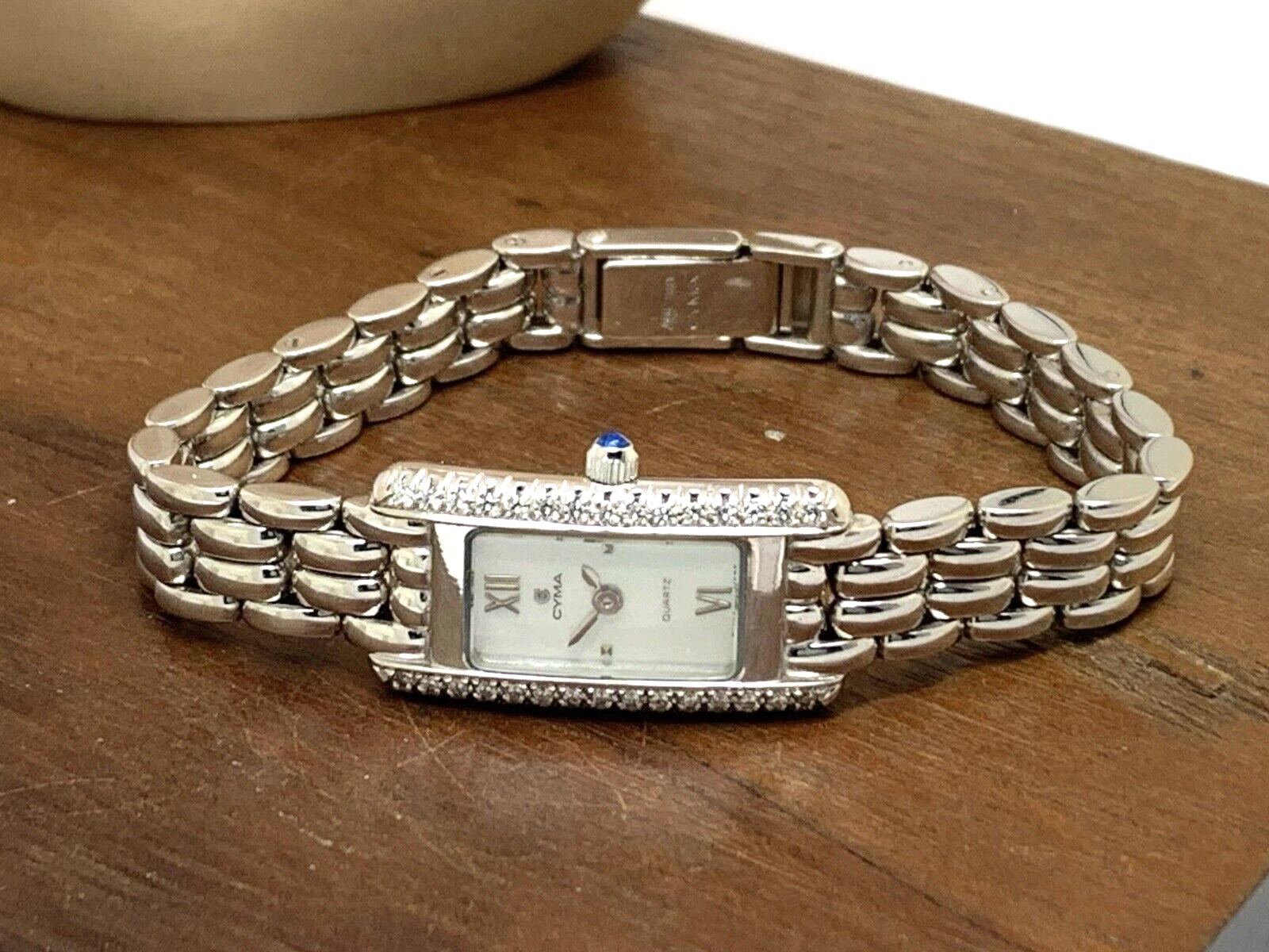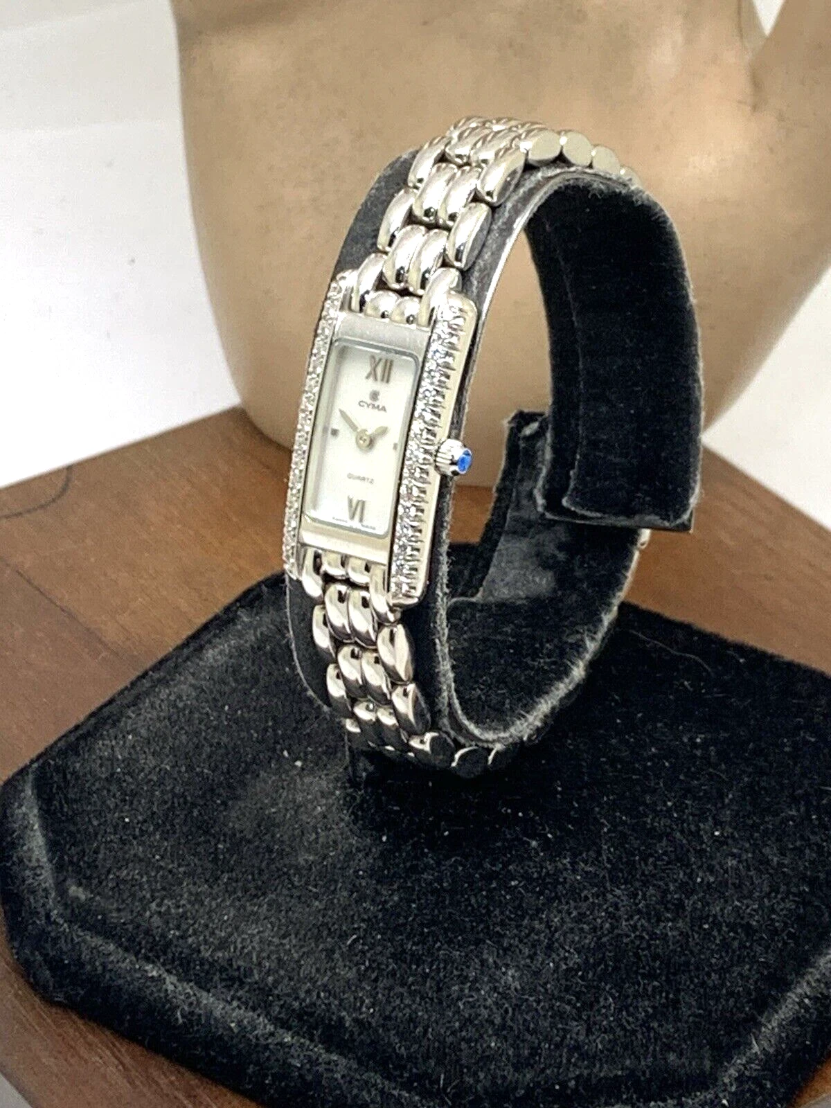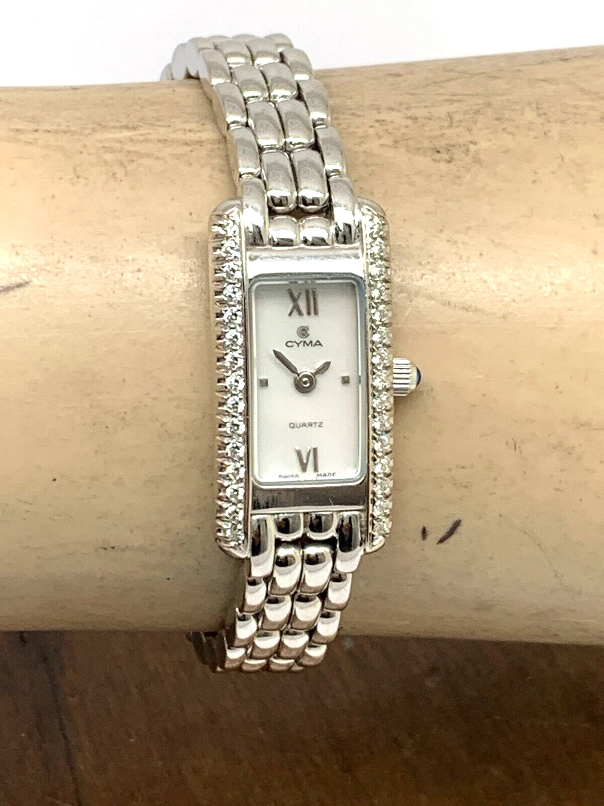 Cyma Women's Watch Swiss Quartz Diamond Mother of Pearl Dial Tank 18k White Gold
